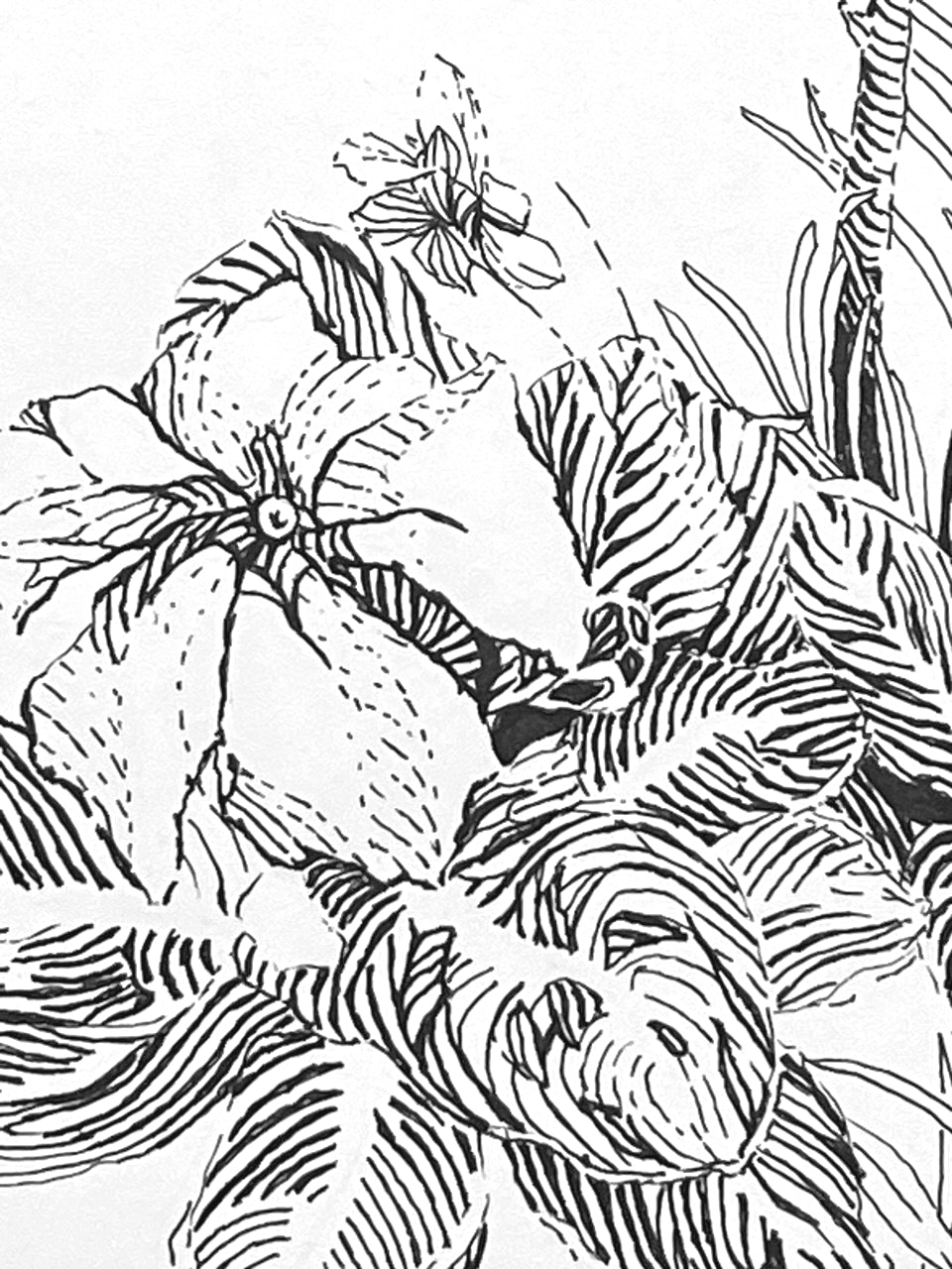Esta pieza, esta realizada directamente con pluma y tinta. Integrando una amplia gama de recursos artísticos, estéticos y técnicos. En una expresión a través de los fundamentos del dibujo, a partir de la diversidad sensible de la línea.