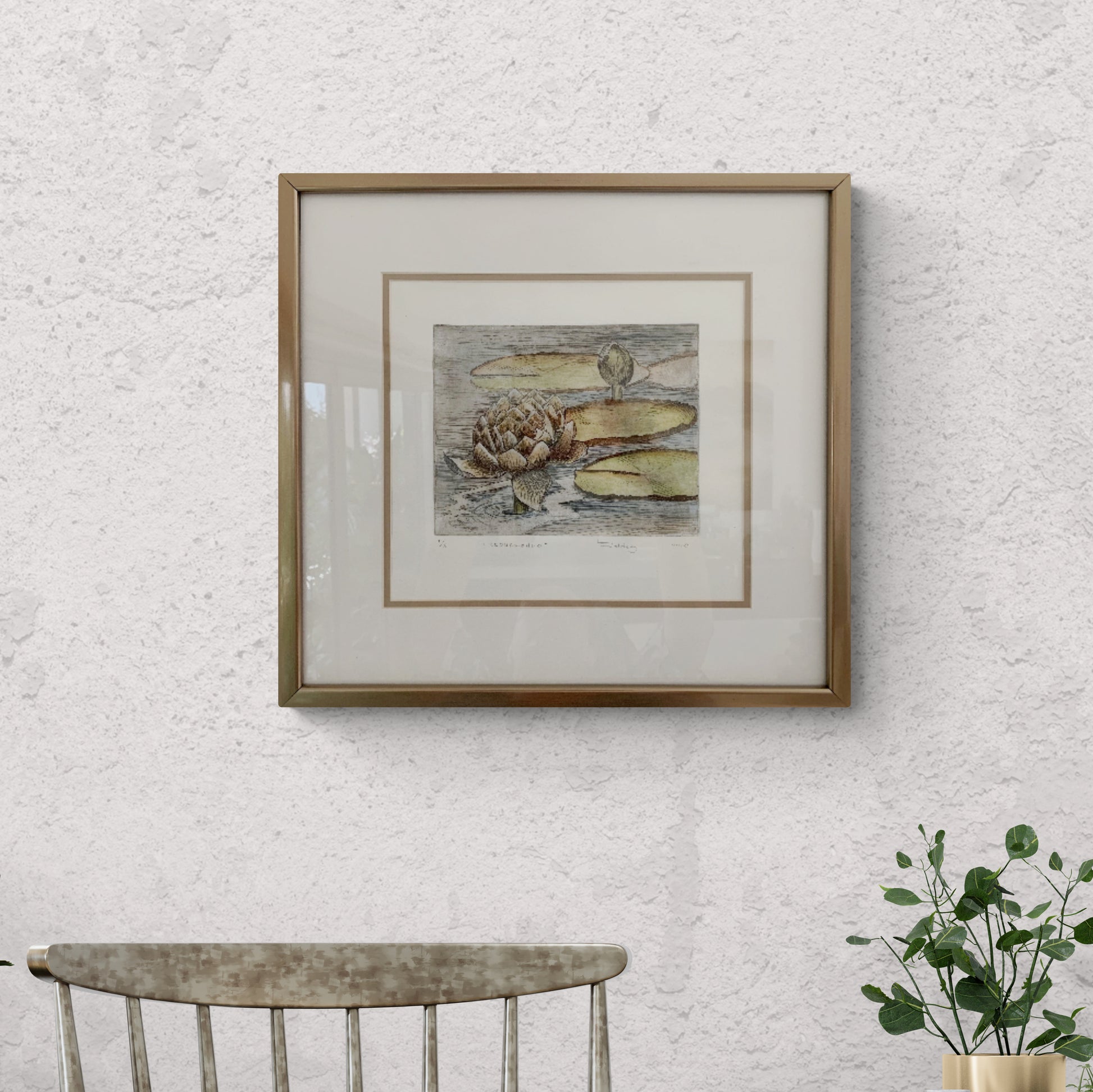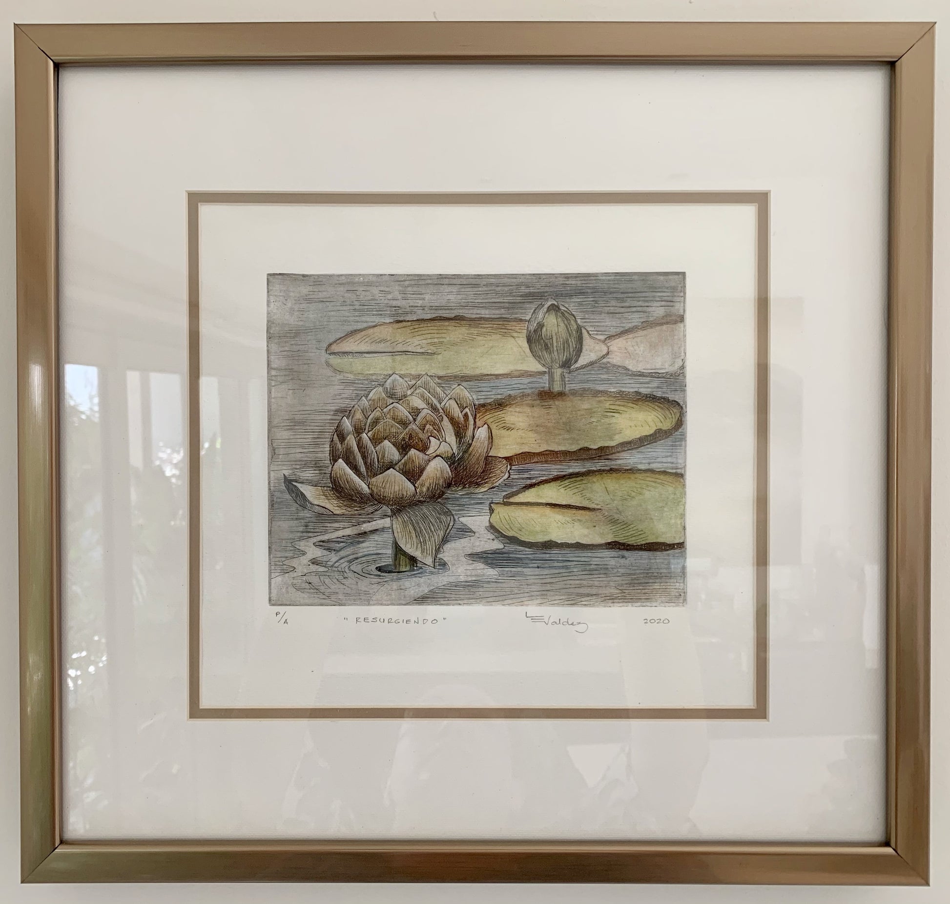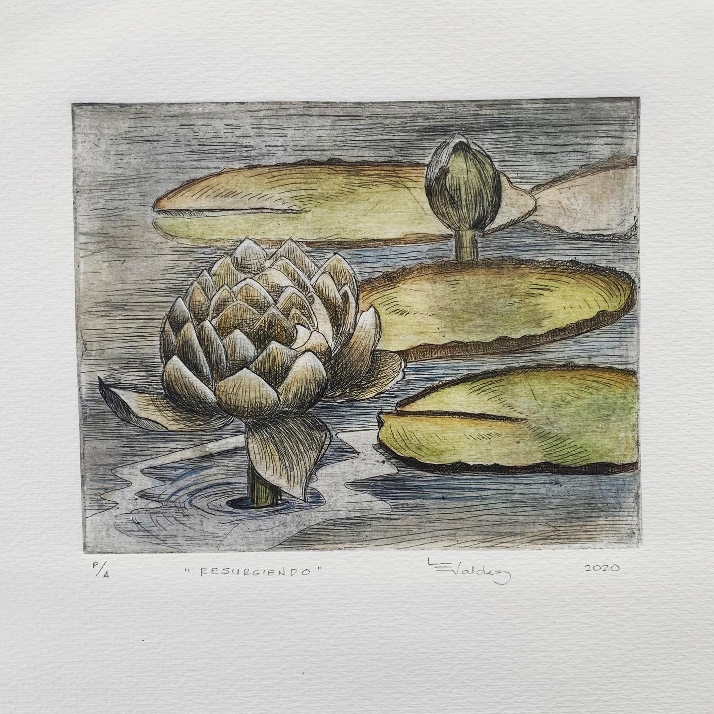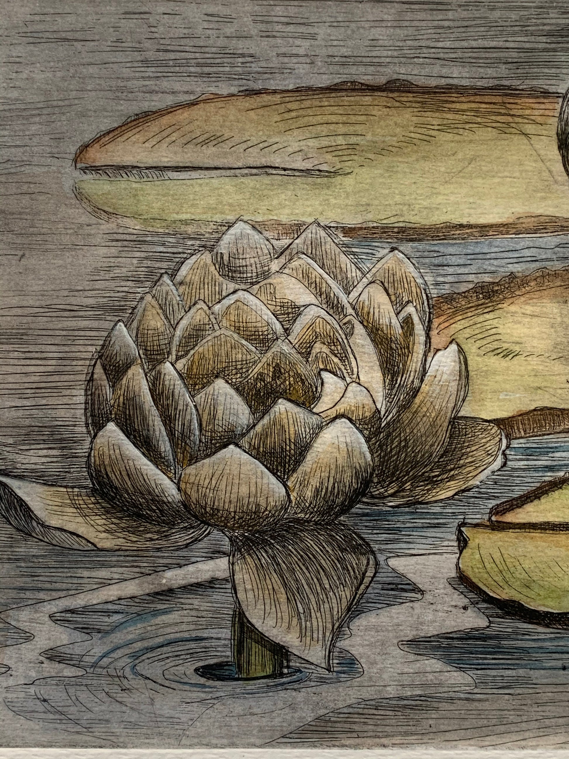 Grabado al aguafuerte, en tinta negra, intervenido con acuarela. Firmado, fechado y numerado al frente.