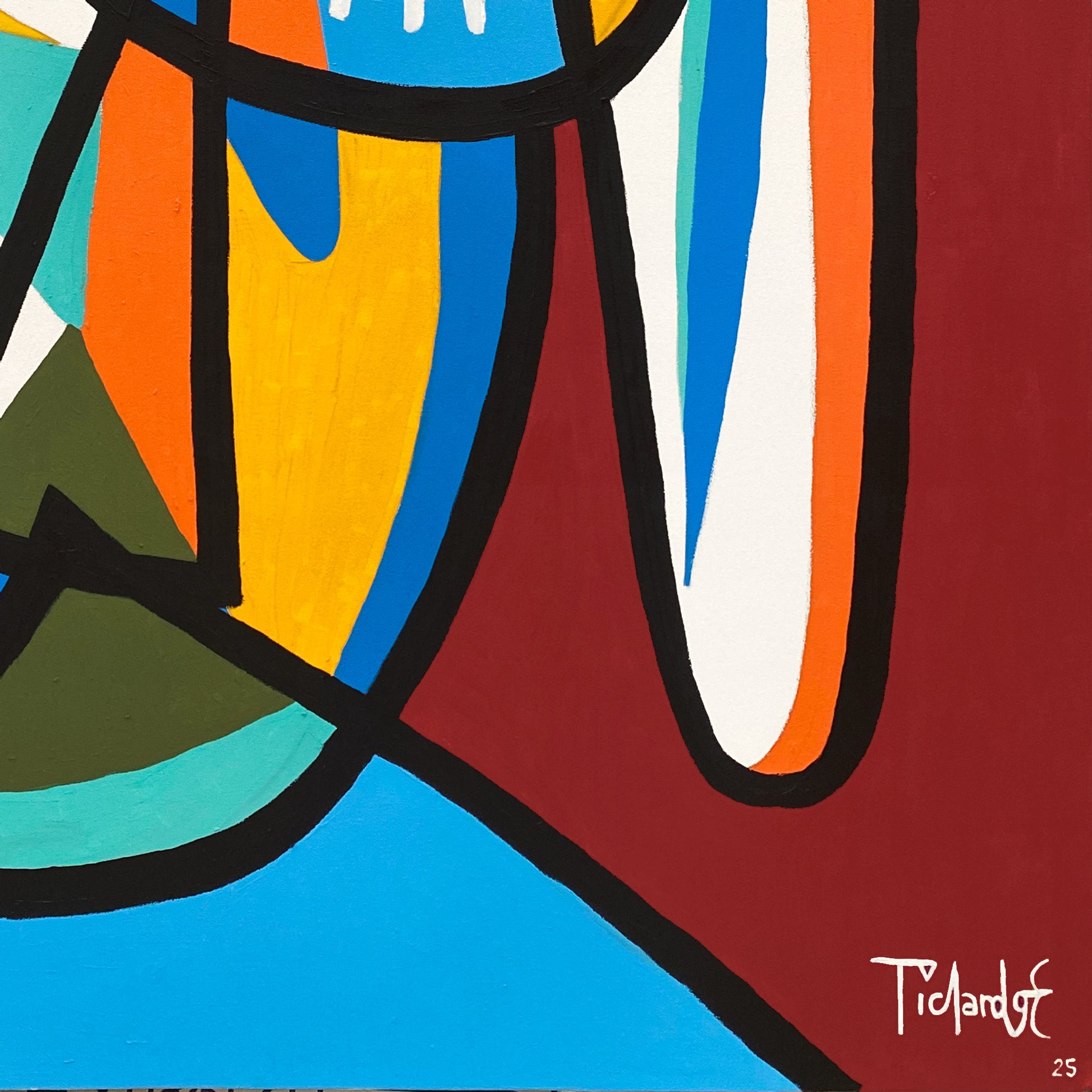 Su estilo, espontáneo y directo, se manifiesta en formas que se entrecruzan en simultaneidad, como un juego óptico. El color adquiere un papel estructural, mientras las líneas, aunque simples, revelan intencionalidad y ritmo.