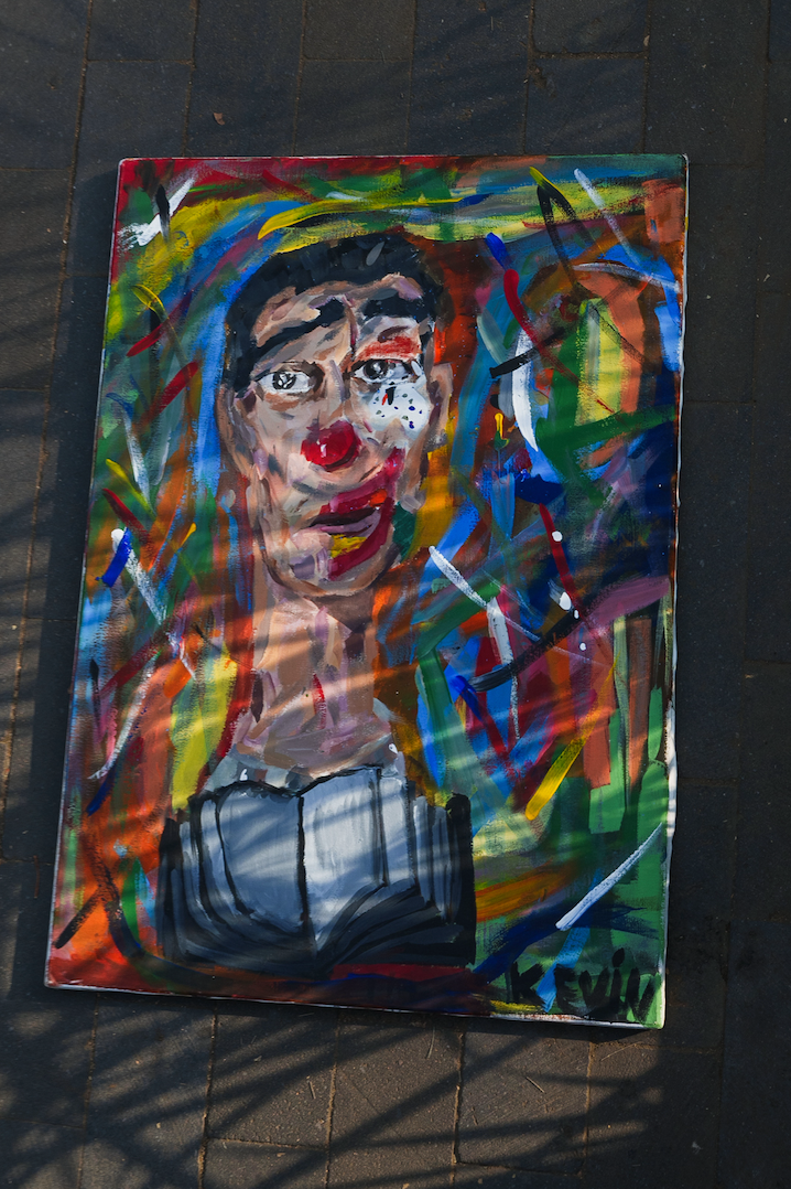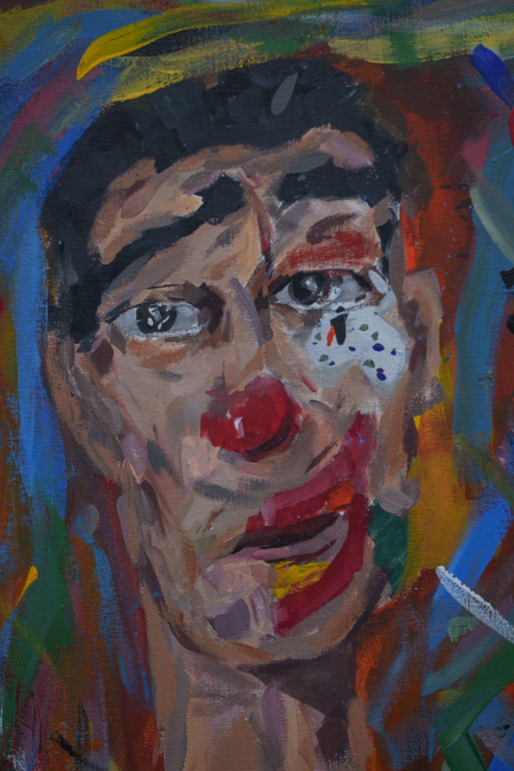 Esta obra representa mi reflejo ante la sociedad, con la mitad del rostro maquillado y la otra mitad en estado puro; el personaje saliendo de un libro, ya que soy un ser inventado traído a la realidad.