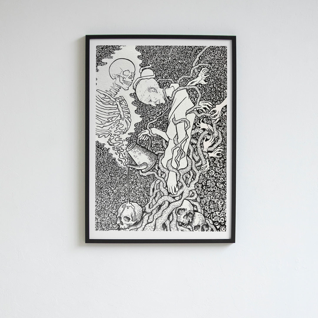 Riego de Muerte, invita a reflexionar sobre lo efímera que puede llegar a ser existencia y el estado que espera al cruzar ese umbral.
