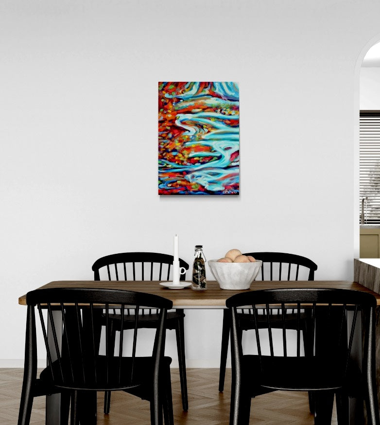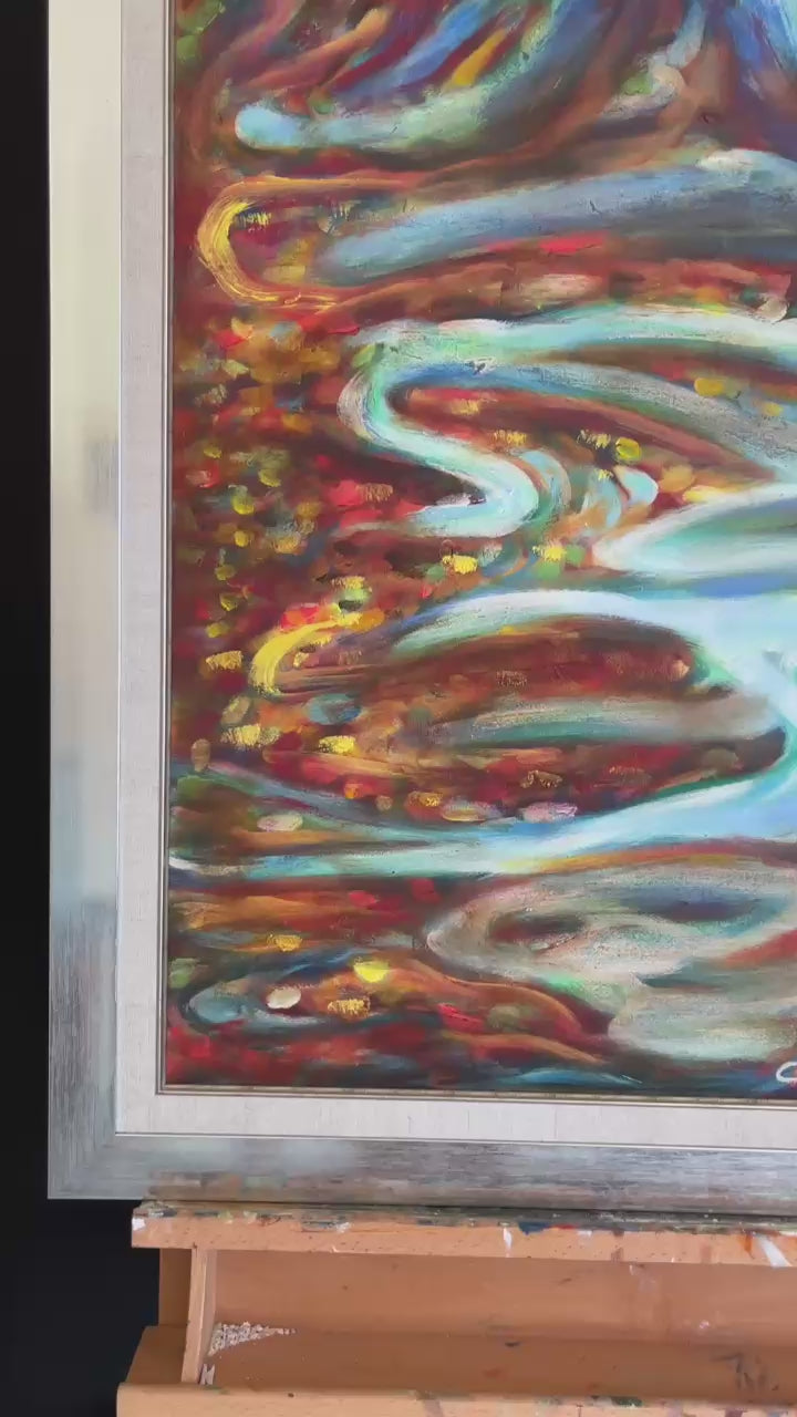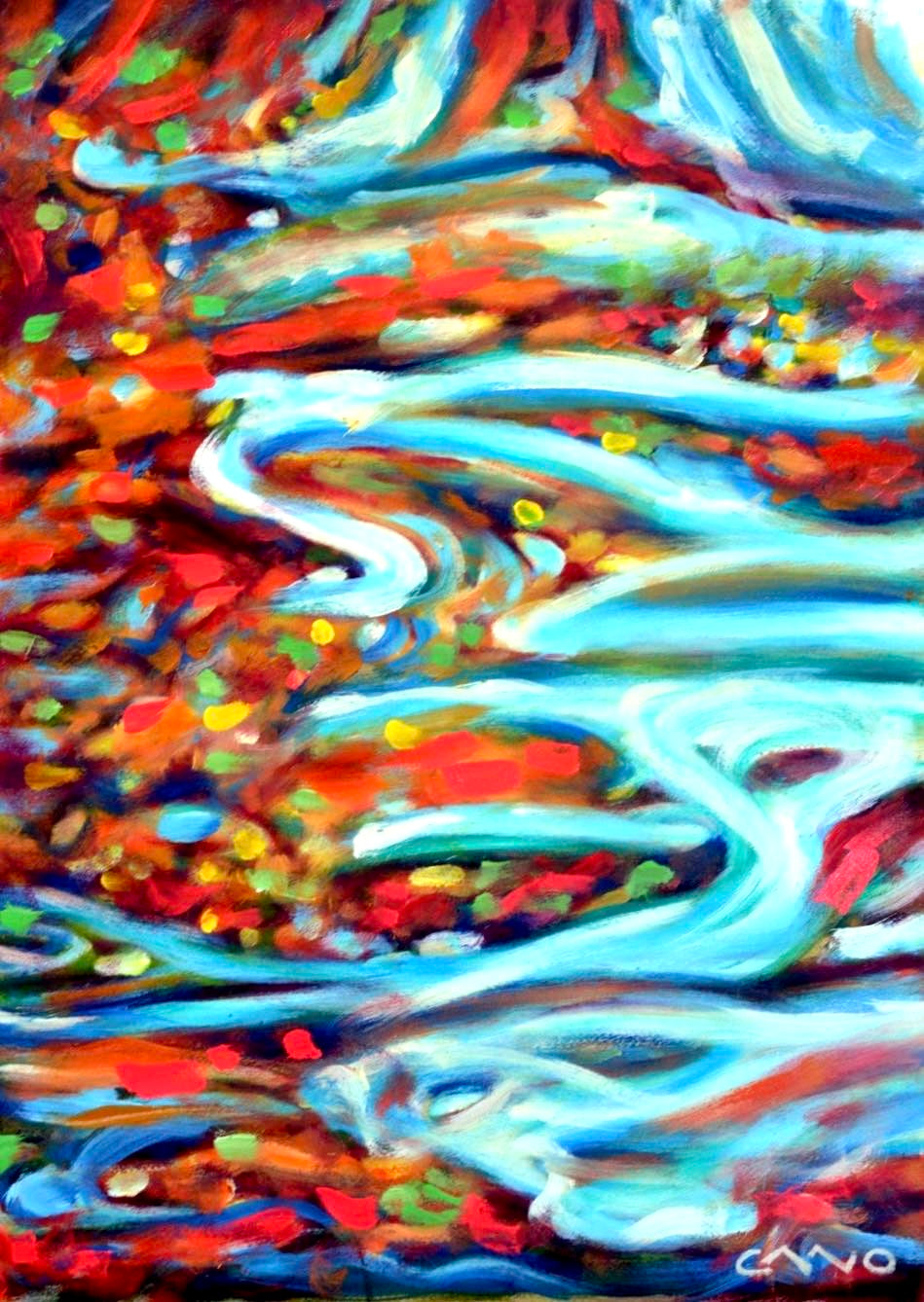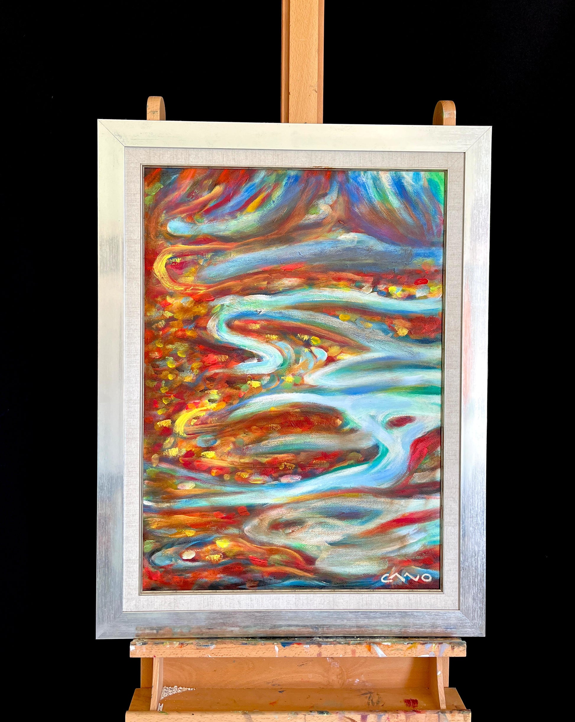 Río, es el agua sobre las hojas, un deslizamiento tan suave del agua sobre cualquier superficie, este óleo representa sentimientos.