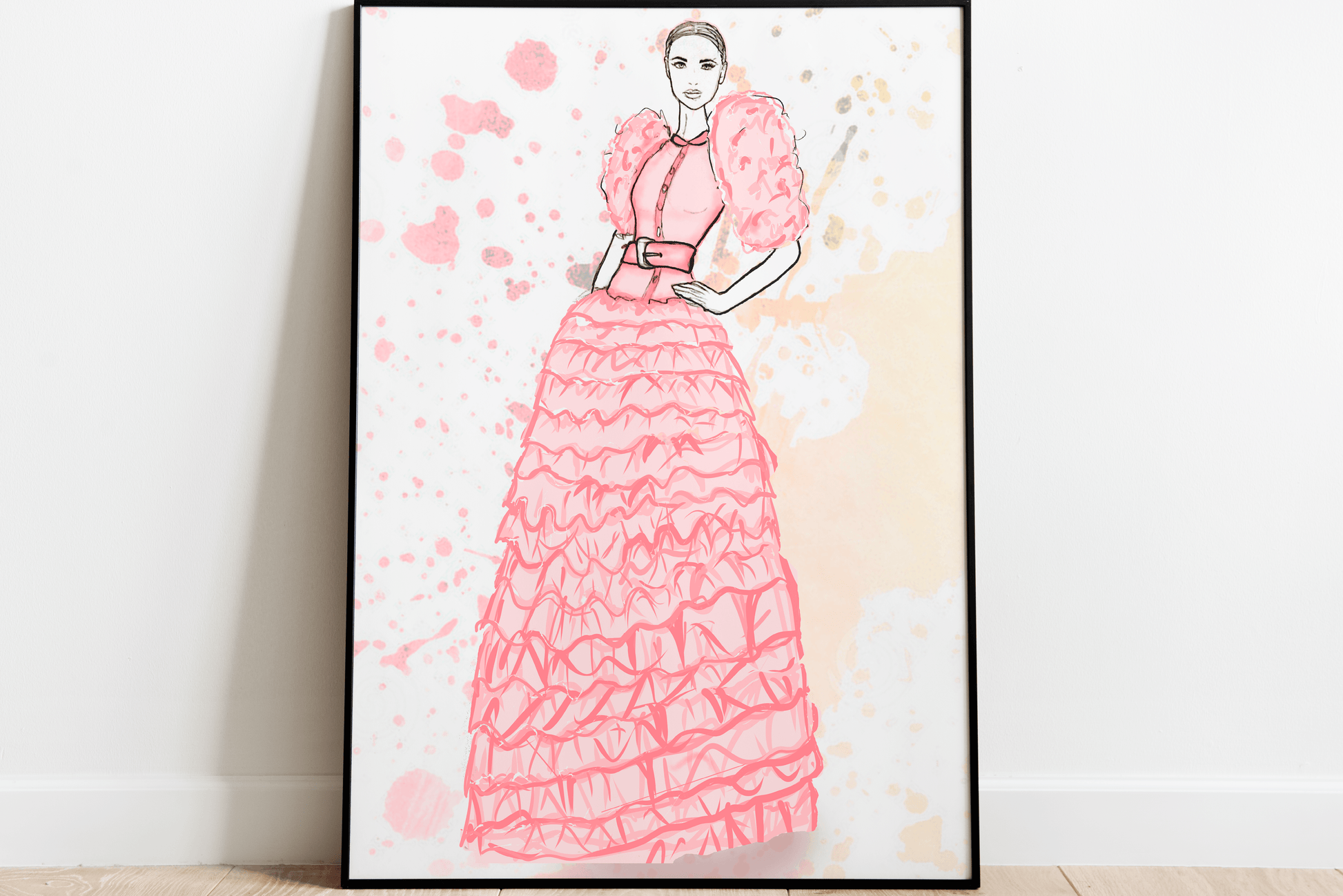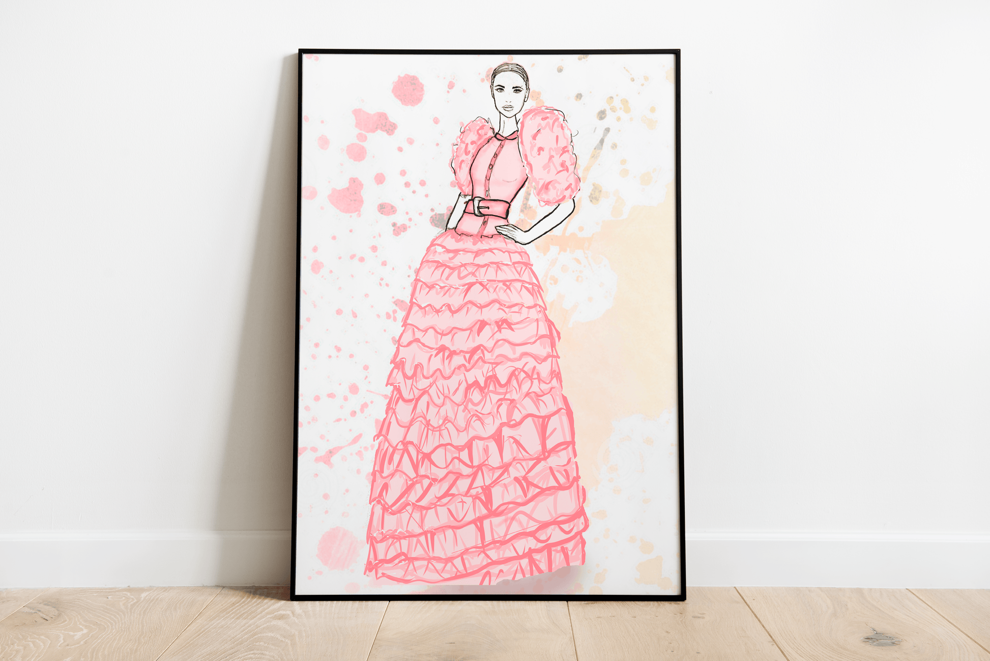 *Rosa es lindo y encantador. El estilo actual y vanguardista de las nuevas generaciones da una visión moderna de lo que elegante puede llegar a ser. *Limitado a solo 4 piezas disponibles *Las ilustraciones vienen en papel y tintas de alta calidad Cada ilustración es firmada, numerada y autenticada. El ilustrador de modas