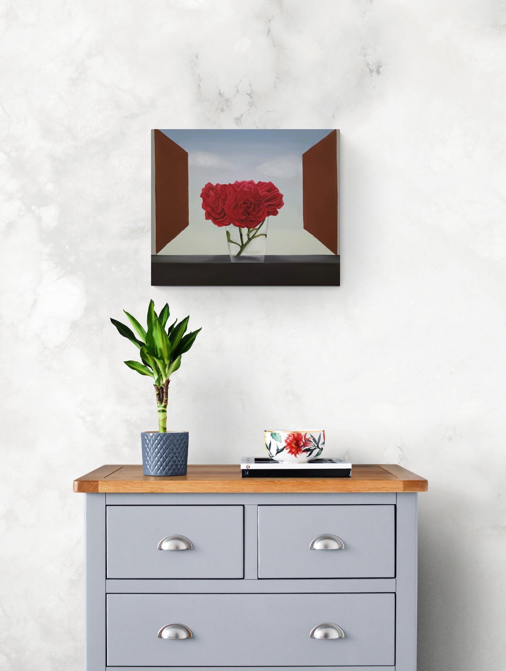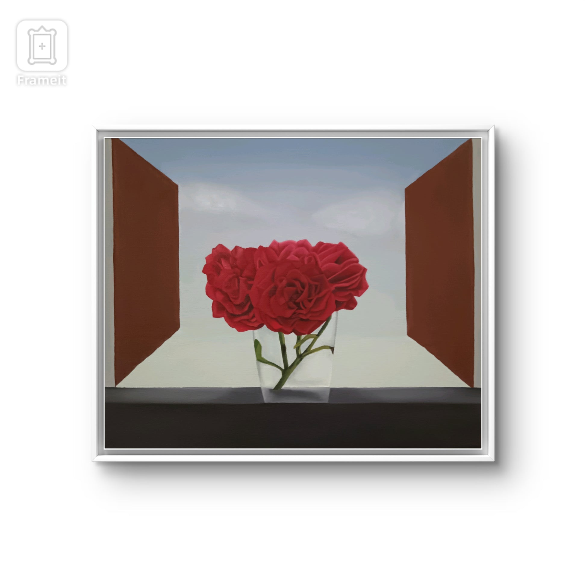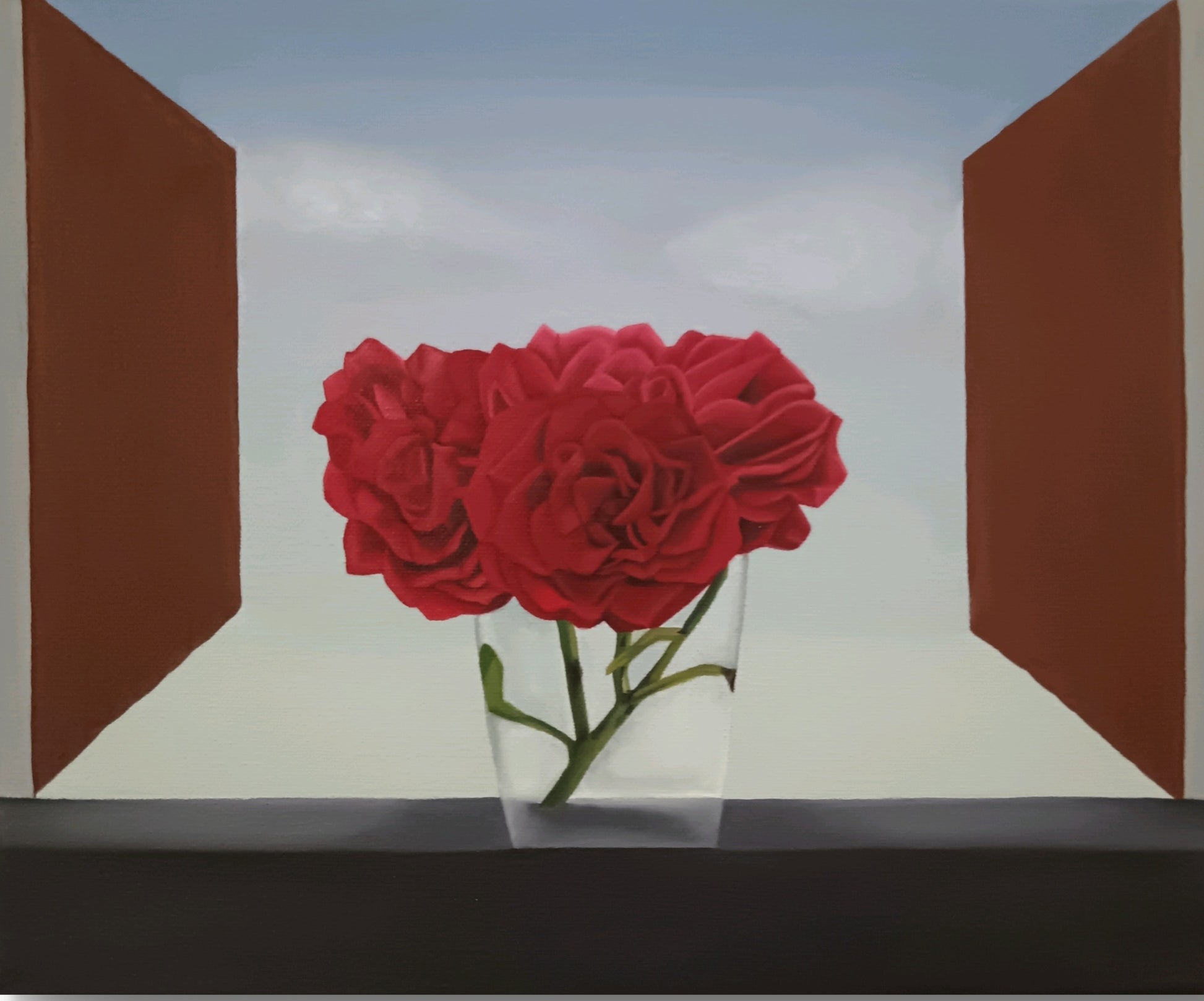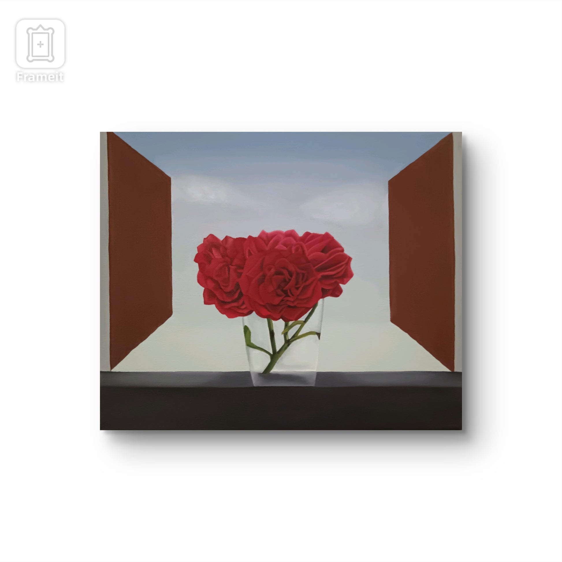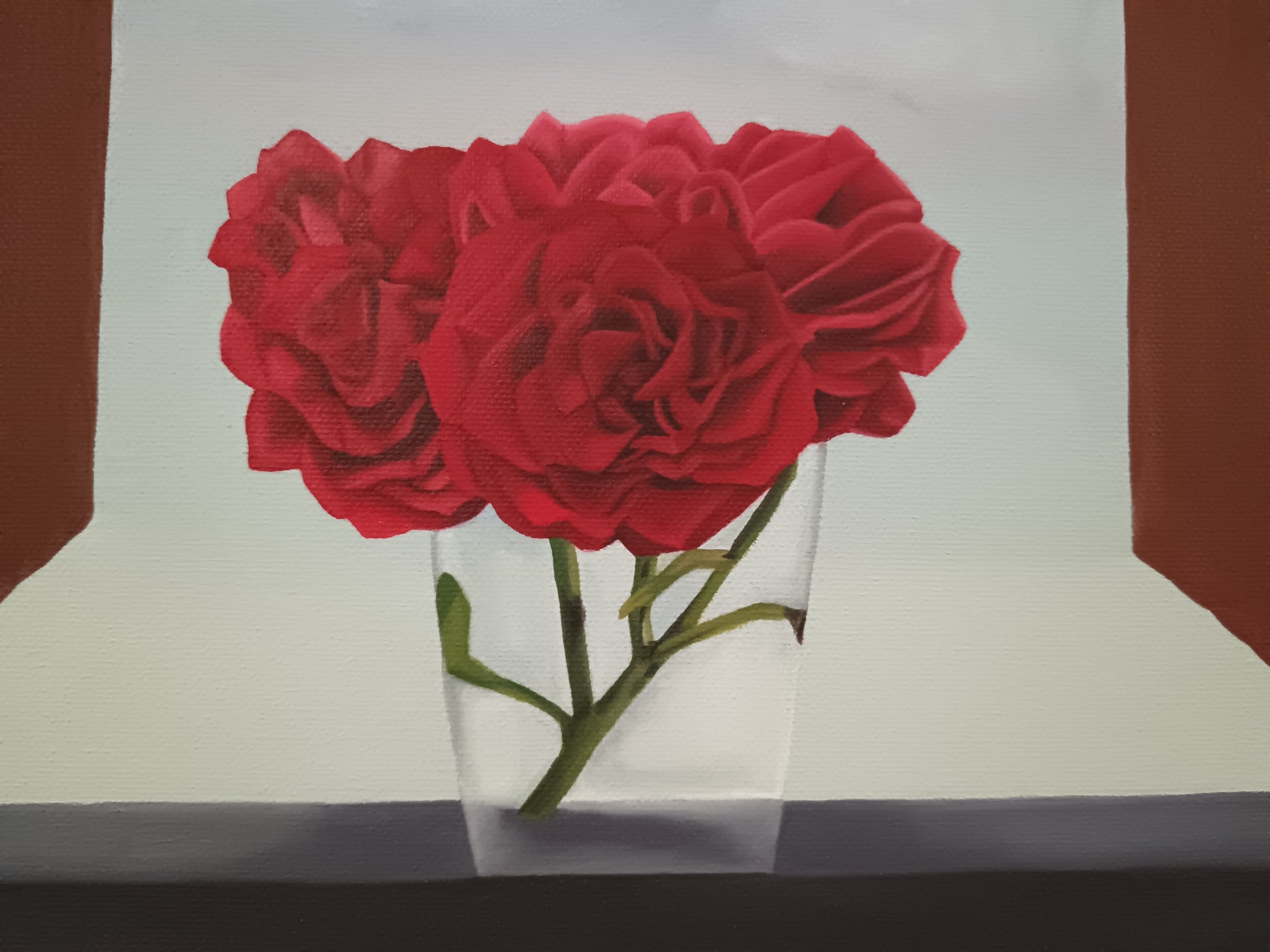 Naturaleza muerta, pintura por capas. Sin Marco. Este vaso con rosas en la ventana están inspiradas en el deseo de tener el clásico florero en la ventana lleno de hermosas flores. Lo más lindo es que este cuadro representa esa belleza de las flores que es tan efímera.