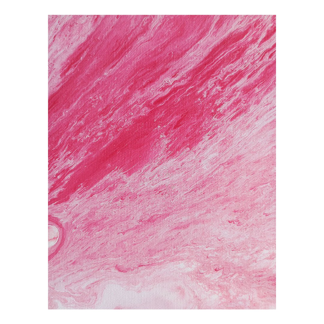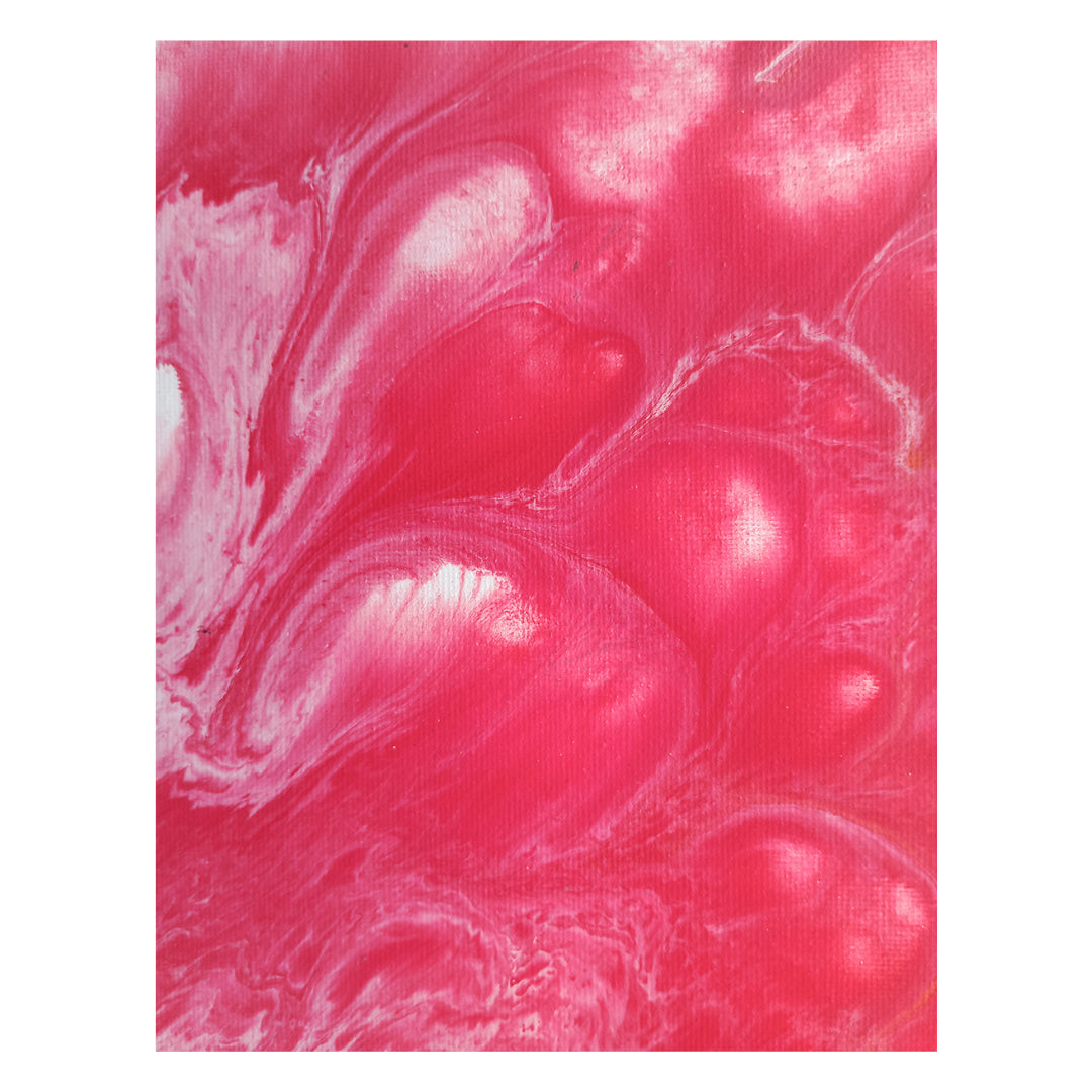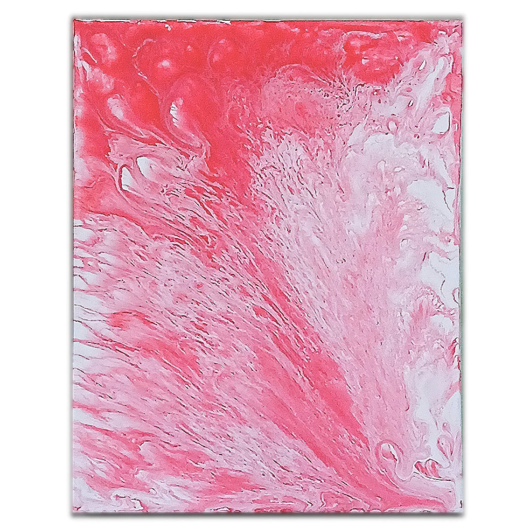The acrylics vibrate like a sacred corner opening in the consciousness, each burst a portal to the divine. The red and white flow toward a mystical transformation, where the soul becomes one with the universe, and it is there that the revelation of an inner temple marks a journey toward the fullness of being.