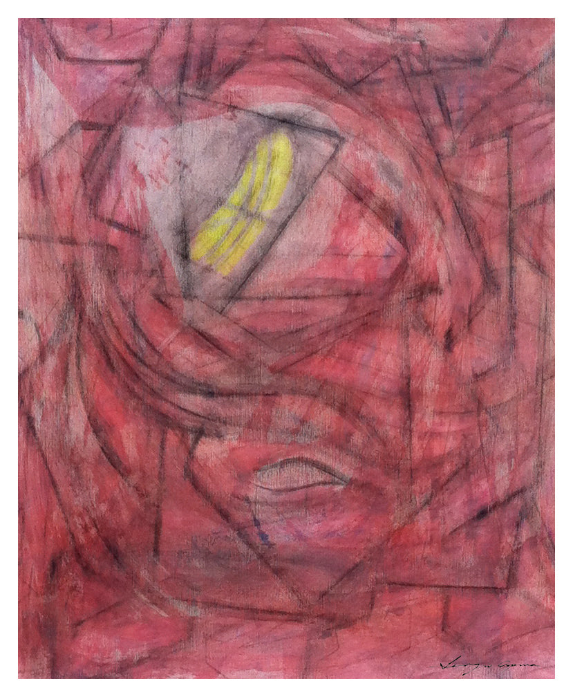 Acrílico, Pastel, Tinta carmín (Cochinilla) sobre papel grabado lino.