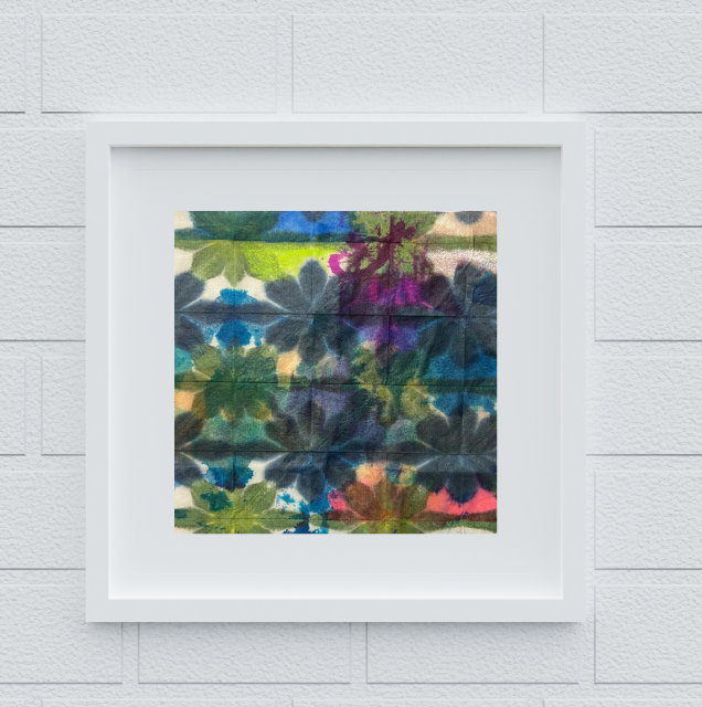 Obra abstracta multicolor. Ya tiene marco. Año 2025