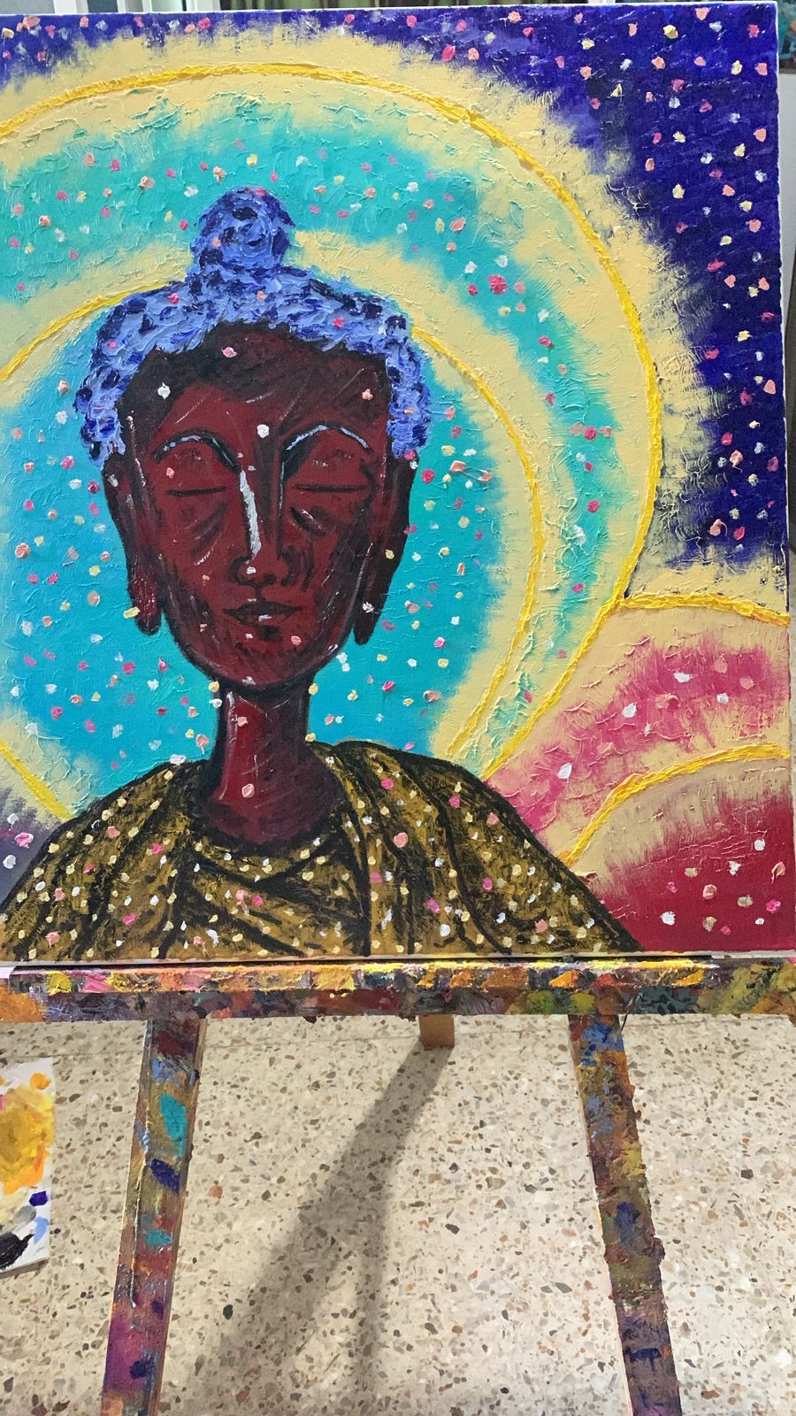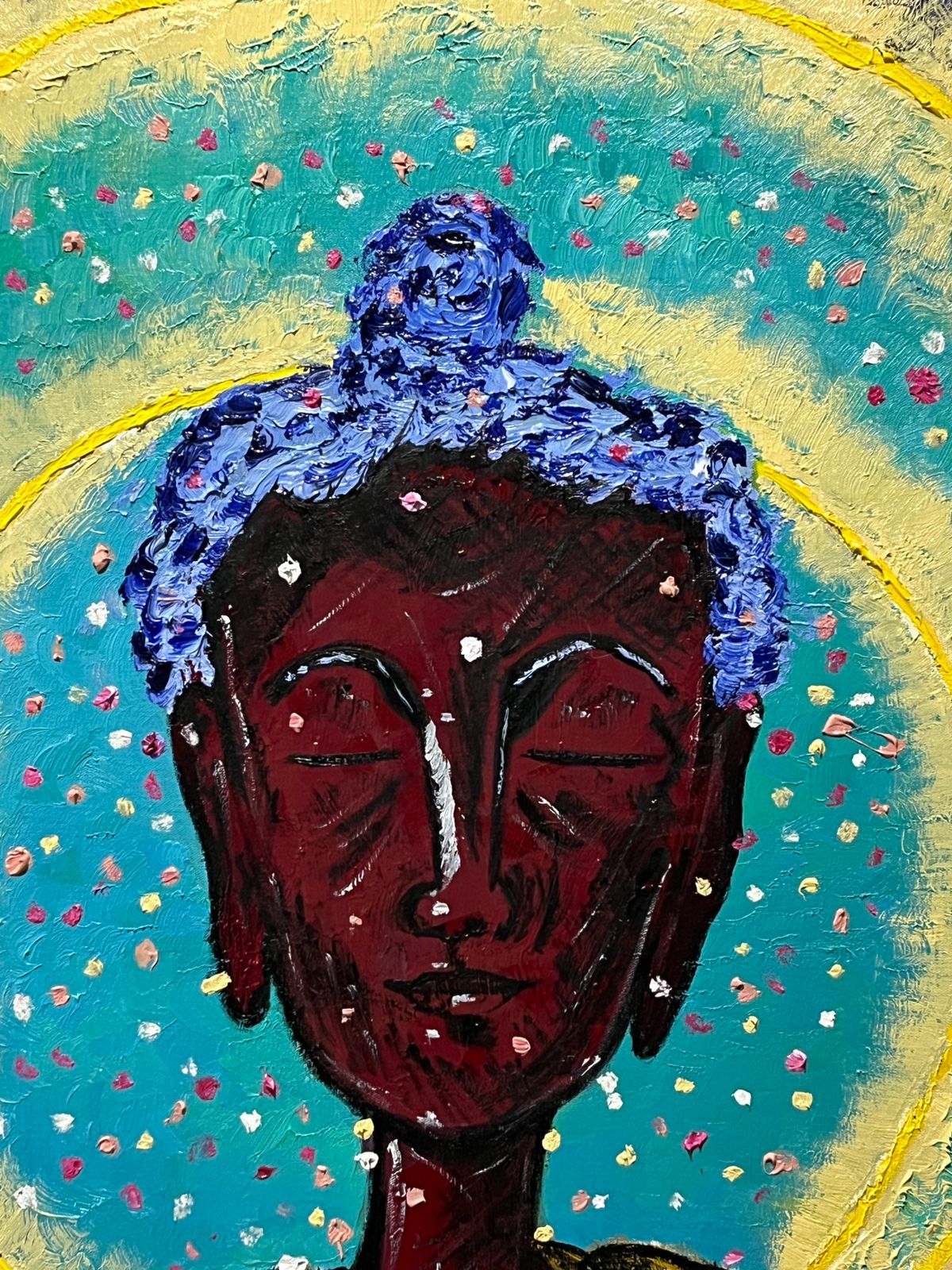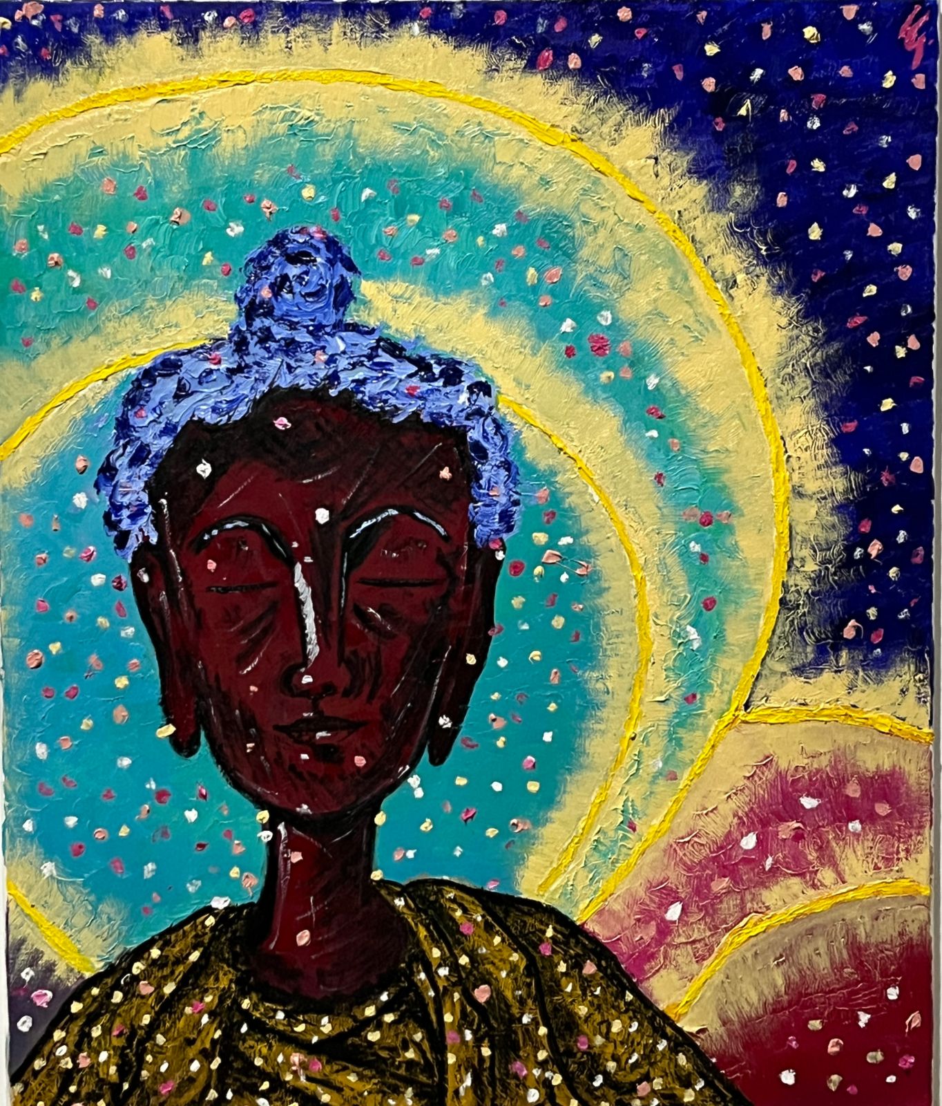 "Sadhu" es la obra más representativa de mi más reciente colección bíblicos y dioses en la cual aparece una figura que para mi es la más importante en el ámbito espiritual: Buda.