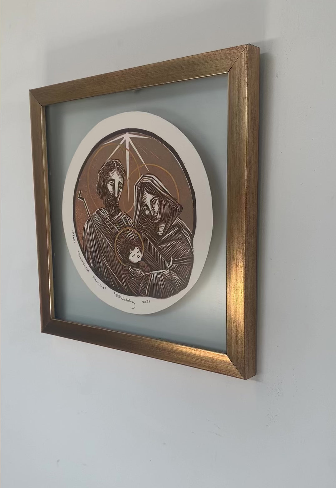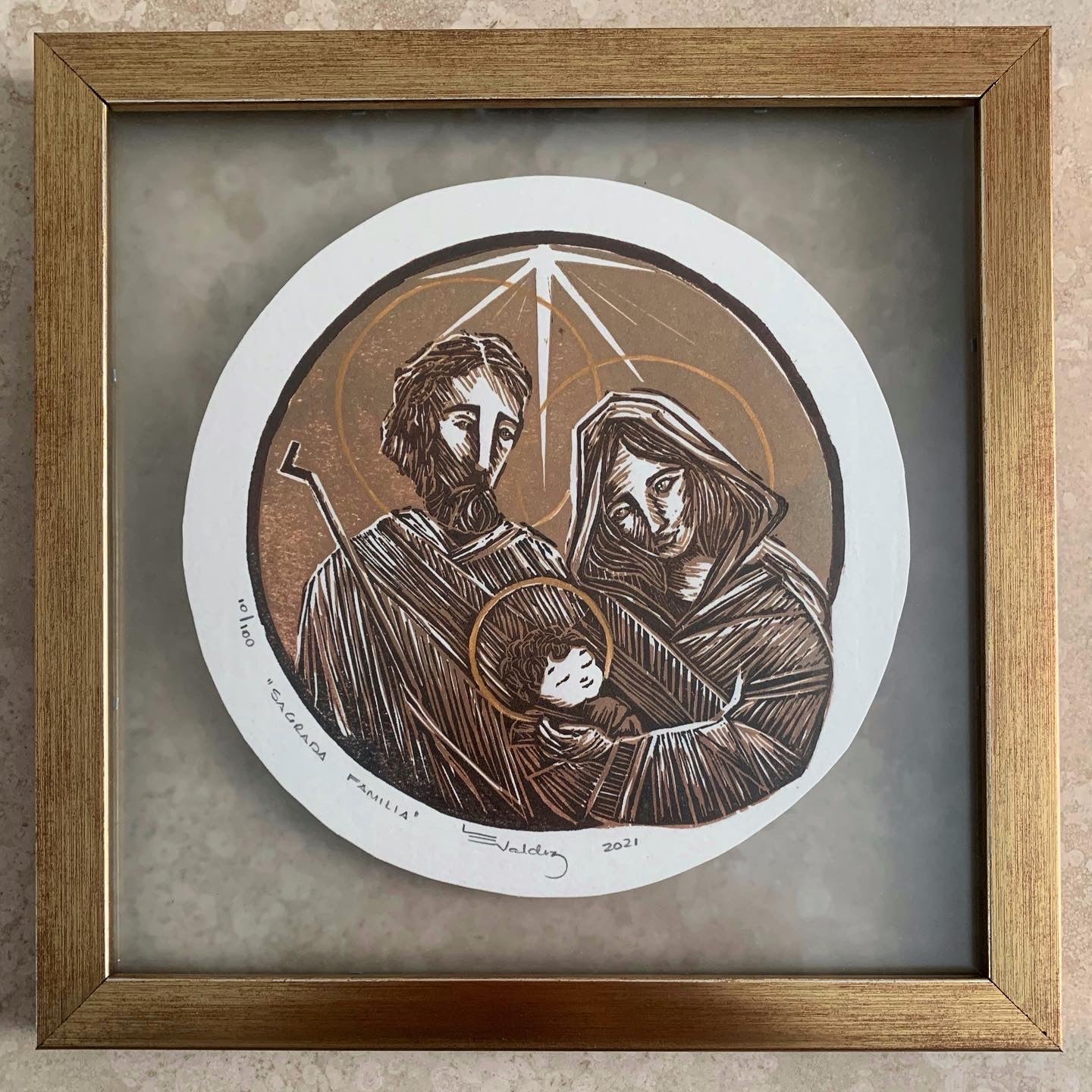 24.5 x 24.5 cm (enmarcado a doble vidrio, con moldura color oro, vidrio antireflectante)