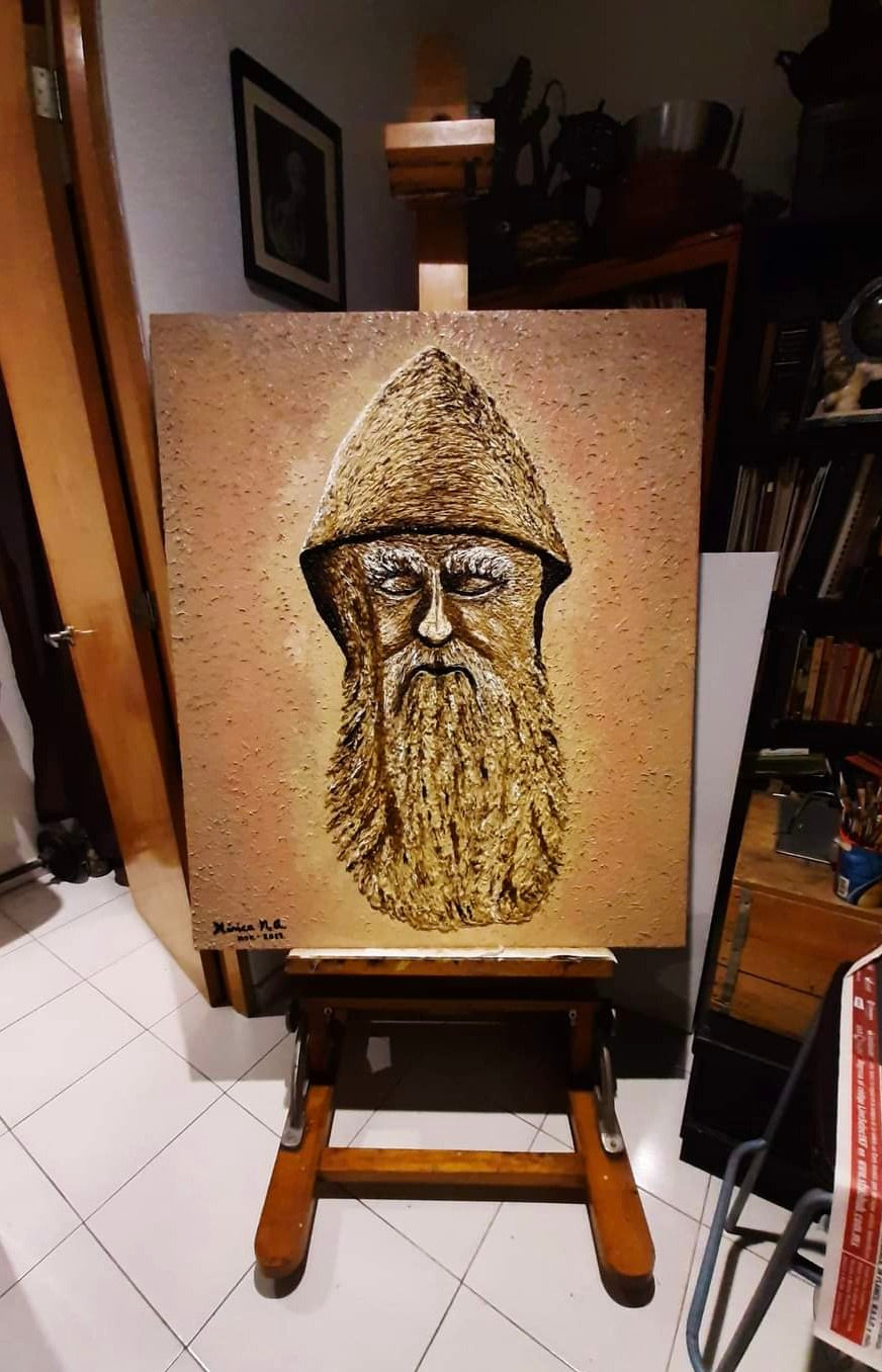 Saint Charbel es un Santo libanés que es muy milagroso. Estoy casada con un libanés y en el 2019 tuve la oportunidad de viajar a este hermoso país para conocer a su familia. Este cuadro fue subastado en el evento "Pro-Líbano", organizado por el Centro Libanés de la Ciudad de México para recabar fondos para ayudar al pueblo de Líbano después de la explosión ocurrida en Beirut en el 2020. He pintado tres cuadros de Saint Charbel y puedo pintarles uno bajo encargo.