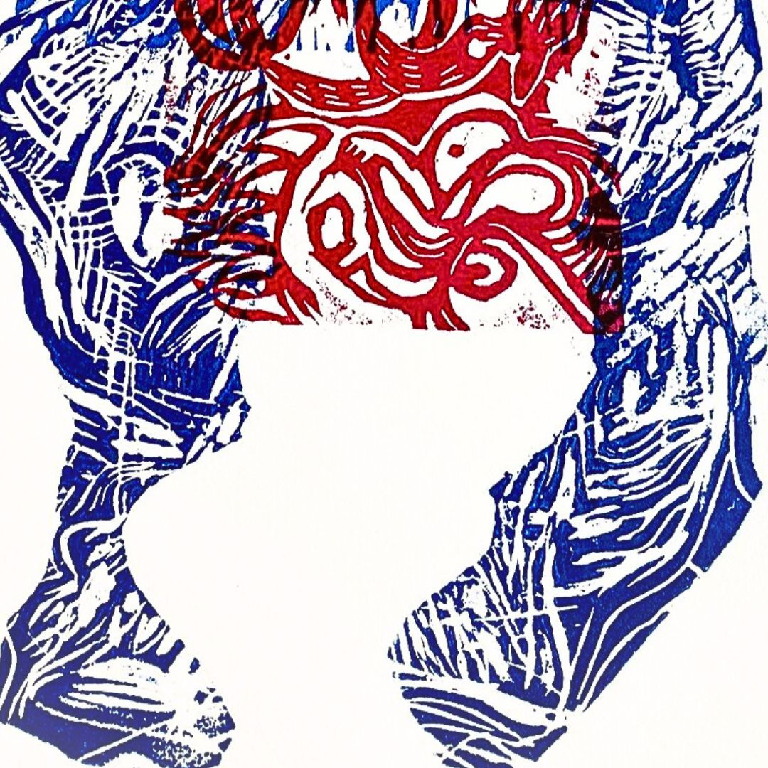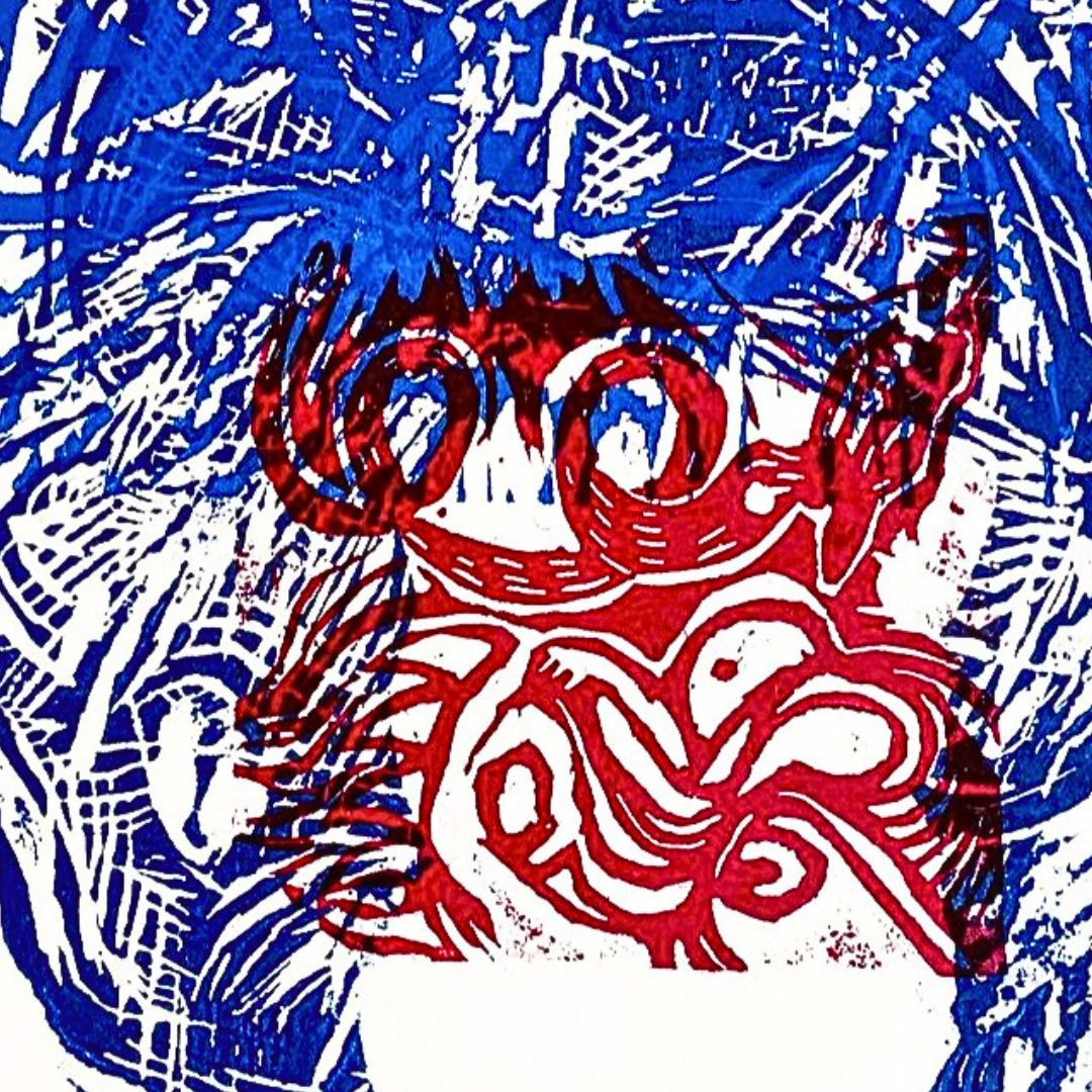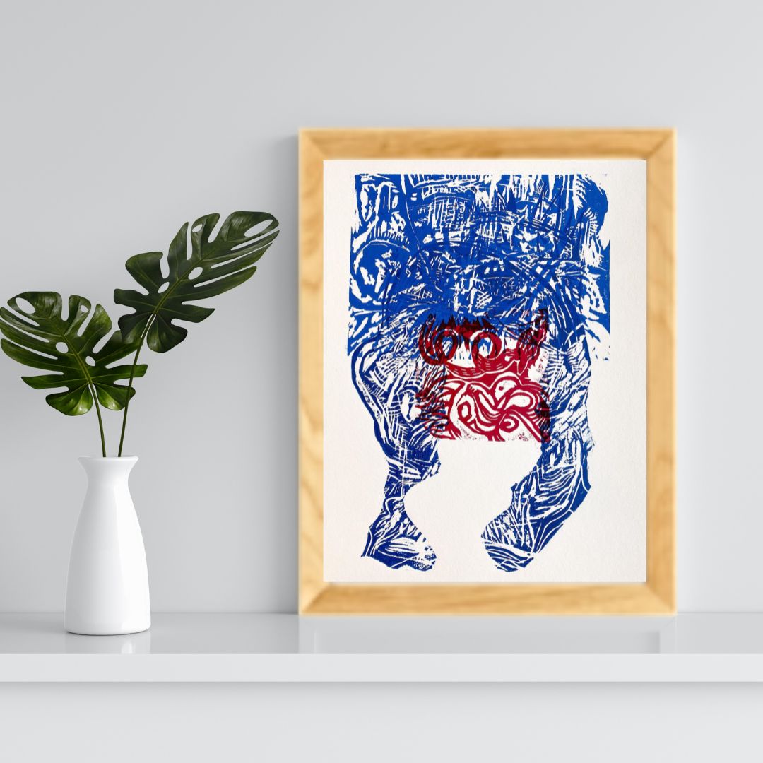 A través de una combinación de xilografía y linóleo sobre papel algodón Stonehenge de 220 gr, se crea una composición cargada de texturas y contrastes, que invita al espectador a reflexionar sobre las capas simbólicas y espirituales que conforman las cosmovisiones mesoamericanas. La obra, como parte de la serie, propone una resignificación contemporánea de estas raíces culturales, conectando el pasado con el presente en un diálogo visual único.