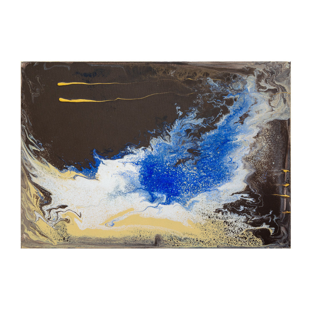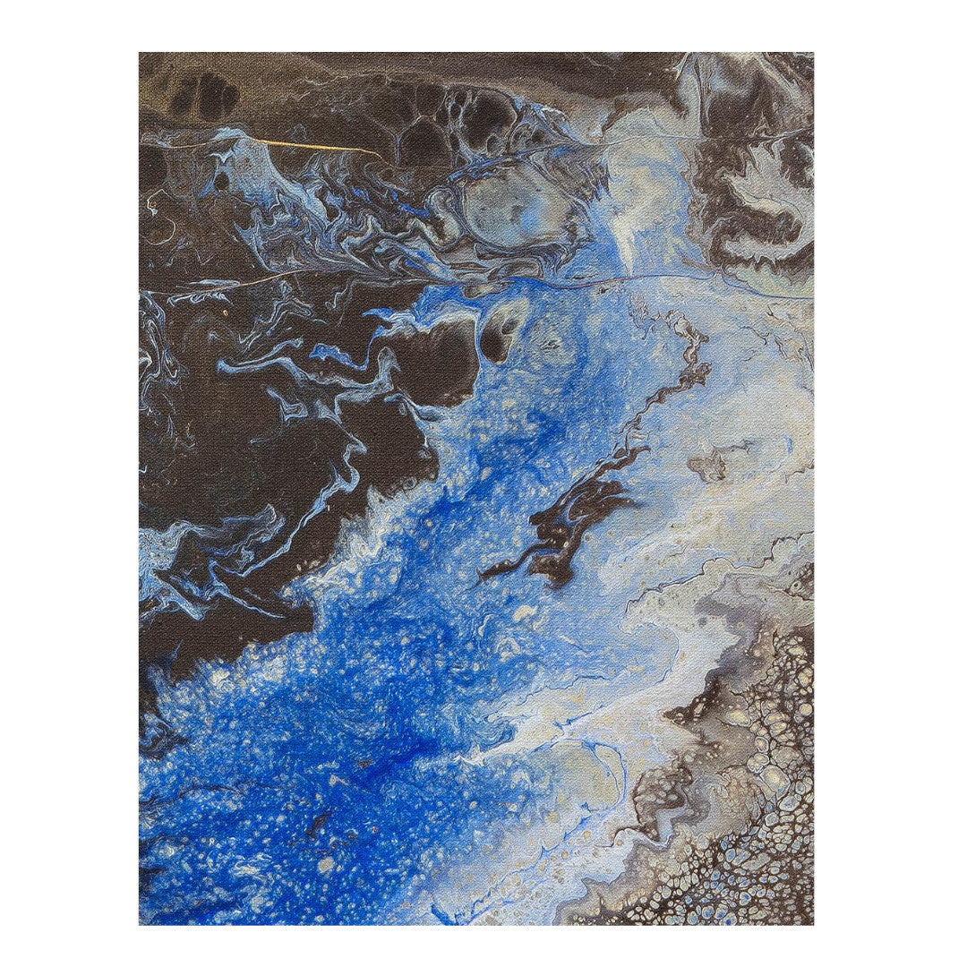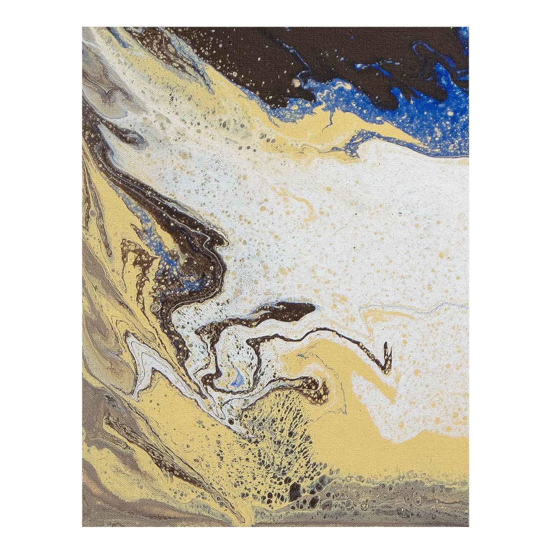 Abstract art on a cotton canvas frame using brushstrokes and Dutch pouring techniques.