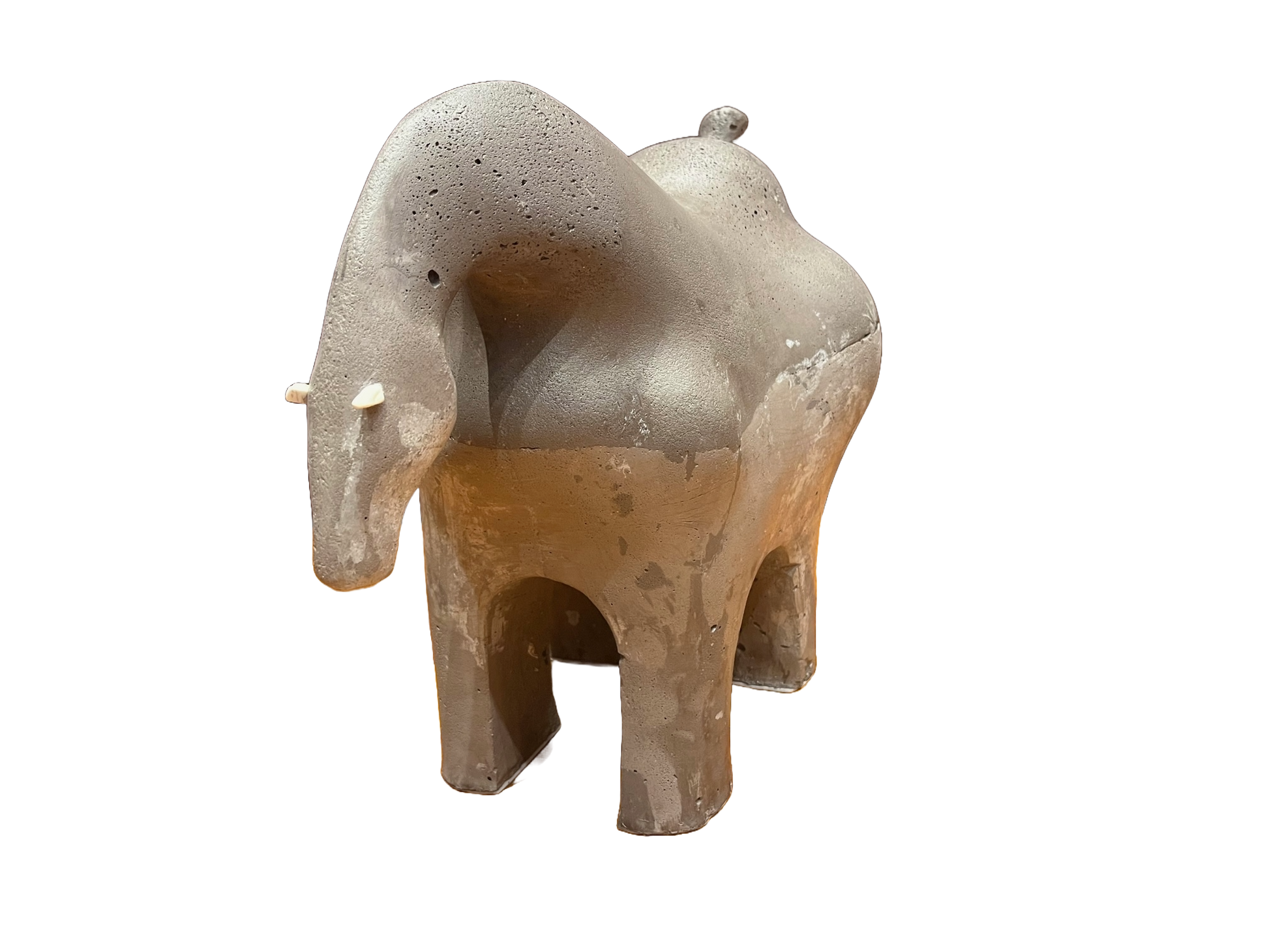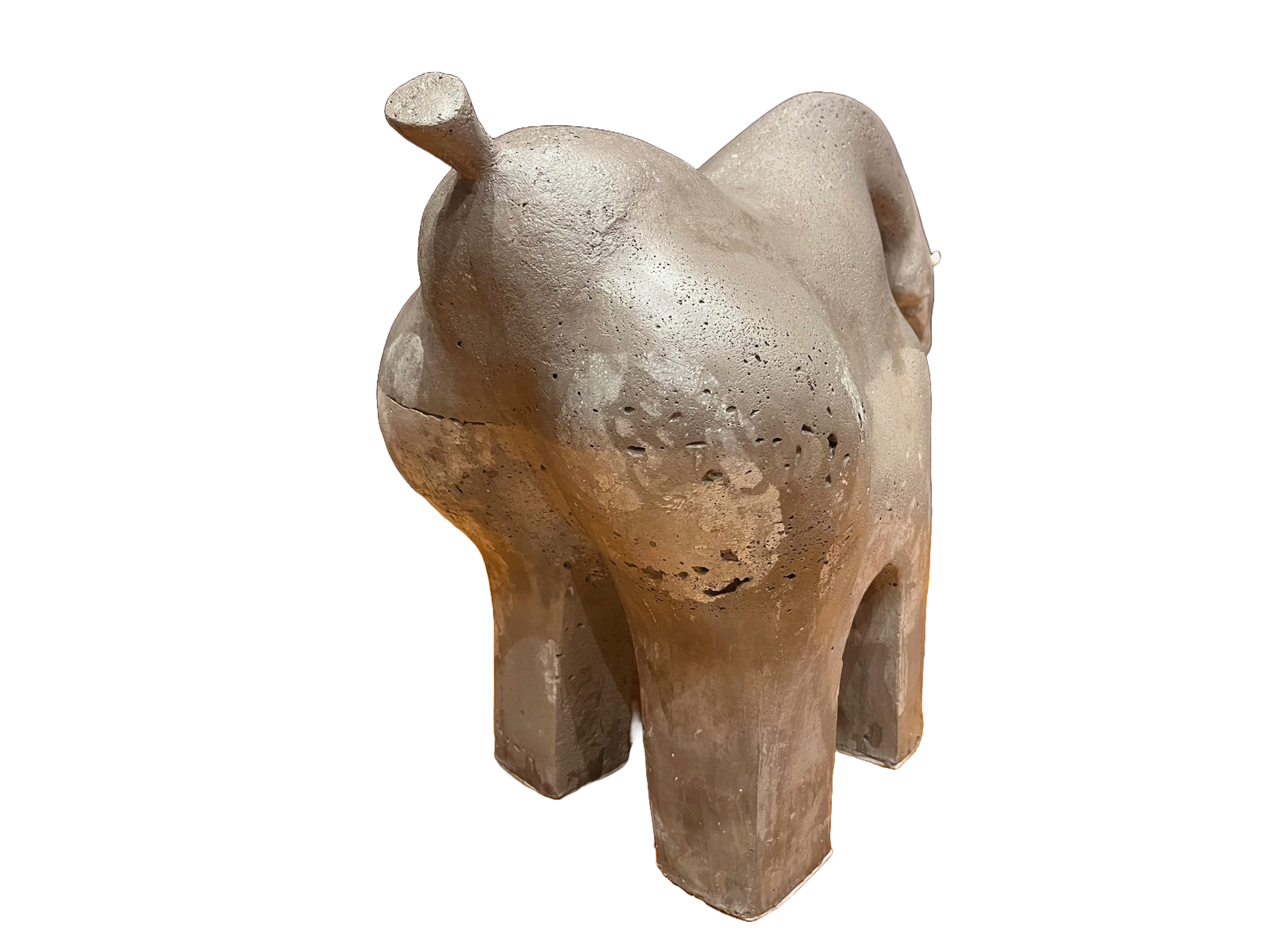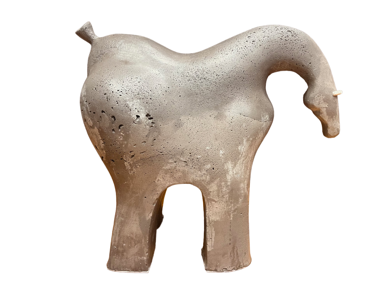 Cemento, arena y lechada de color marrón, intervenido con cuarzos blancos para las orejas.