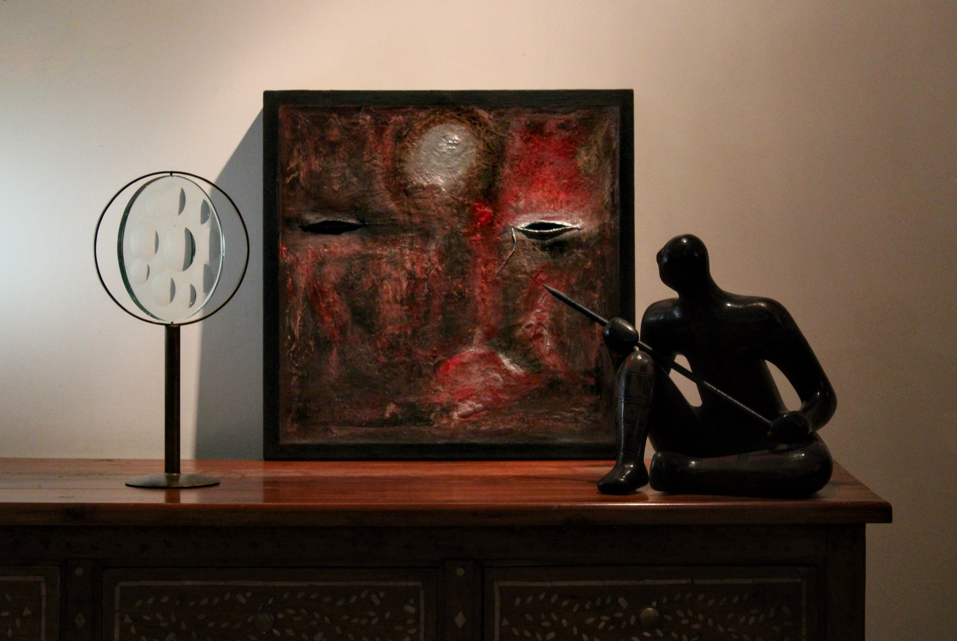 Una vez ubicada la obra en su lugar de exposición, te recomendamos evitar tocarla, no la expongas a cambios bruscos de temperatura y ten cuidado exponiéndola mucho a la luz. Procura mantenerla limpia, libre de polvo y comida y trata de no limpiarla con productos químicos que usarías normalmente en tu casa. Con esto lograrás tener una obra como nueva.