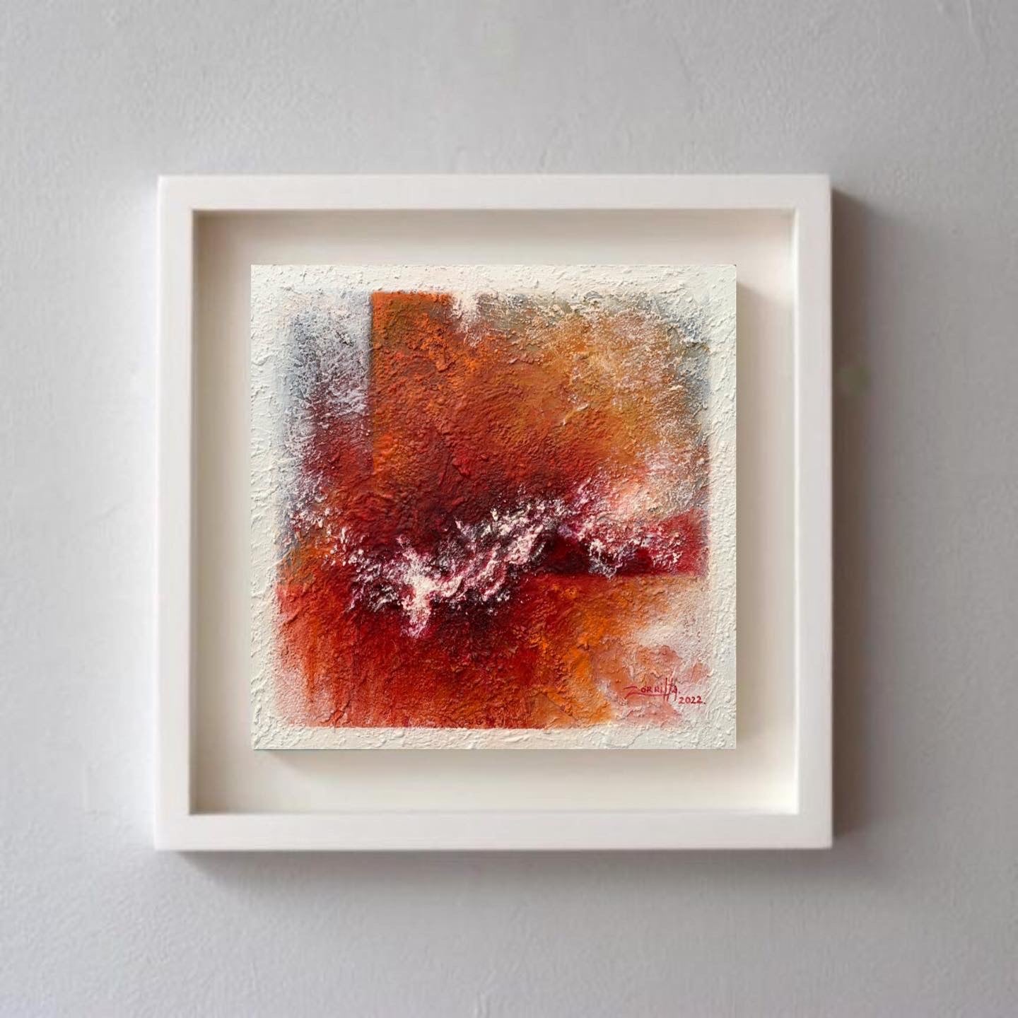Esta obra es una pintura abstracta elaborada con oleos y encausto. El encausto es una técnica de pintura que se caracteriza por el uso de cera como aglutinante de los pigmentos. Esta pintura forma parte de una serie de cuadros abstractos en los cuales se puede apreciar mi formación como arquitecta. Estuvo expuesta en el Museo MAQRO en la ciudad de Querétaro. La obra incluye el marco de madera que se muestra en las fotos en color blanco en formato de caja veneciana.