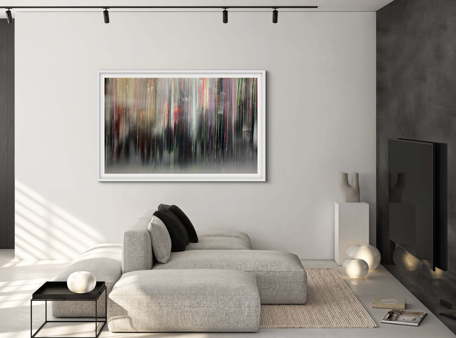 Impresión en Canvas Hahnemühle intervenida con pintura acrílica montada en caja veneciana color blanco