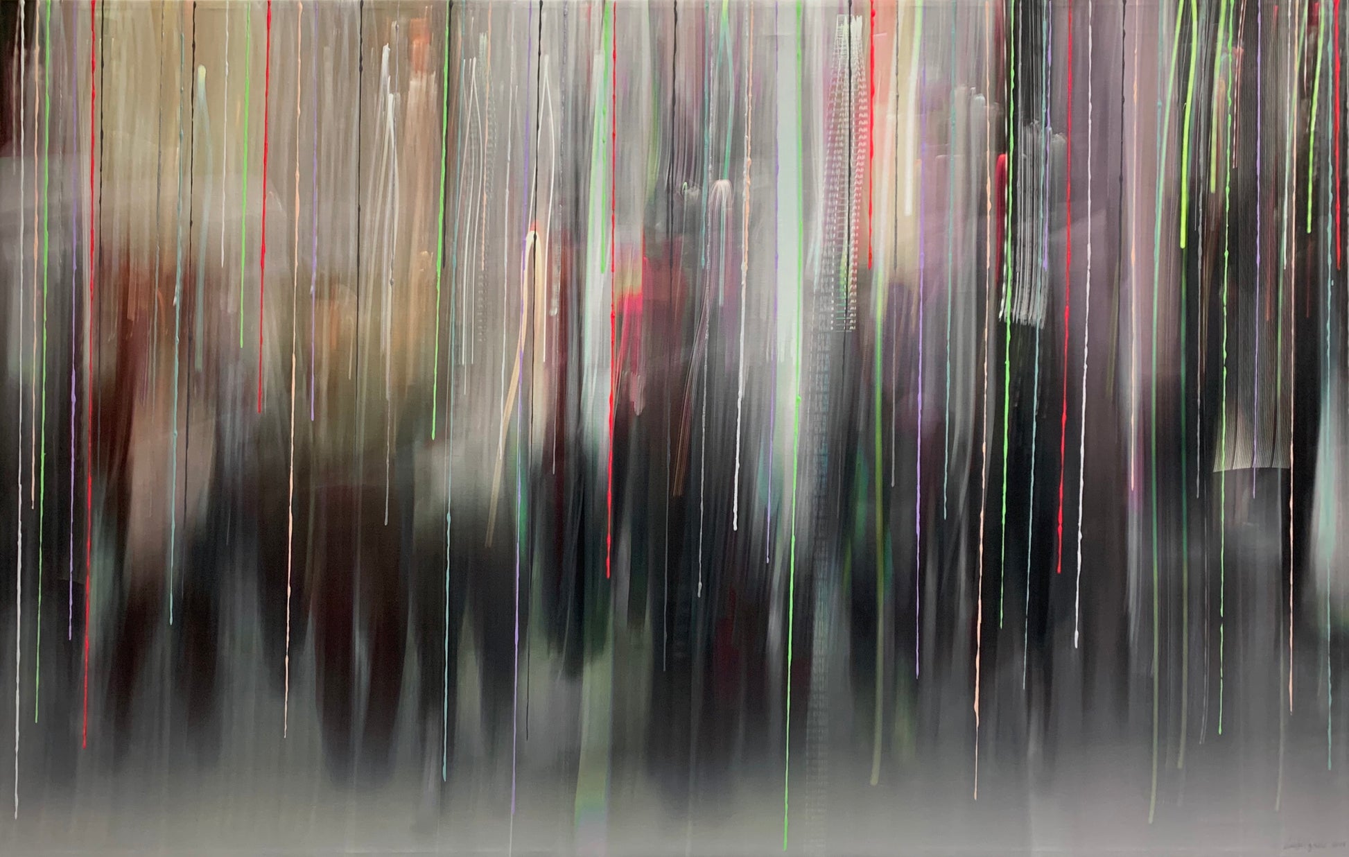 Esta obra forma parte de mi serie Contemplaciones Urbanas. Con la frialdad de la fotografía trato de plasmar como con el tiempo nos vamos homogenizando cada vez mas con nuestro entorno y sin darnos cuenta vamos perdiendo nuestra esencia, convirtiendonos en sombras, sin embargo con el calor de la pintura rescato esa esencia única de cada persona dentro de esa multitud.