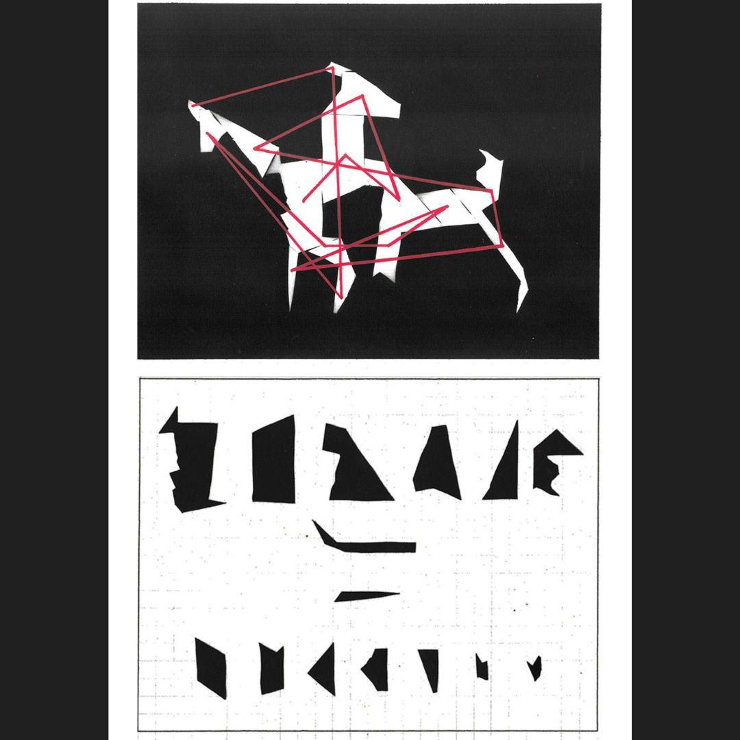 Después, partiendo de este orden, los fragmentos fueron unidos en las composiciones mediante una línea roja que seguía el criterio de clasificación previa. Esto dio como resultado un tipo imprevisto de visualidad en las composiciones iniciales.