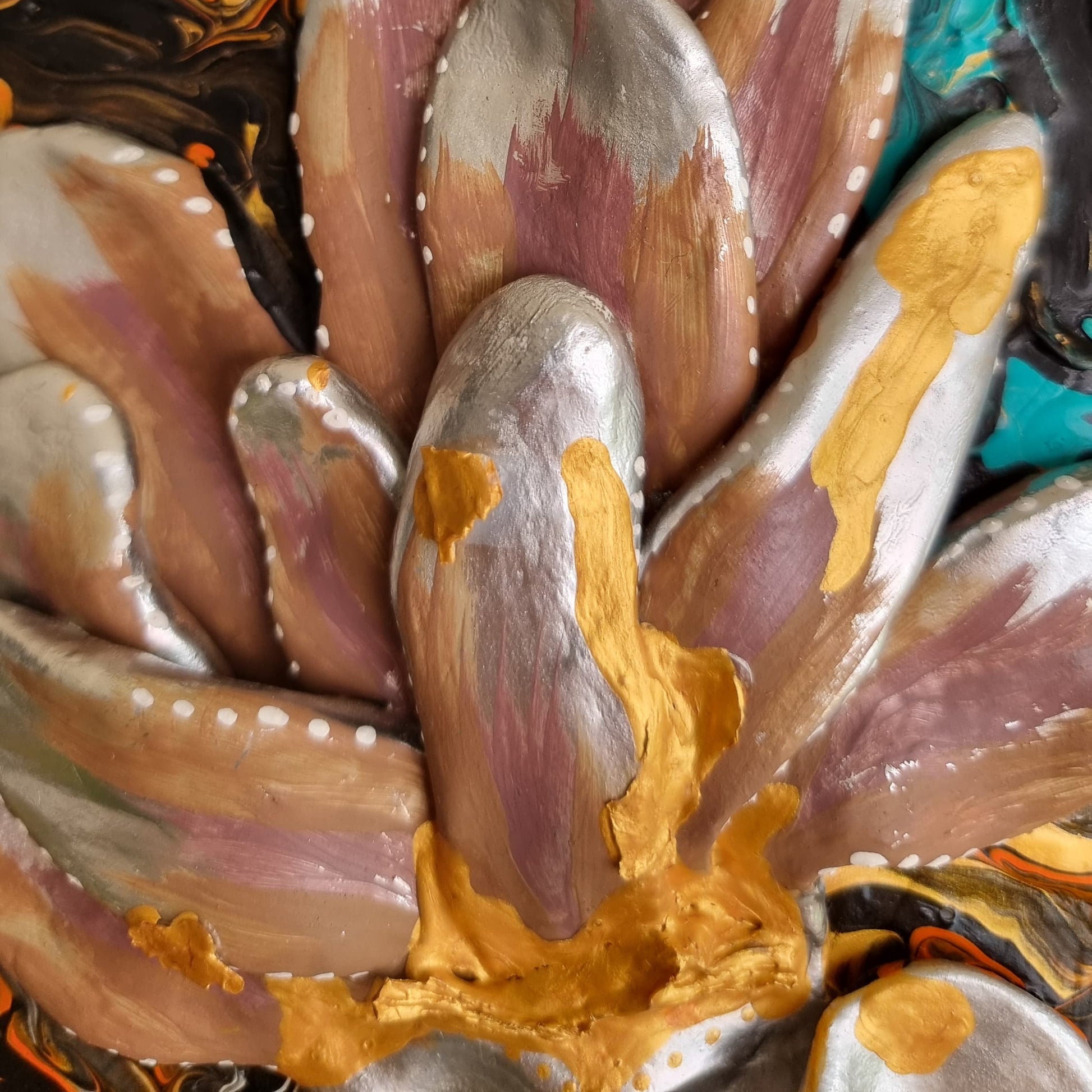 Una vez ubicada la obra en su lugar de exposición, te recomendamos evitar tocarla, no la expongas a cambios bruscos de temperatura y ten cuidado exponiéndola mucho a la luz. Procura mantenerla limpia, libre de polvo y comida y trata de no limpiarla con productos químicos que usarías normalmente en tu casa. Con esto lograrás tener una obra como nueva.