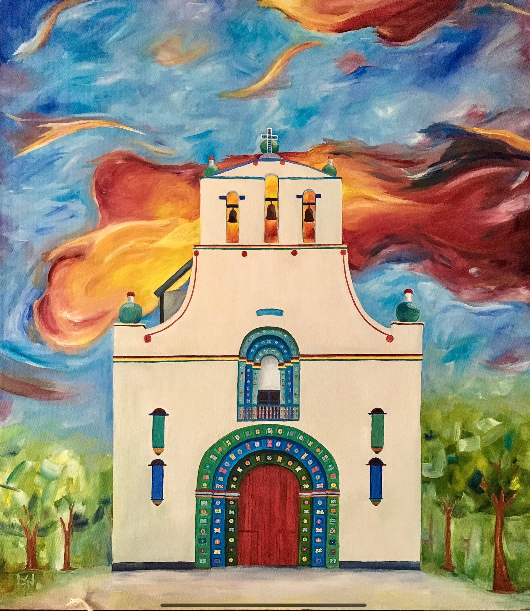 Paseando por Chiapas llegué a Chamula, esta obra está inspirada en aquella hermosa iglesia, por dentro llena de mística rituales inesperados, este lugar me dejó pensativa durante un tiempo. La iglesia es preciosa y sin importar donde está o que tan grande o chica es, al final nuestro creador y la energía del universo son más grandes y poderosos de lo que podemos imaginar.