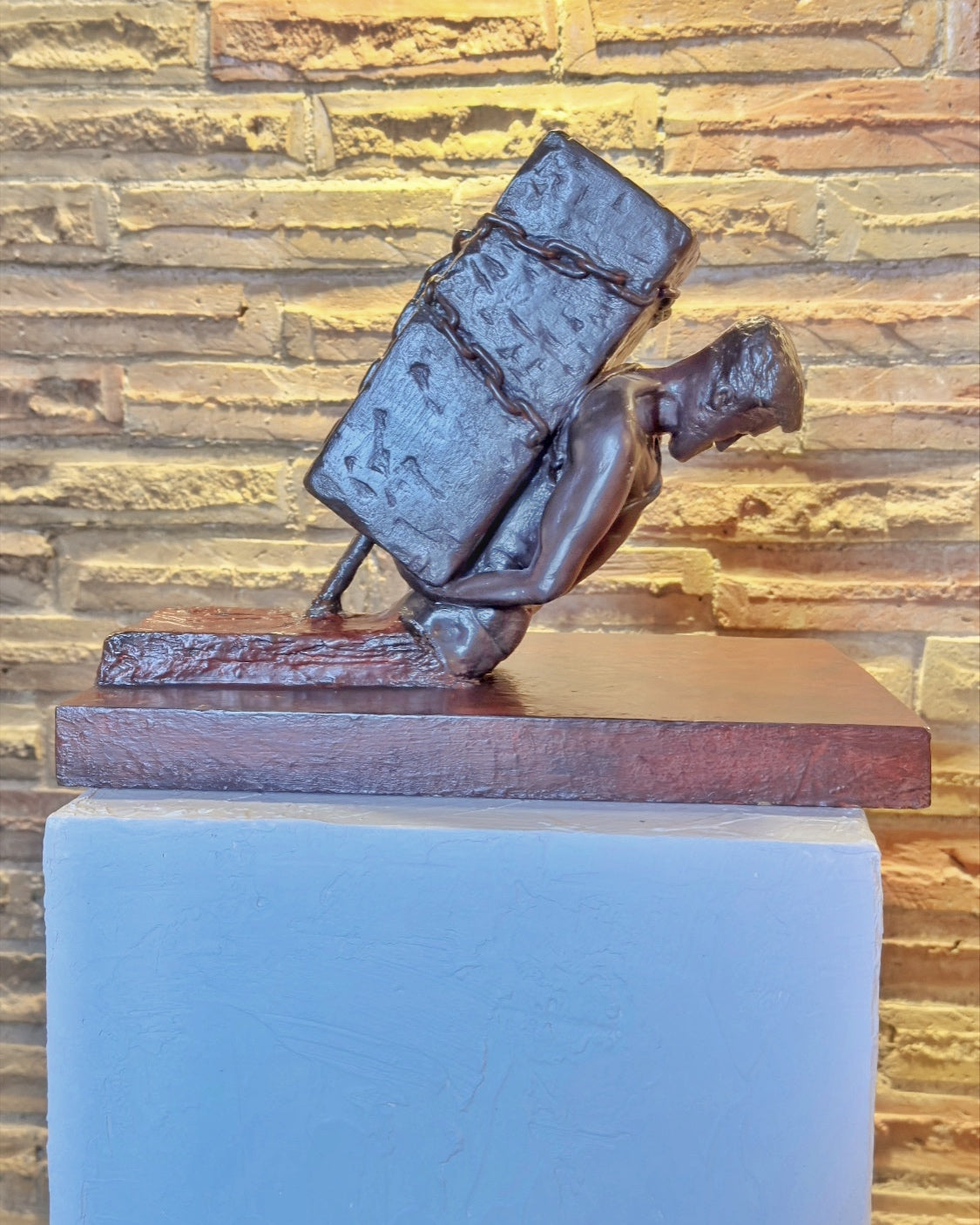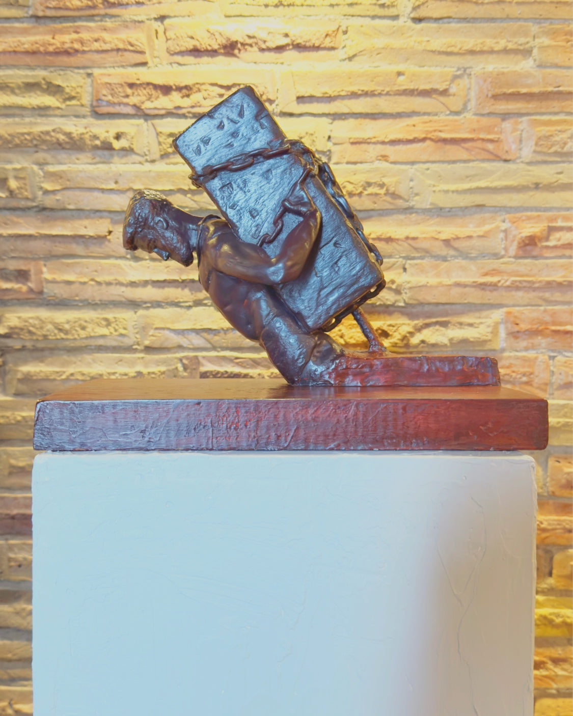 Esta obra encarna al héroe condenado a repetir su ascenso eterno, pero no como figura olvidada, sino como reflejo íntimo de la condición humana. Sisifus avanza, cae y vuelve a levantarse, sosteniendo en su cuerpo la dignidad del esfuerzo infinito. La obra captura ese instante donde la carga ya no es castigo, sino conciencia: la voluntad de seguir, incluso cuando el destino parece inamovible. En su silencio, Sisifus revela la profunda humanidad de quien insiste, aun sabiendo que la cima nunca será alcanzada.