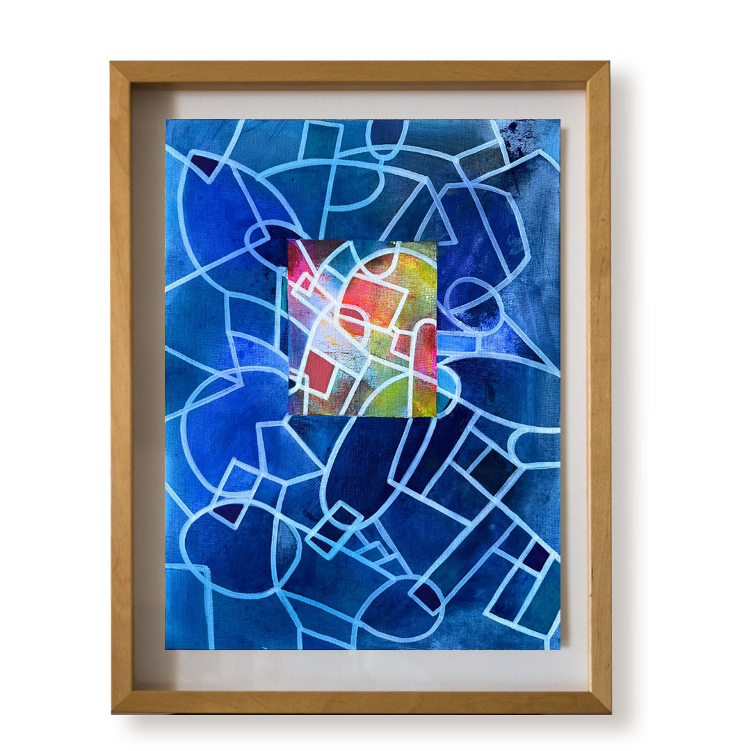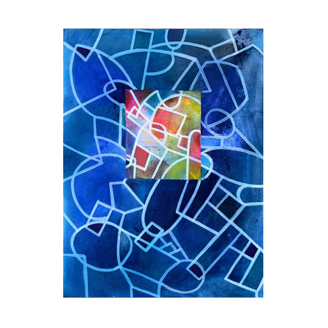 Técnica mixta, tintas acrílicos, acuarela y lápices de colores, sobre tela en cartón