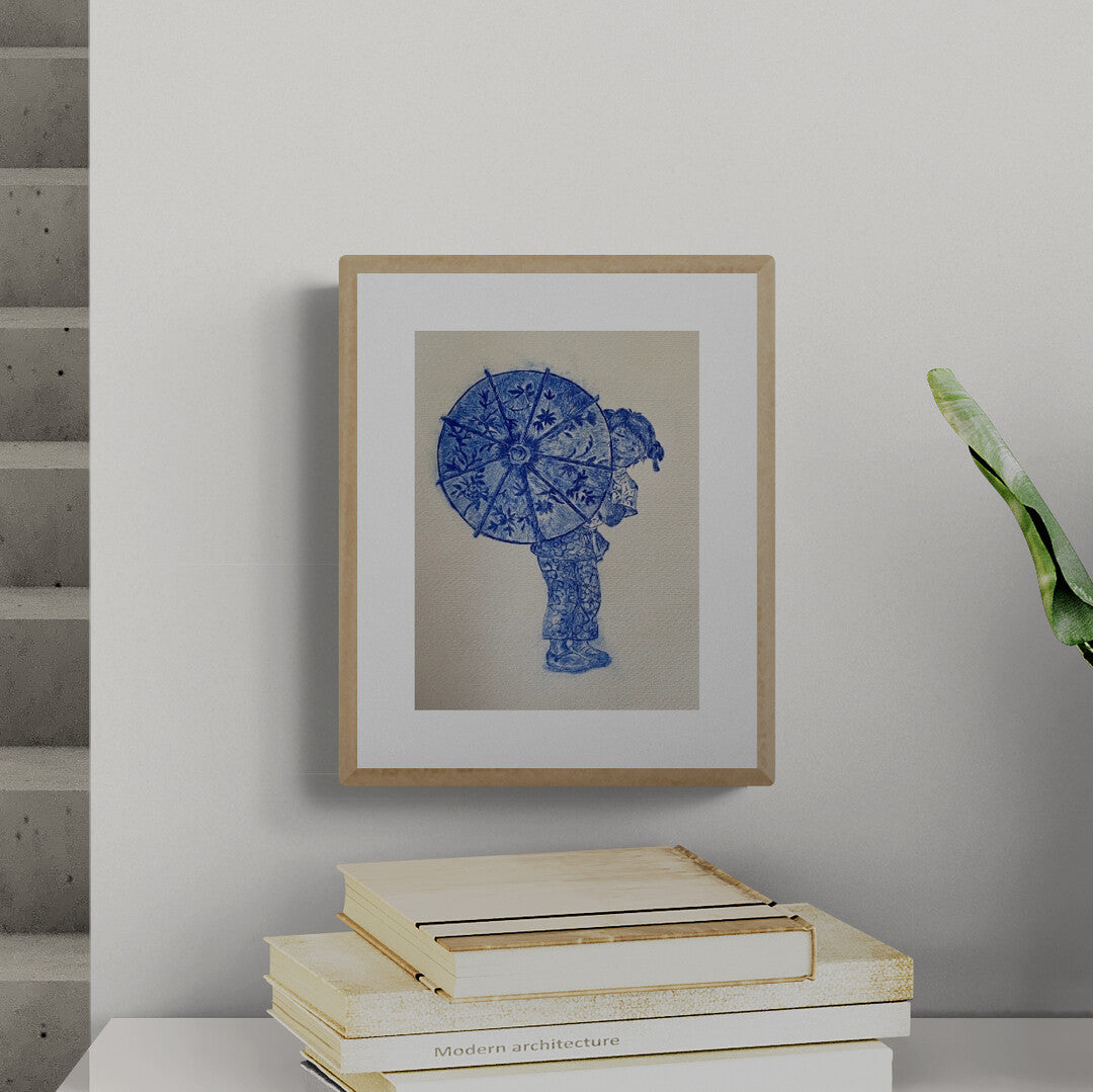 Serie de 3 grabados. La ternura y la cultura china reflejada en este grabado, con la sombrilla que sostiene la niña tratándose de esconder, hago que también uno admire la belleza de las culturas orientales.