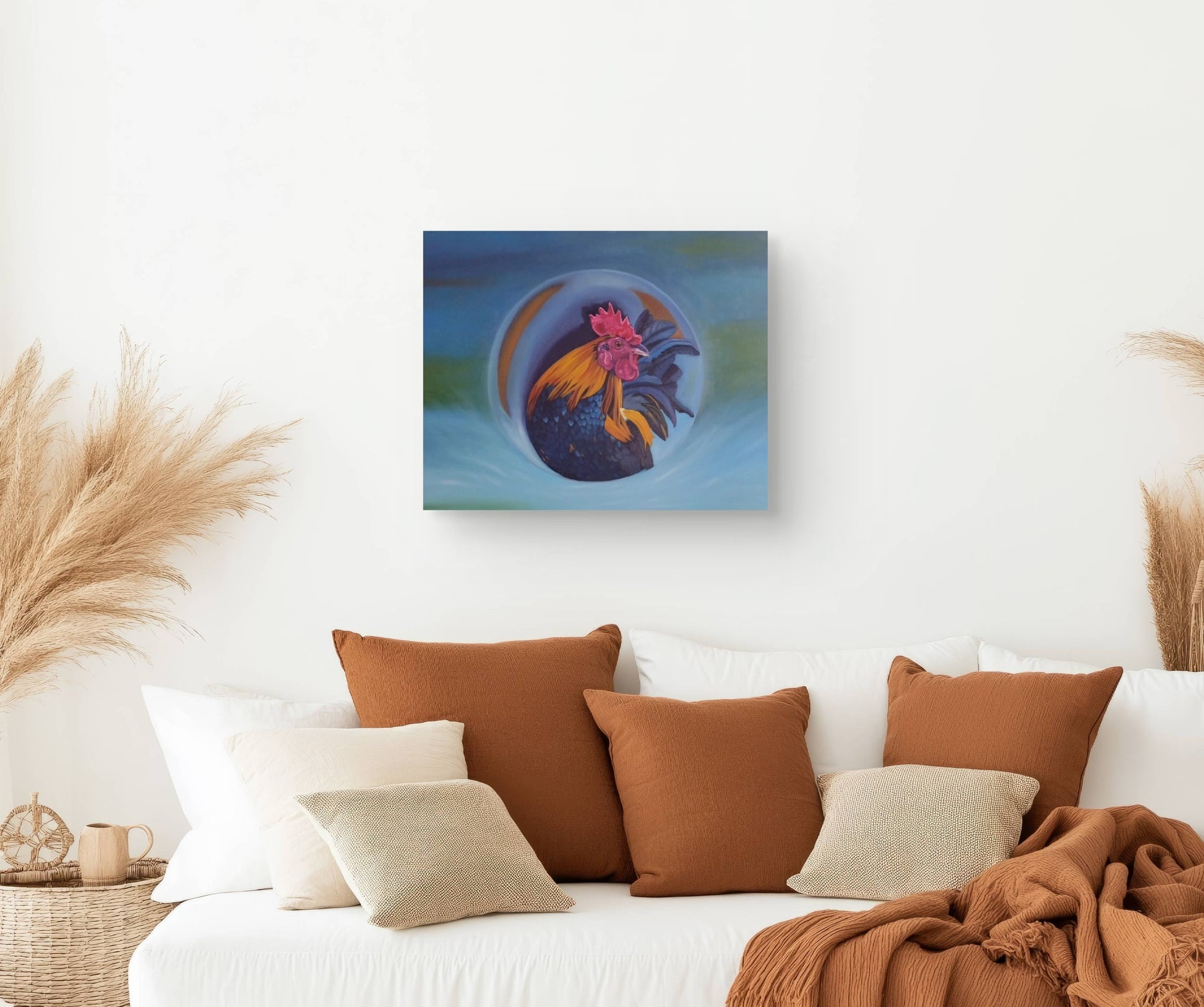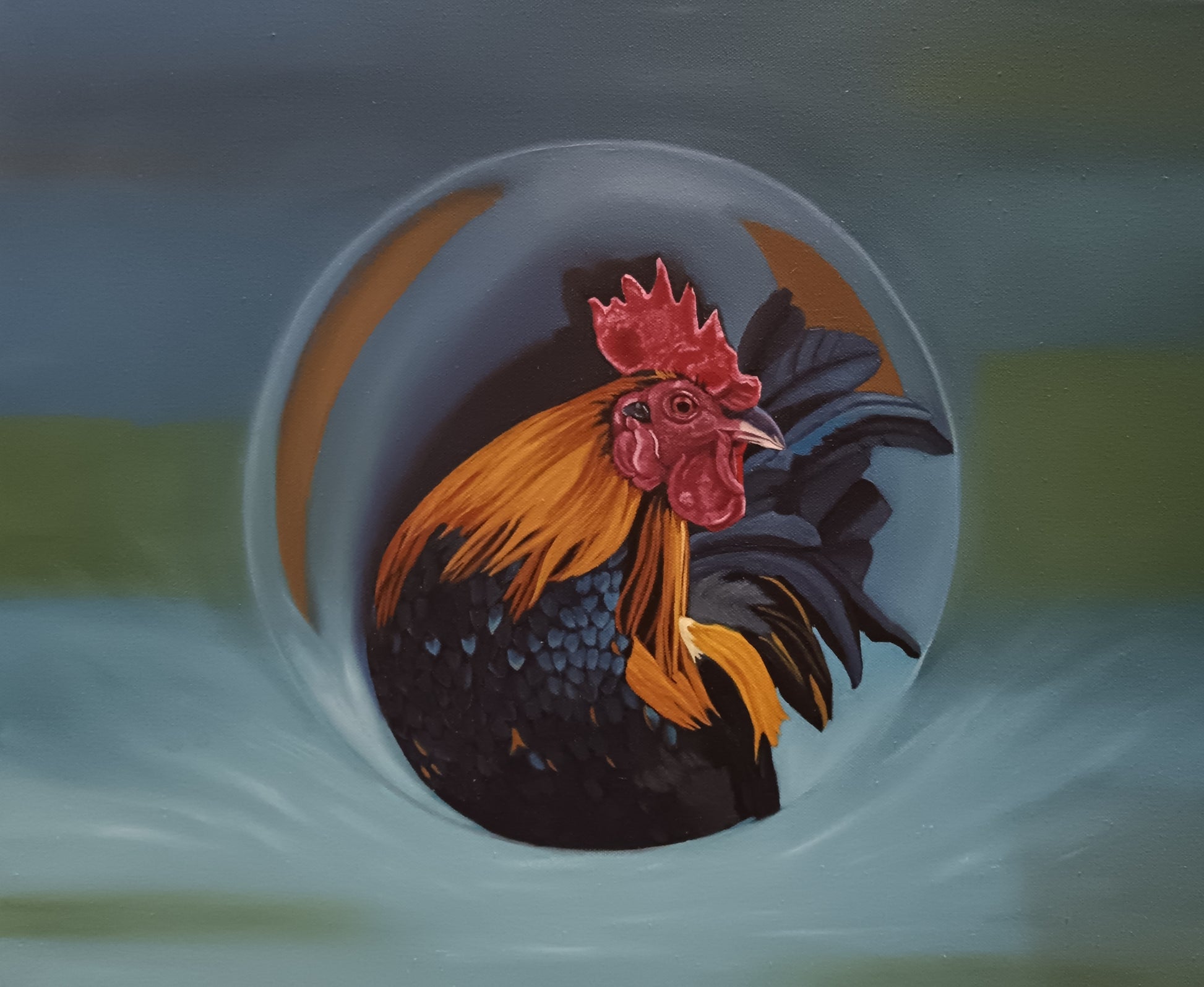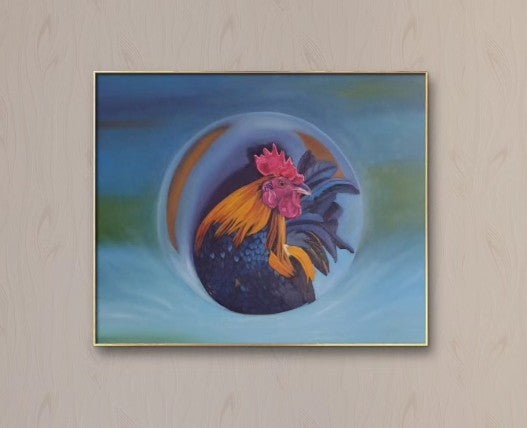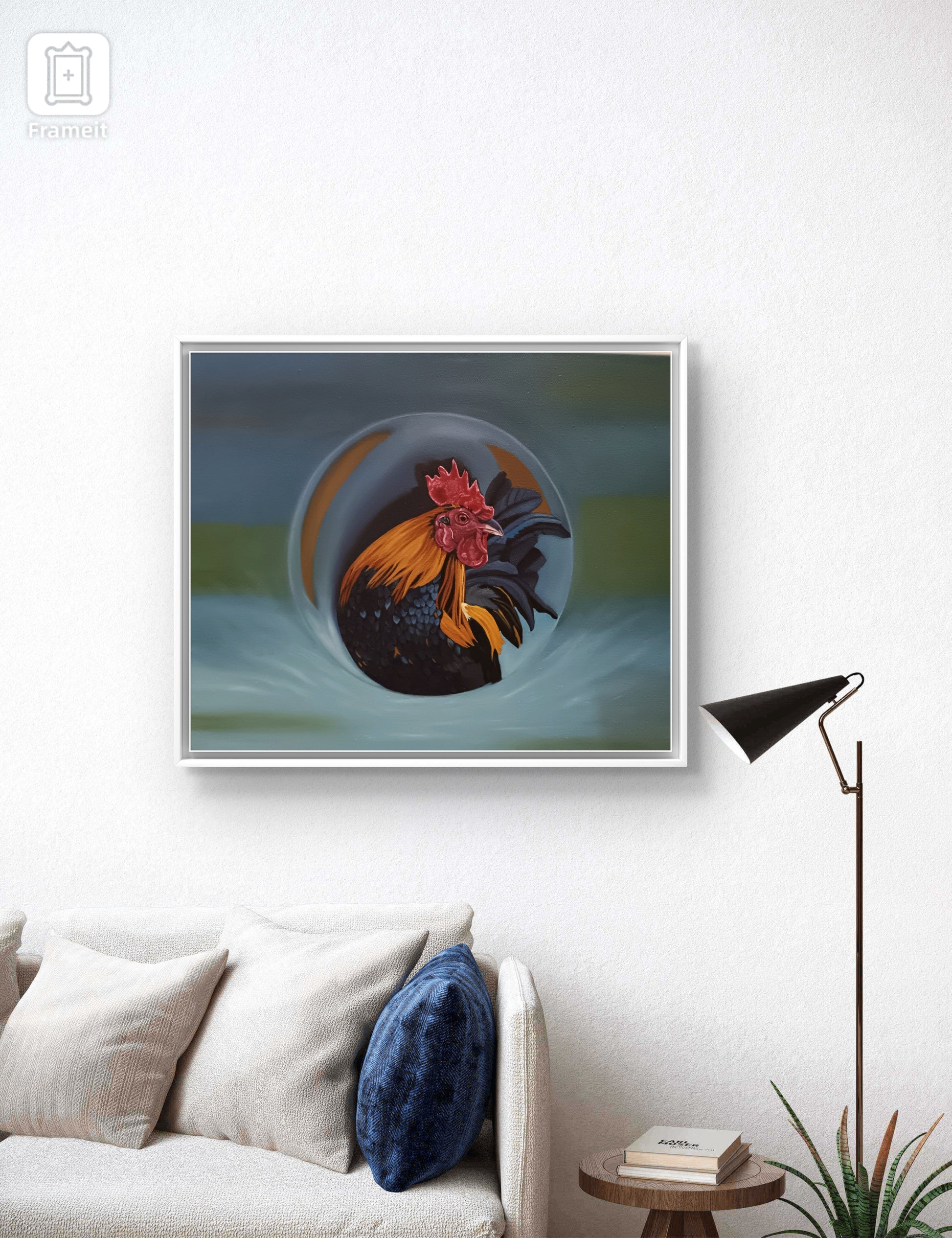 Trabajo por capas, sin Marco. Este hermoso gallo esta atrapado en una burbuja y solo se deja guiar hacia donde su suerte lo lleve.