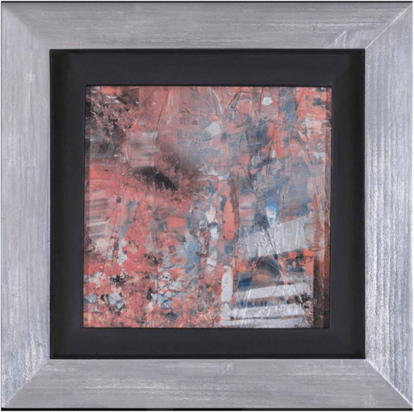 Marco realizado a mano en madera natural conformado en dos partes de una marialuisa y el marco exterior pintado en neutros plata y gris