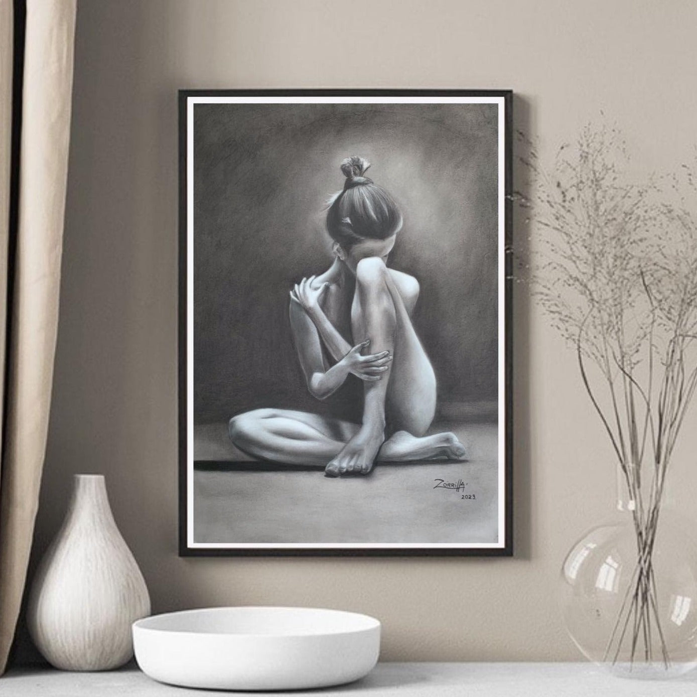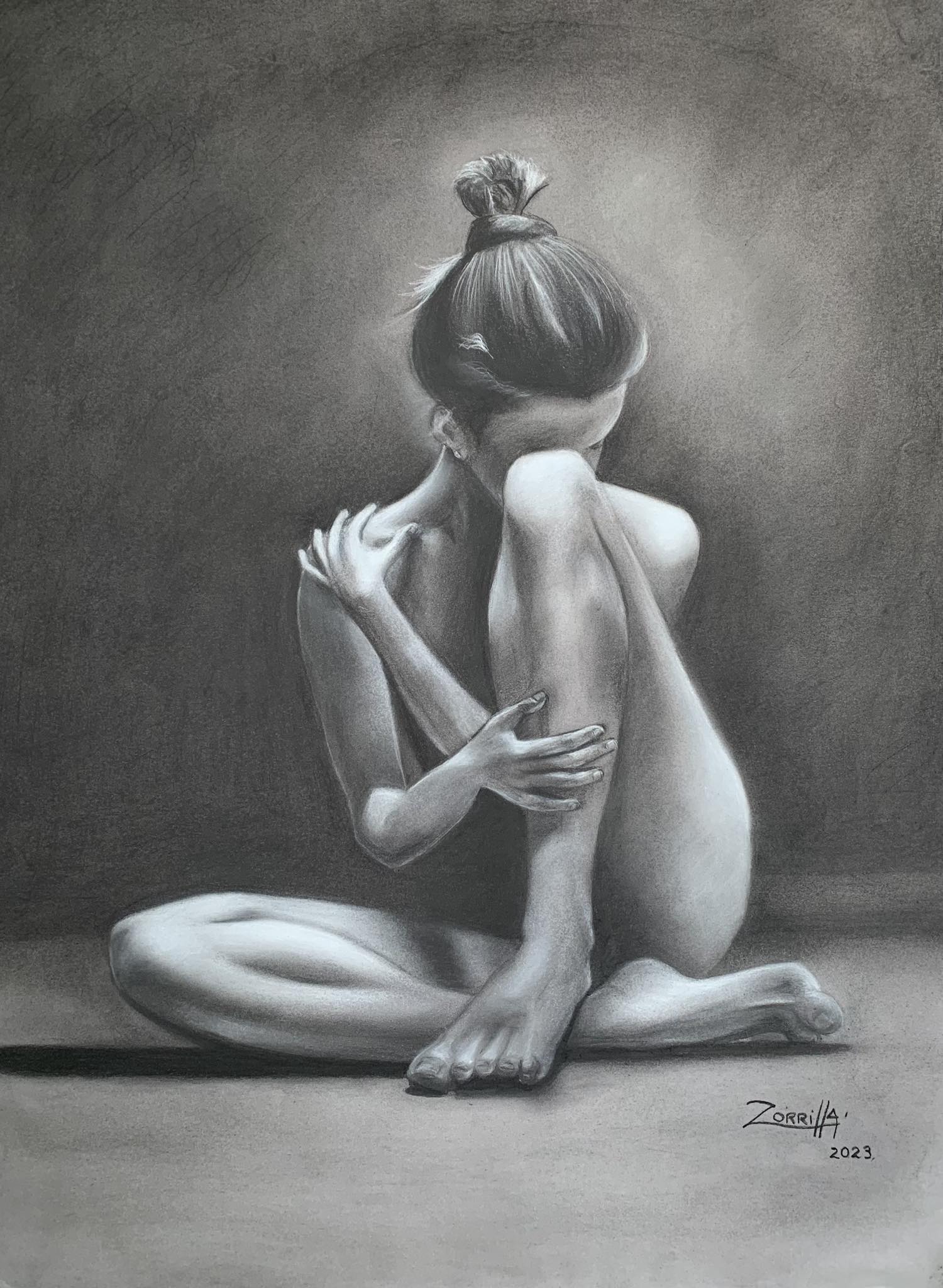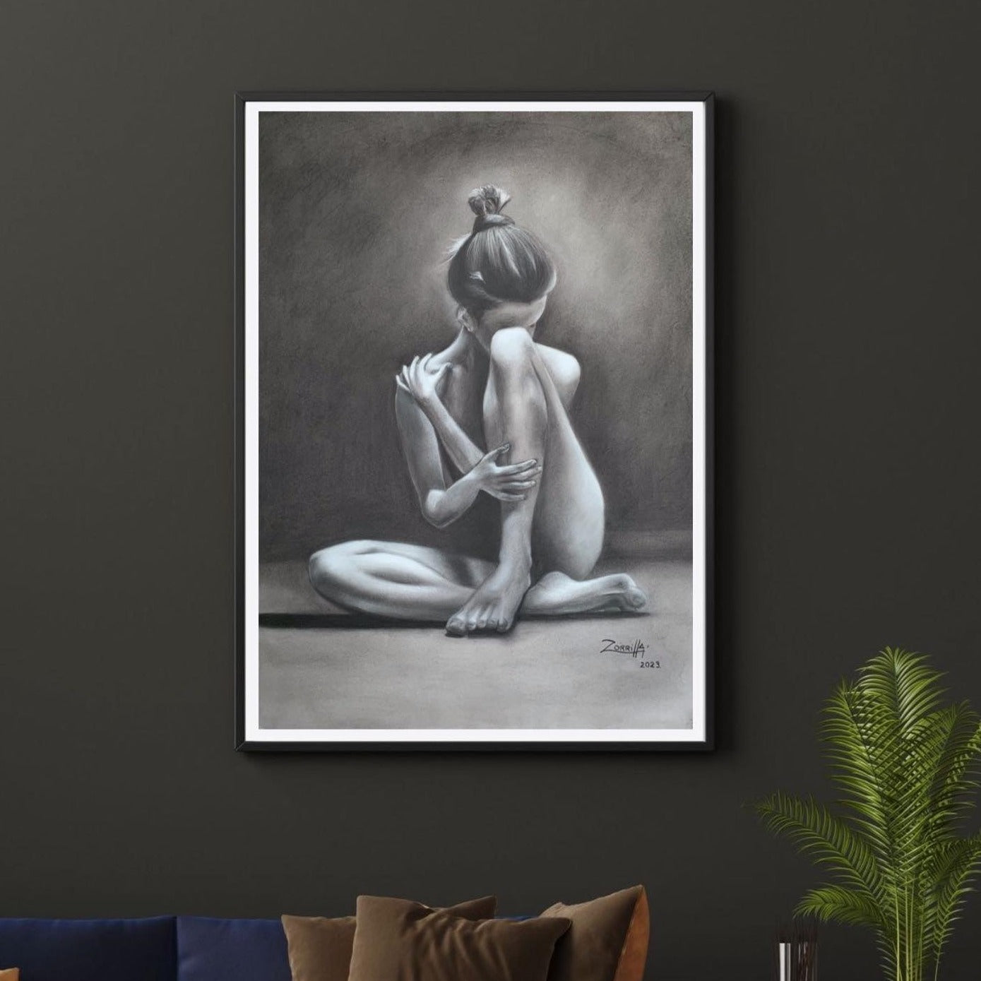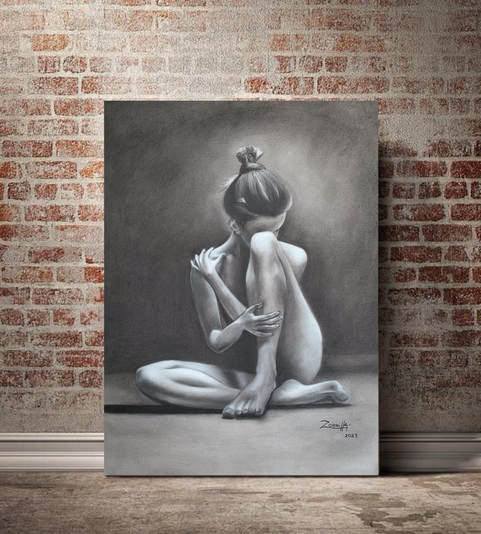 Esta obra es un dibujo al carboncillo y pastel sobre papel, realizado completamente a mano de manera tradicional, está basado en la obra del fotógrafo Anton Belovodchenko. La obra se entrega enmarcada con marco de madera delgado en color negro y marialuisa color blanco con cristal anti reflejante y con certificado de autenticidad.