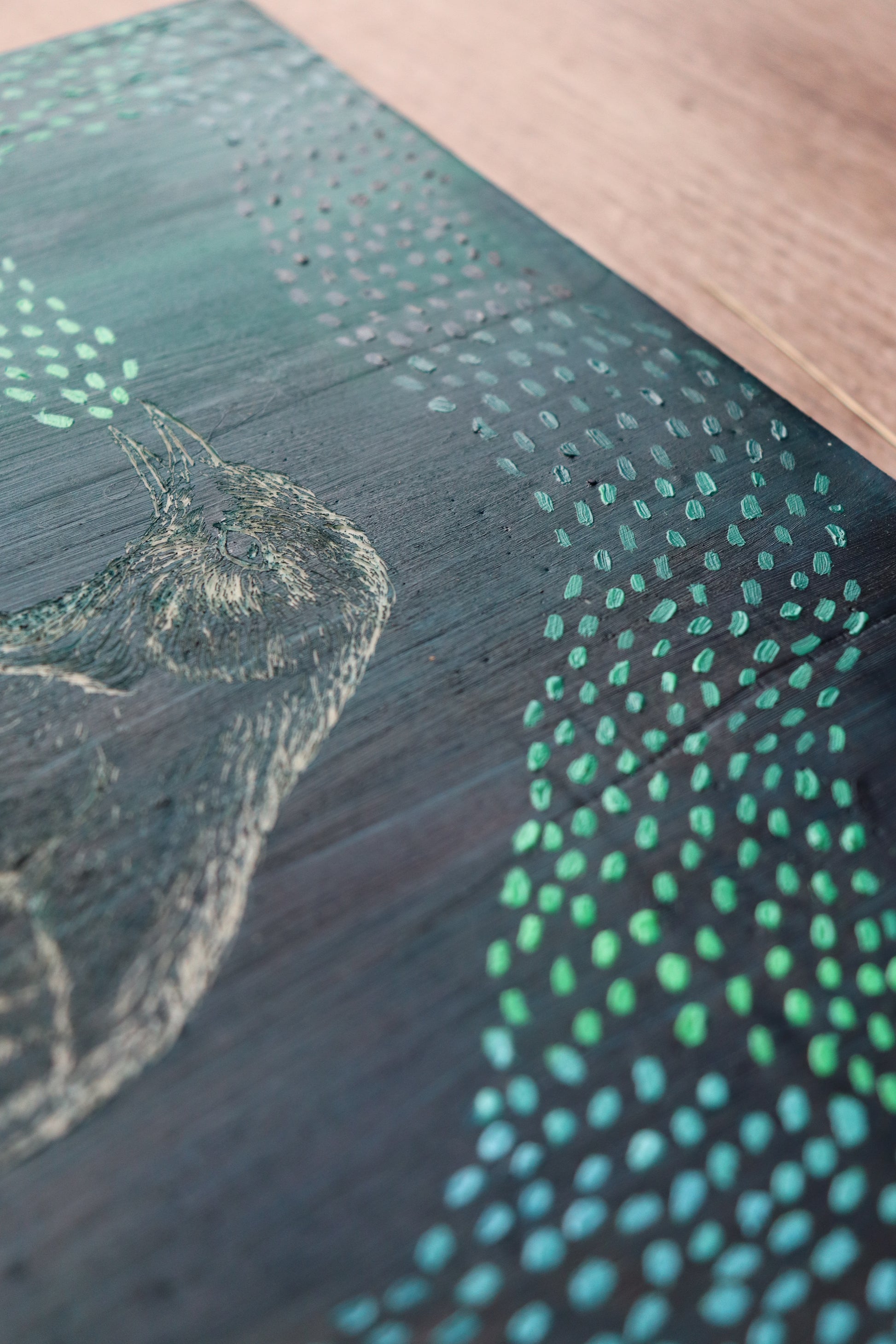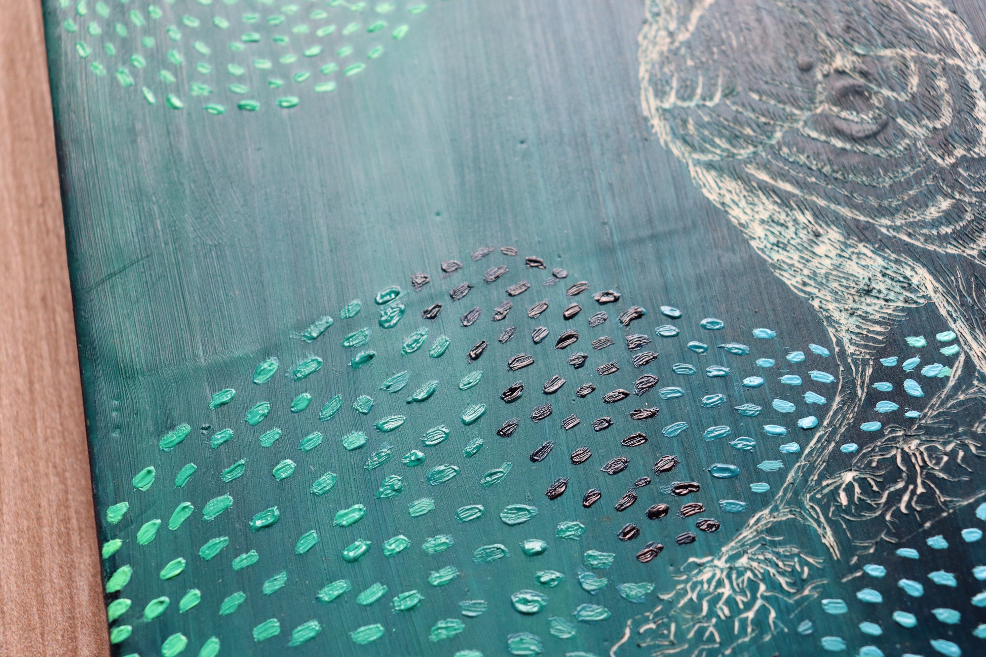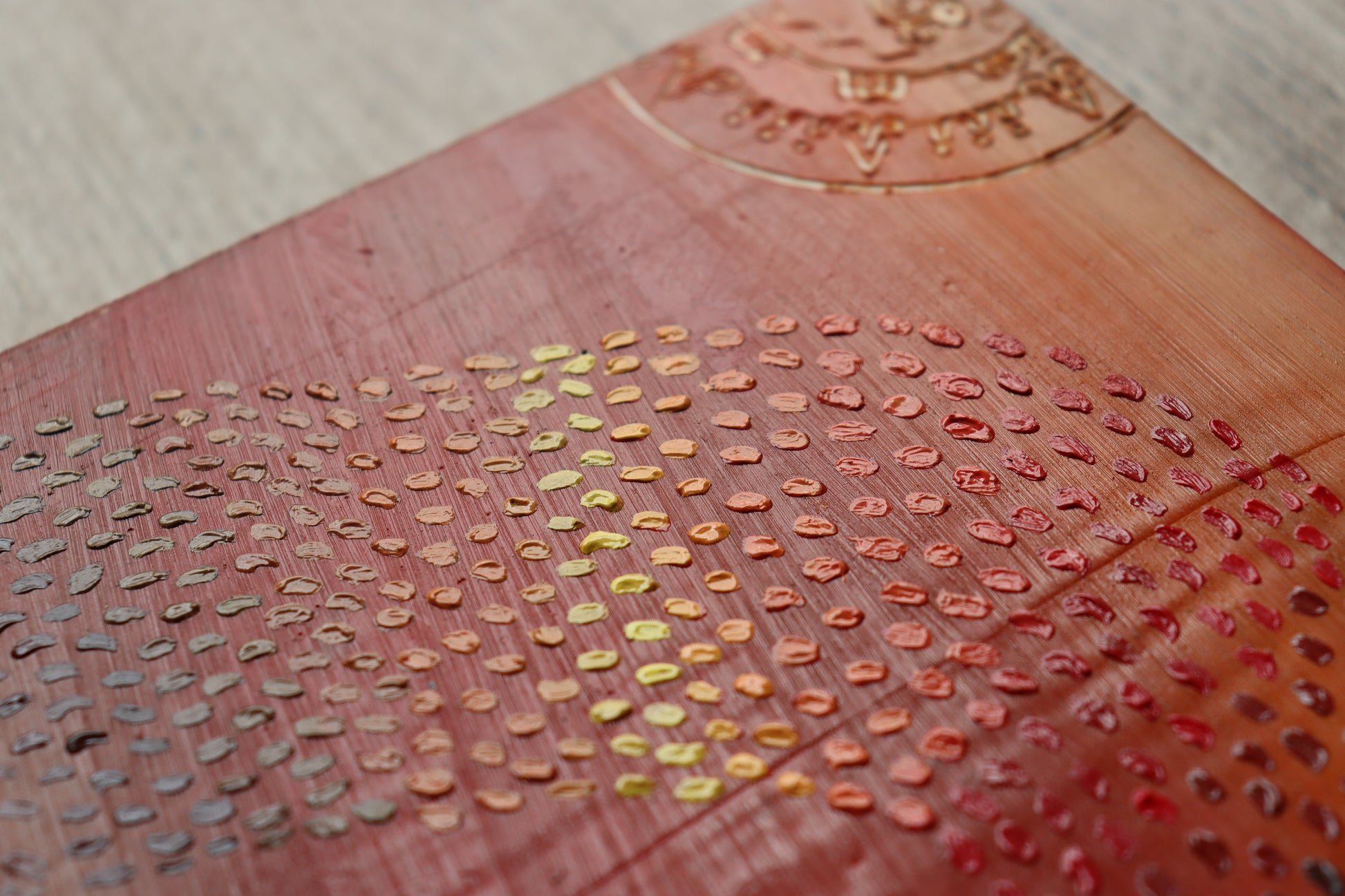 Esgrafiado sobre encáustica; Composición de 3 Cuadros de Madera