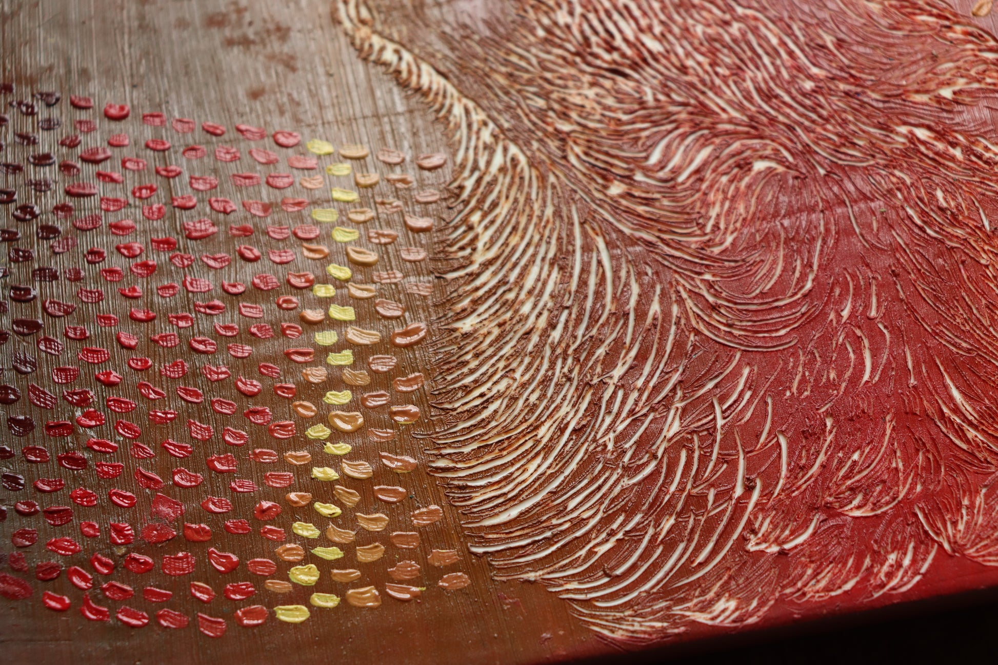 Mi obra pinta los colores del viento, materializa el dialogo en la naturaleza a través de colores y texturas.