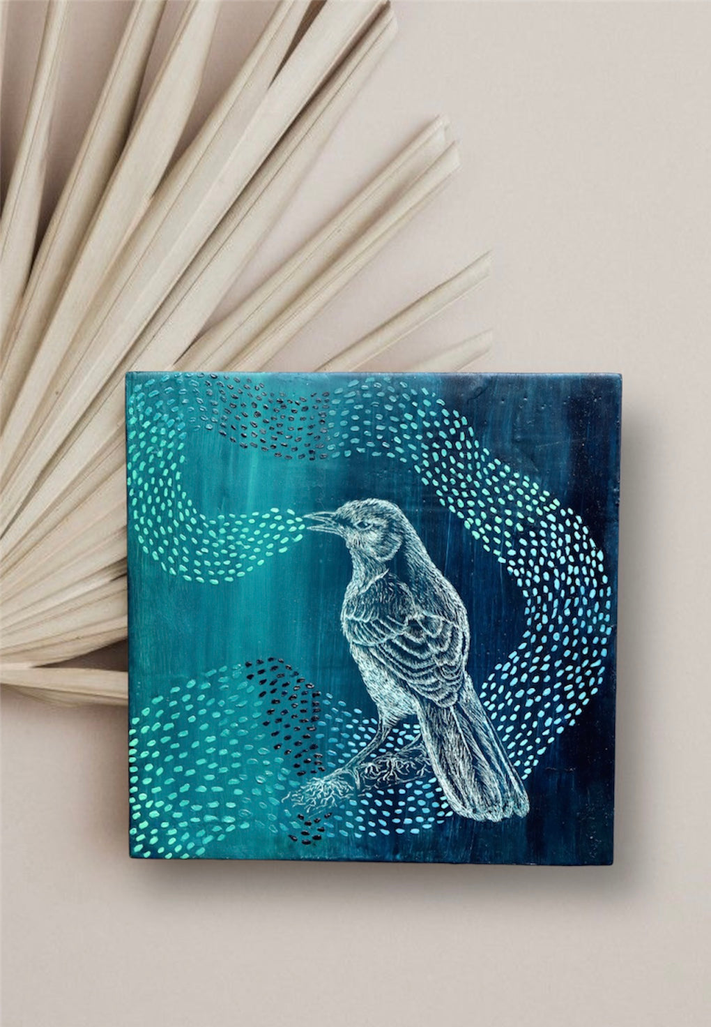 El cenzontle, el ave de 400 voces, representa la zona sur del país, con sus azules profundos se evoca los mantos acuíferos de este ecosistema selvático, la alegría del canto del cenzontle.