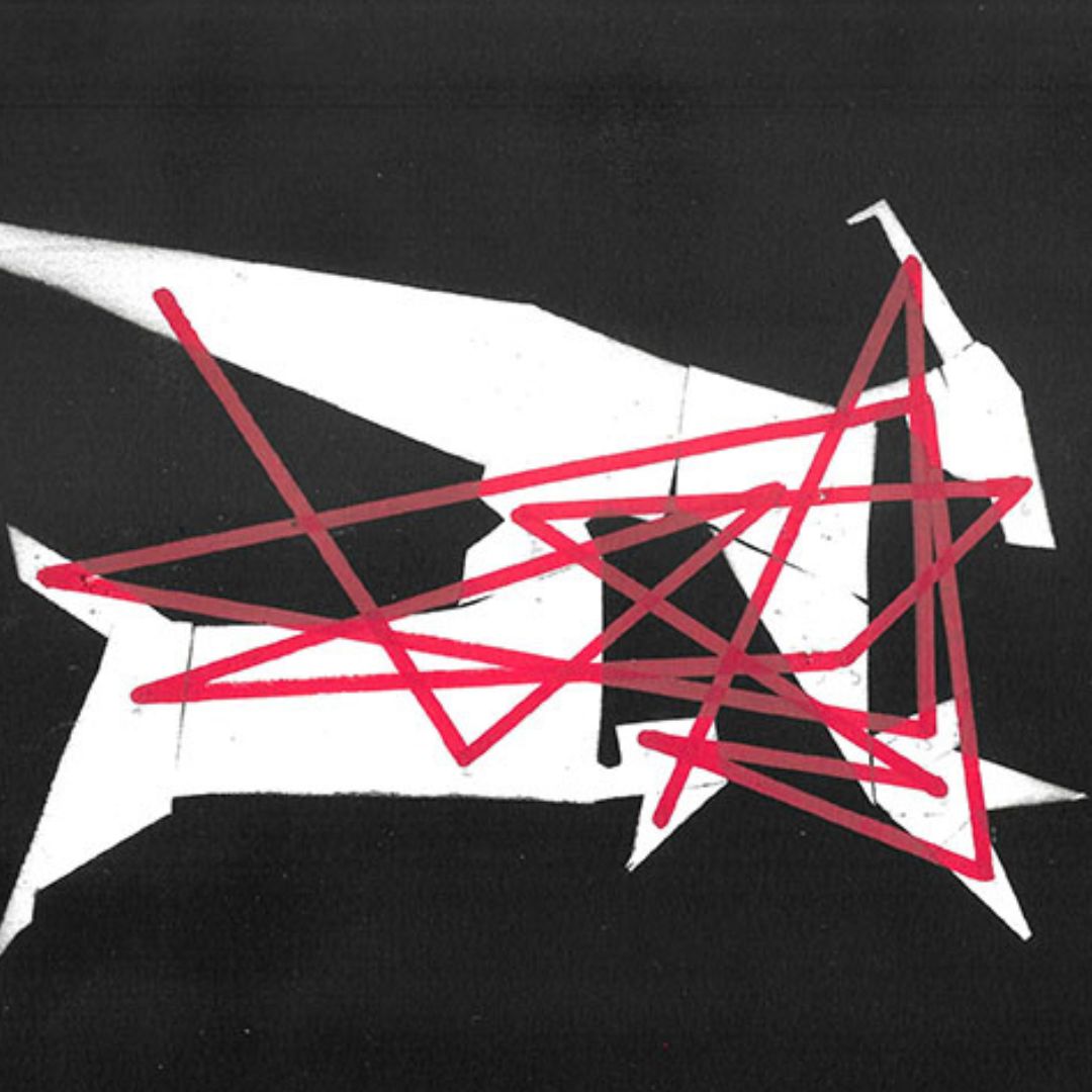 Esténcil-collage intervenido y fragmentos sobre cartulina