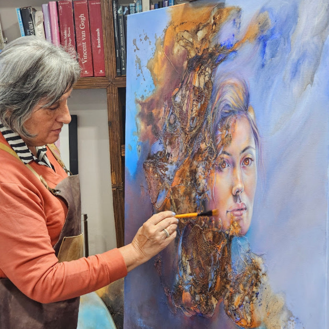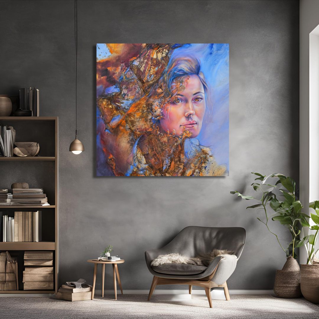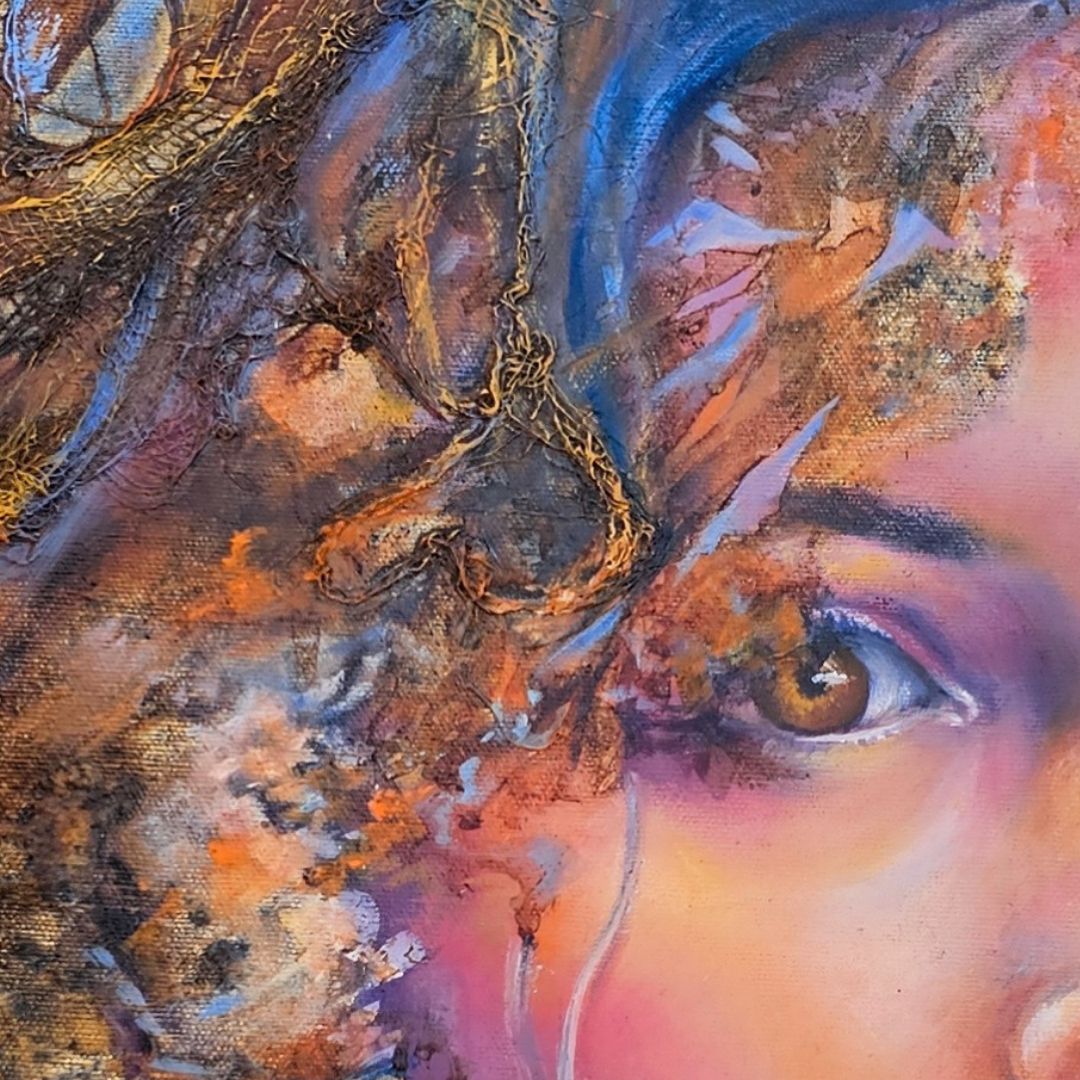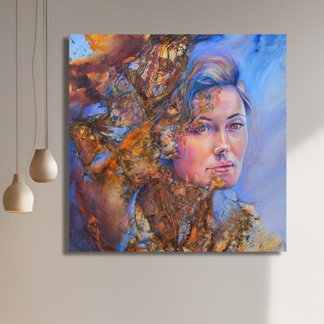 sta obra forma parte de la colección "Ventanas del Alma" es una colección que invita al espectador a conectarse consigo mismo y con el universo a través del arte. Cada obra busca ser un reflejo del alma, fomentando una introspección profunda y un diálogo entre la pieza y quien la contempla. Es una exploración visual de nuestra esencia y autenticidad, más allá de lo material.