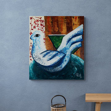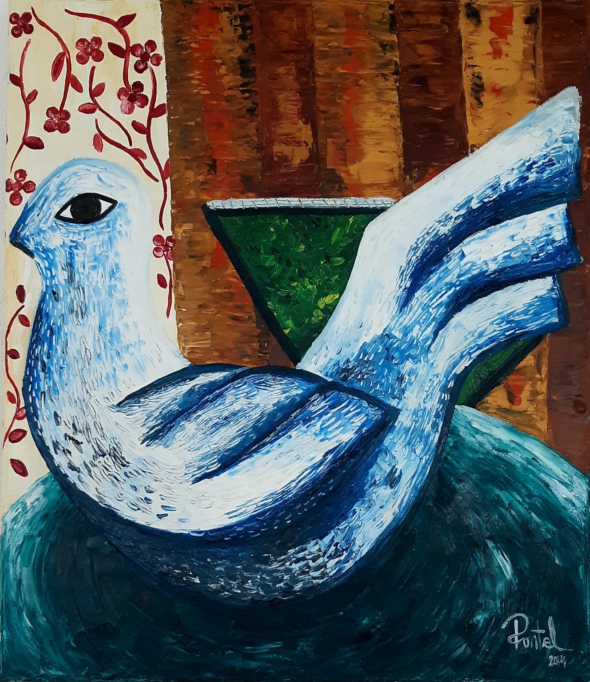 Obra realizada con óleo espátula, el curso de las pinceladas está texturado por la espátula generando así más plasta en la pintura.