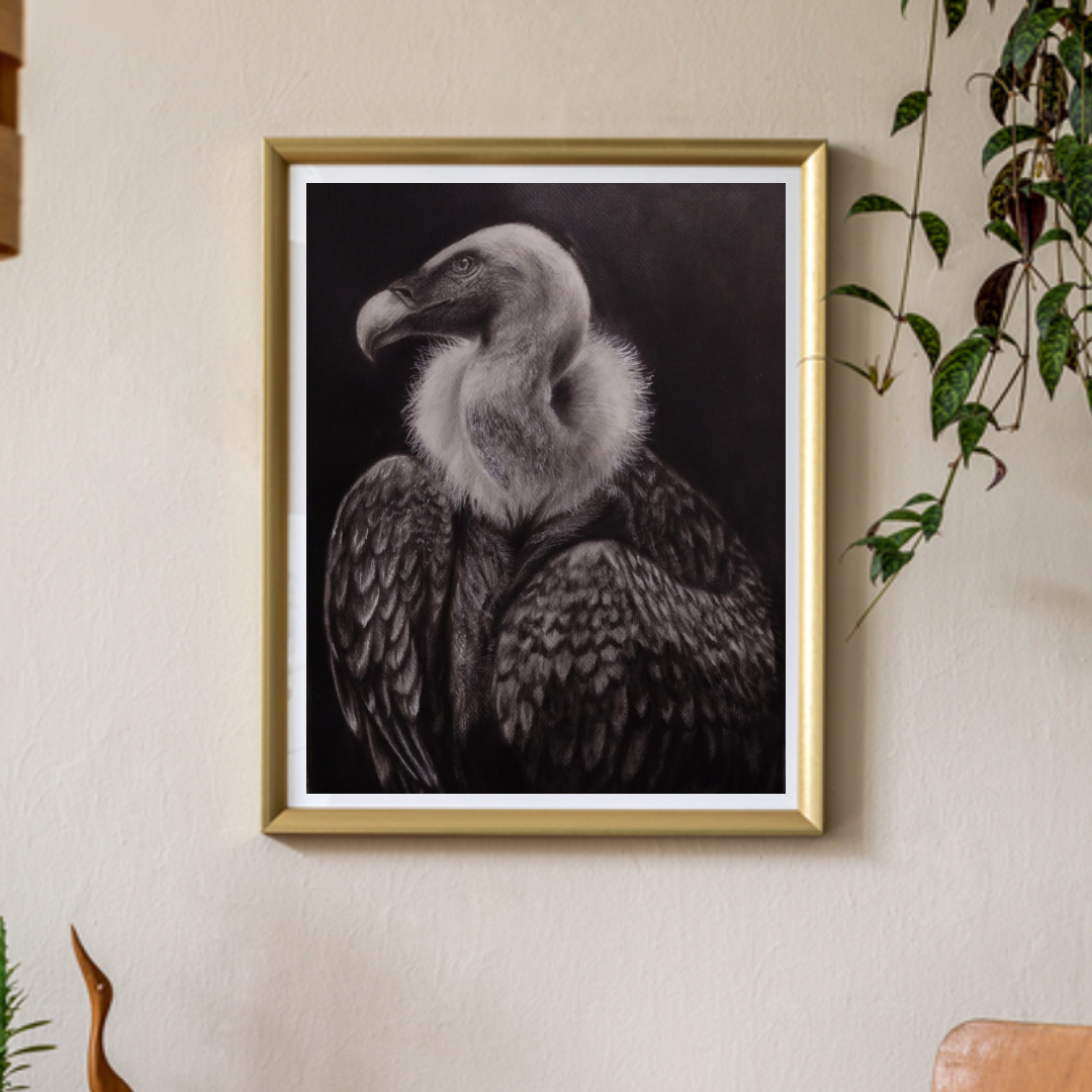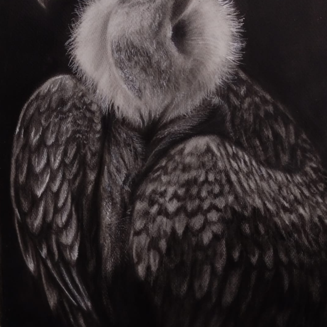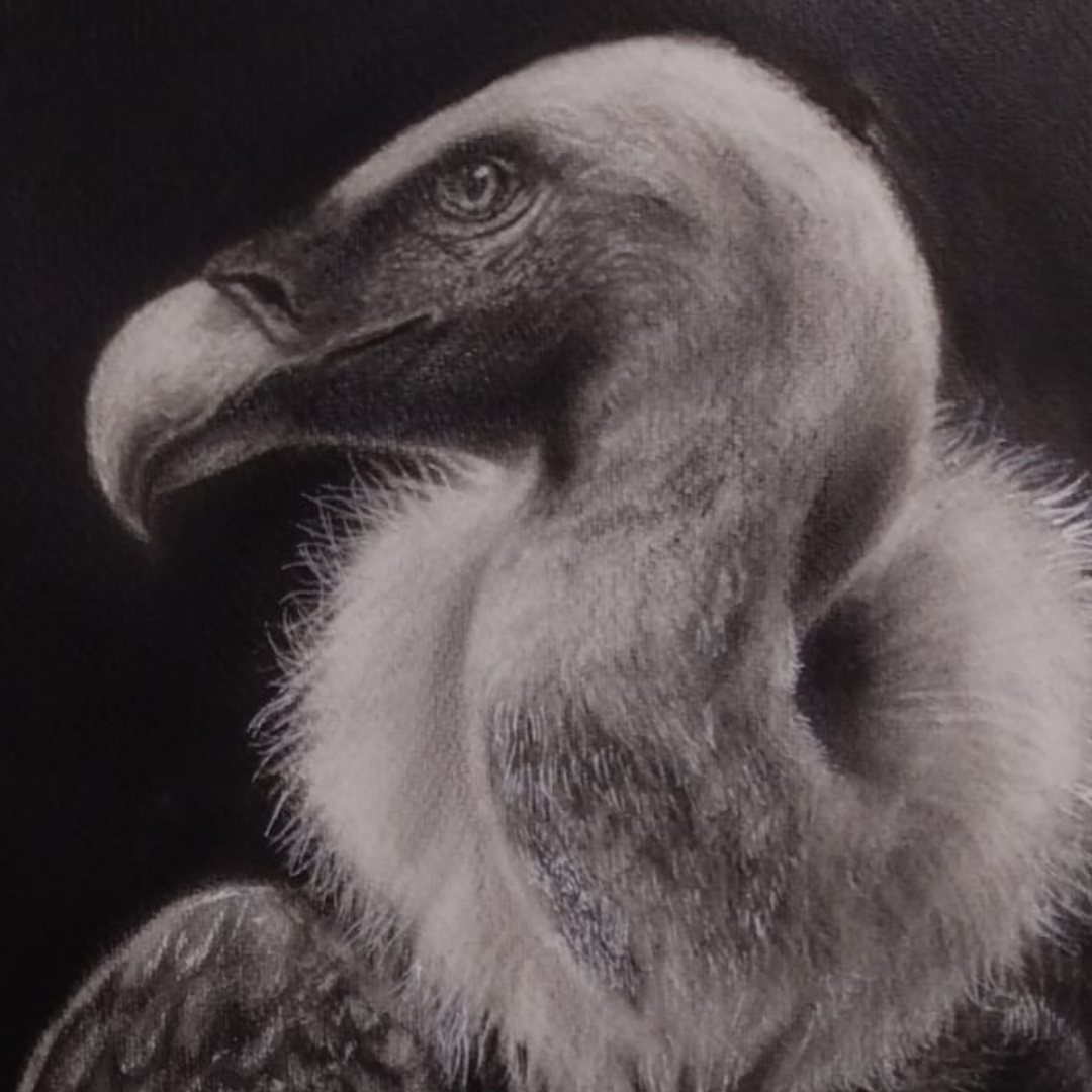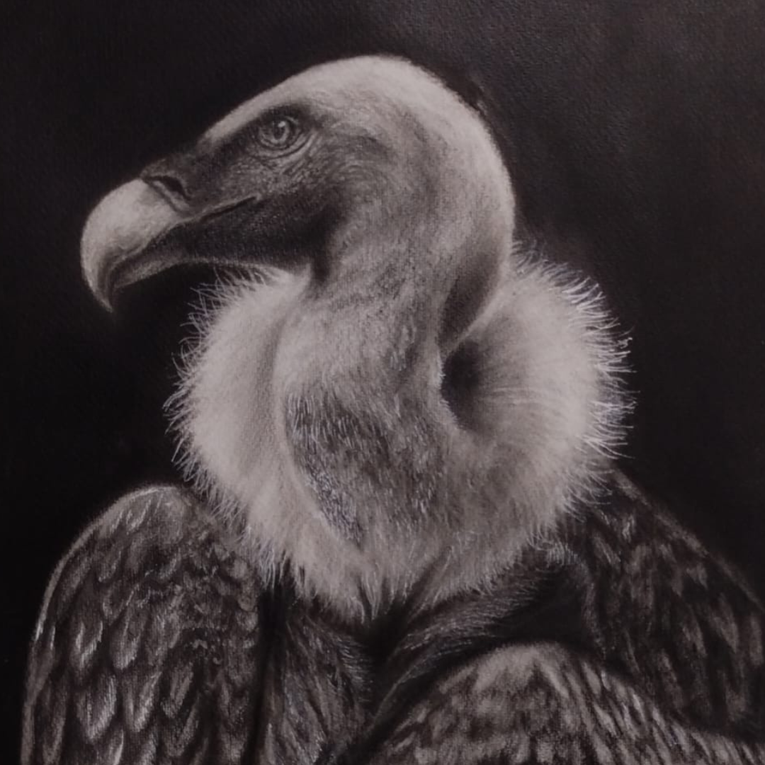 "TE MIRAN AMBIVALENTE" es una obra que hace referencia a que te están observando con sentimientos contradictorios o emociones encontradas, mostrando una mezcla de actitudes positivas y negativas hacia ti. la ambivalencia implica tener sentimientos simultáneos y opuestos sobre algo o alguien. Por ello se ha plasmado un buitre al cual la gente los asocia con cosas negativas como la oscuridad y la muerte, dado que tienen mala fama por su desagradable costumbre de darse un festín de carne muerta, aunque esta acción mantienen los ecosistemas más higiénicos. Como personas muchas veces observamos pero no tenemos una opinión clara o definida sobre los demás y en lugar de mostrar una postura consistente, nuestra mirada revela una lucha interna entre diferentes emociones o juicios.