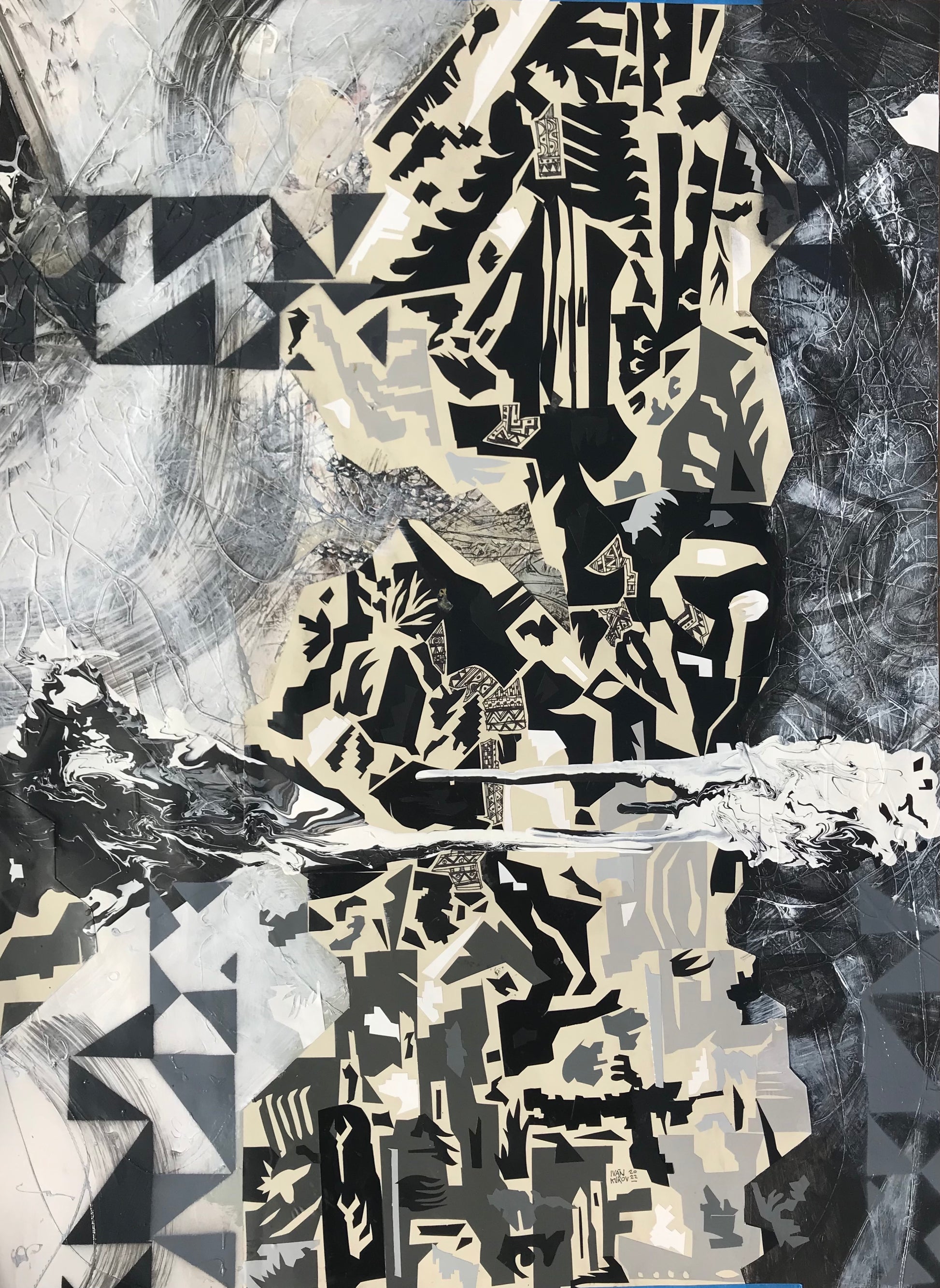 Tercera raíz fue realizada para un encuentro organizado por comunidades con herencia africana asentadas en México, a través del collage y elementos ornamentales abordo la compleja unión entre la cultura africana, española y mexicana, los elementos se contraponen de manera disruptiva pero a la ves se integran en un conjunto armónico.