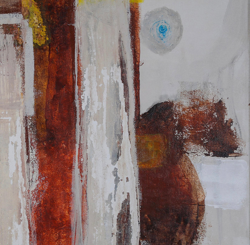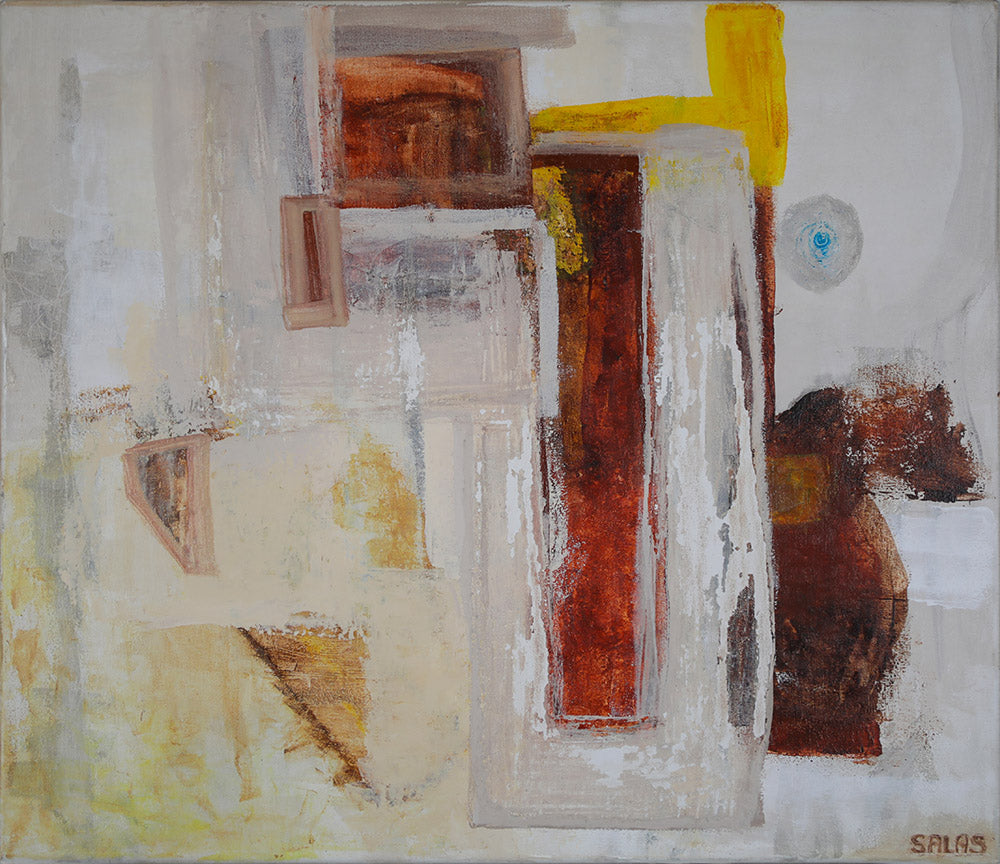 La obra se presenta como una meditación visual sobre el paso del tiempo, donde las formas geométricas no solo figuras, sino testigos de una historia profunda y arcaica.
