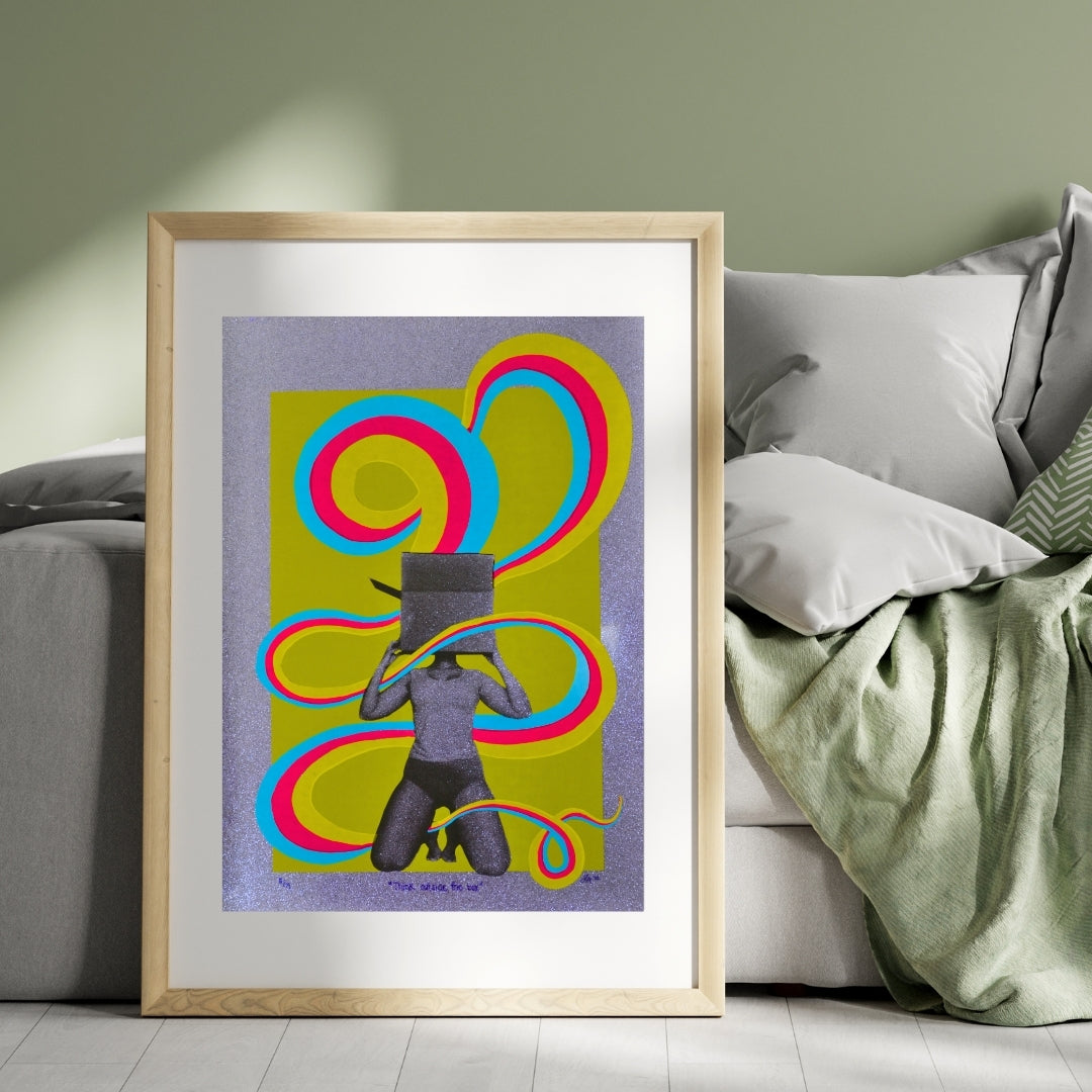 Ésta obra forma parte de la serie limitada de serigrafías "Think Outside The Box", que me recuerda el infinito cambio de las perspectivas y aprendizajes que vamos teniendo en la vida y como es que debemos de seguir abiertos a reaprender sin casarnos con una sola filosofía de vida.