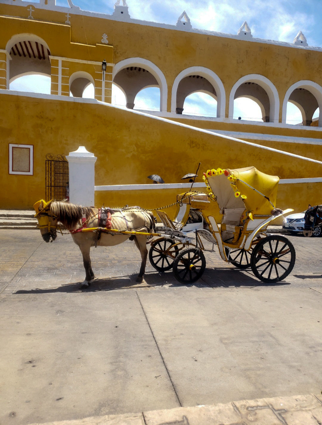 Una calesa a la espera de abordaje en la plaza "Zamná" en el pueblo mágico de Izamal, Yucatán.