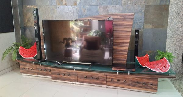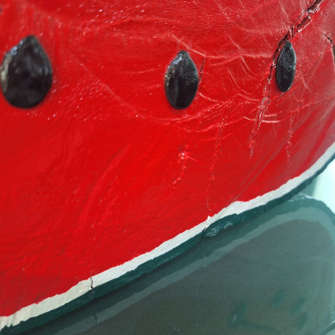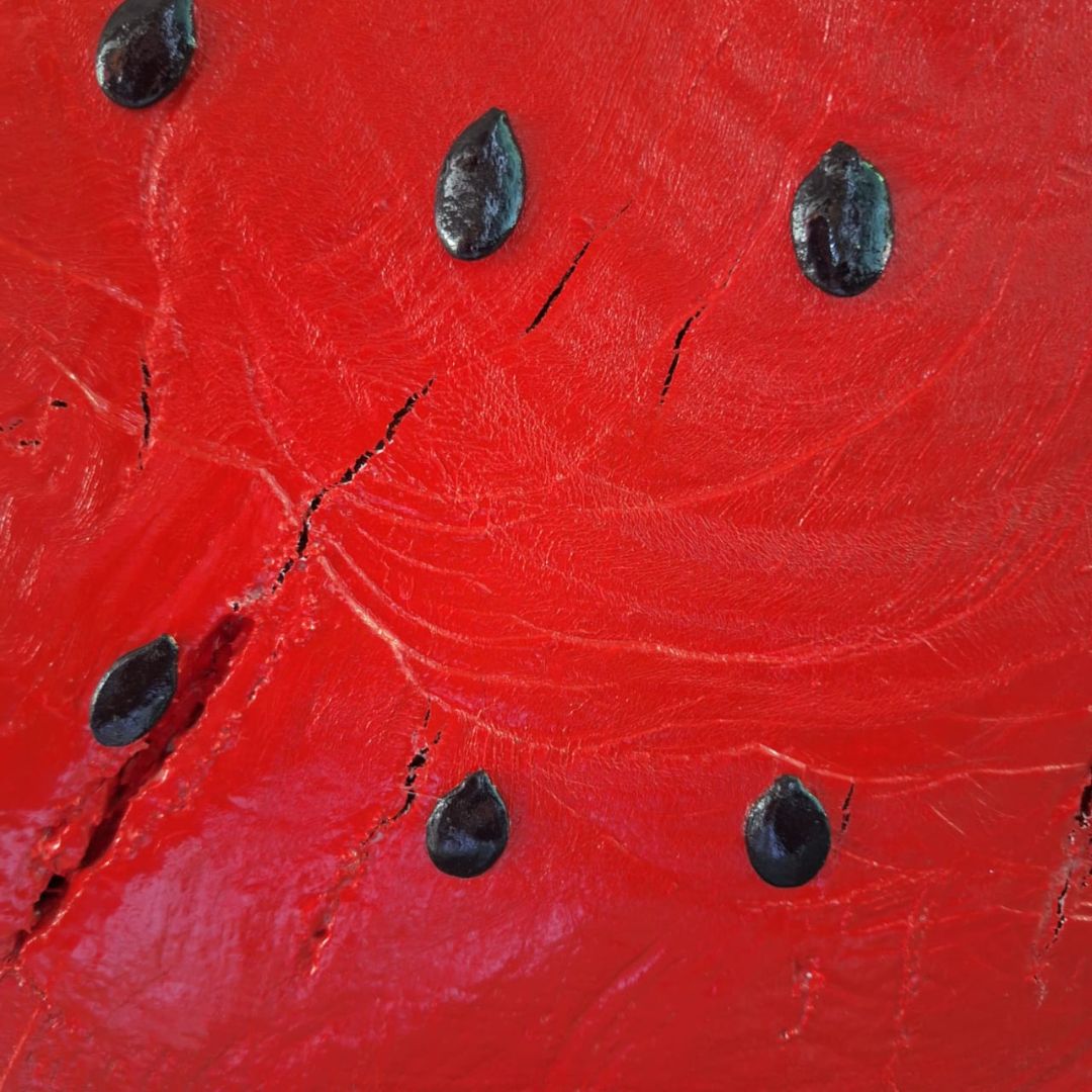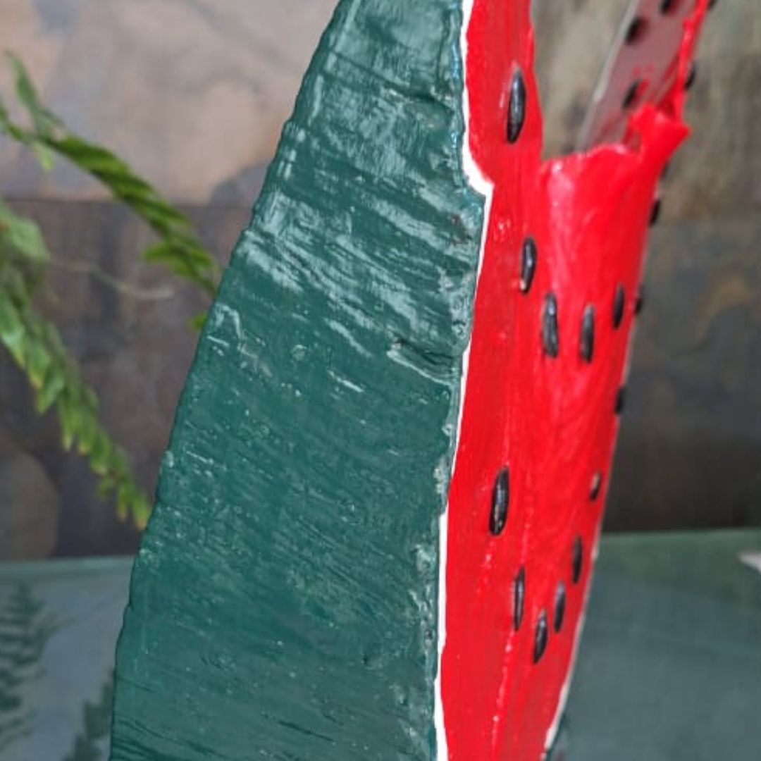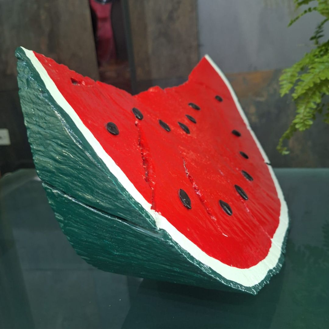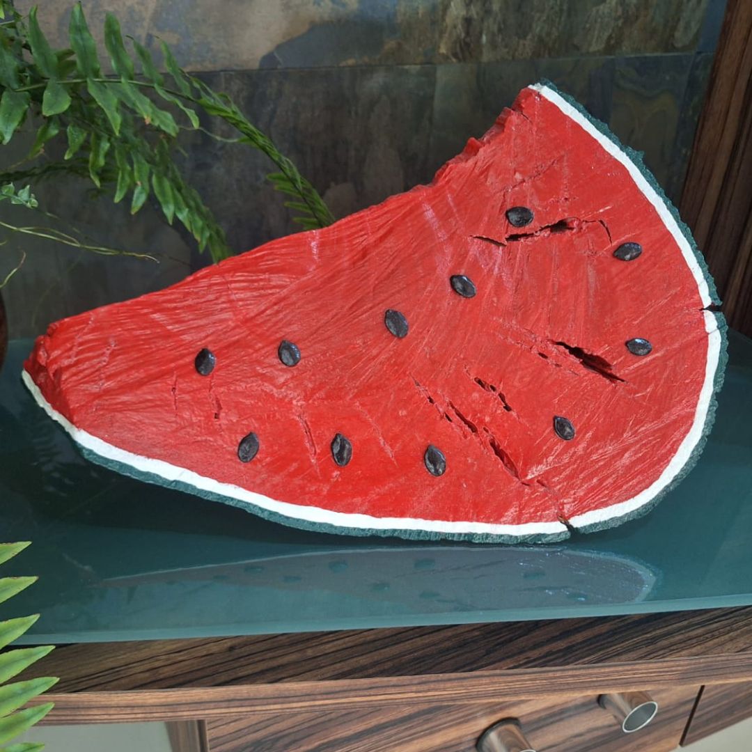 Tres ricas y frescas rebanadas de sandía, fabricadas en madera sólida de eucalipto