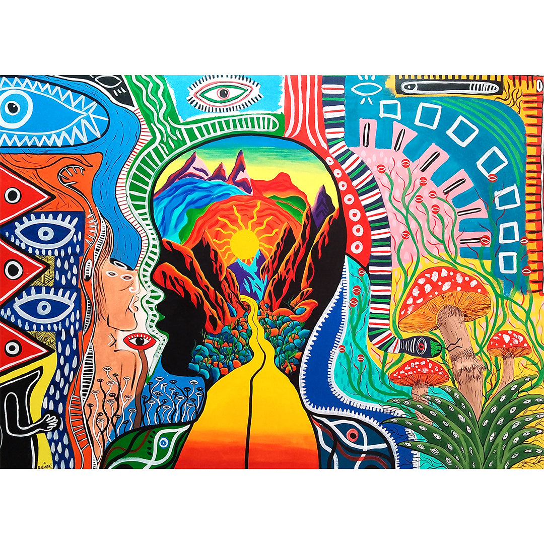 Pieza que habla sobre los viajes Psicodélicos a través de la pareidolia hacia un viaje interno de la Conciencia. Un proceso de introspección y autoconocimiento que nos permite explorar nuestras emociones, pensamientos, y valores más profundos.