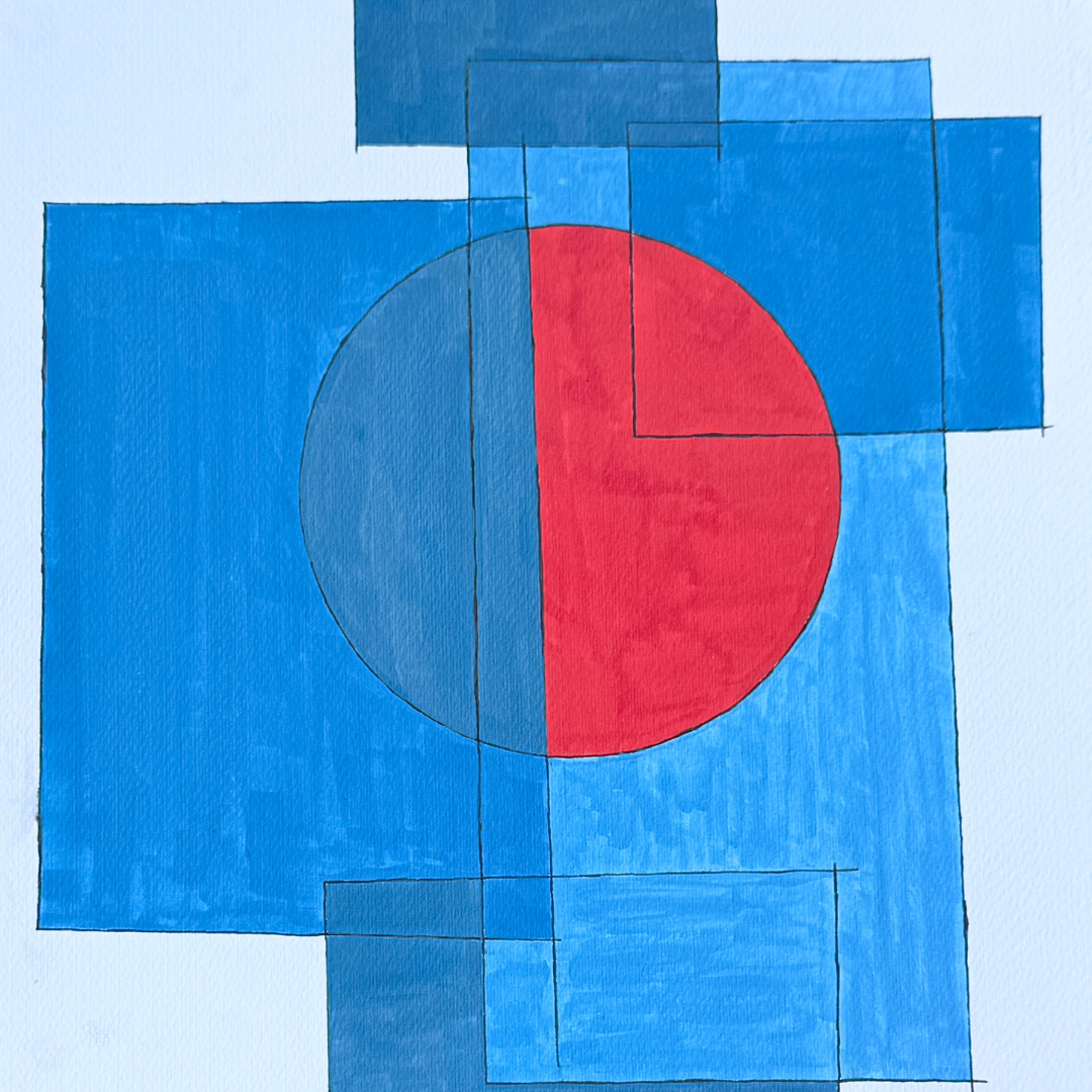 El círculo intenta expandirse, pero es contenido por muros. La tensión entre las curvas cálidas y los ángulos fríos refleja esa contradicción emocional.