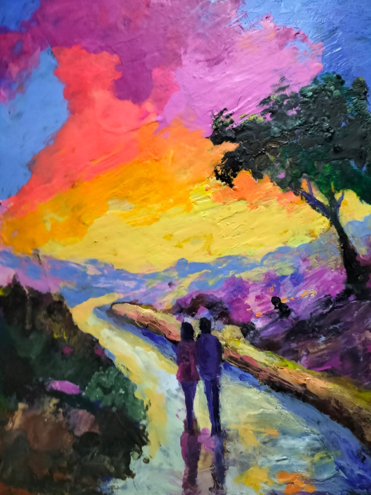 Poder recorrer un camino, un momento al lado de alguien, hacer una vida con alguien es algo maravilloso , esta obra es una expresión bella de decir estamos juntos en este camino llamado vida.