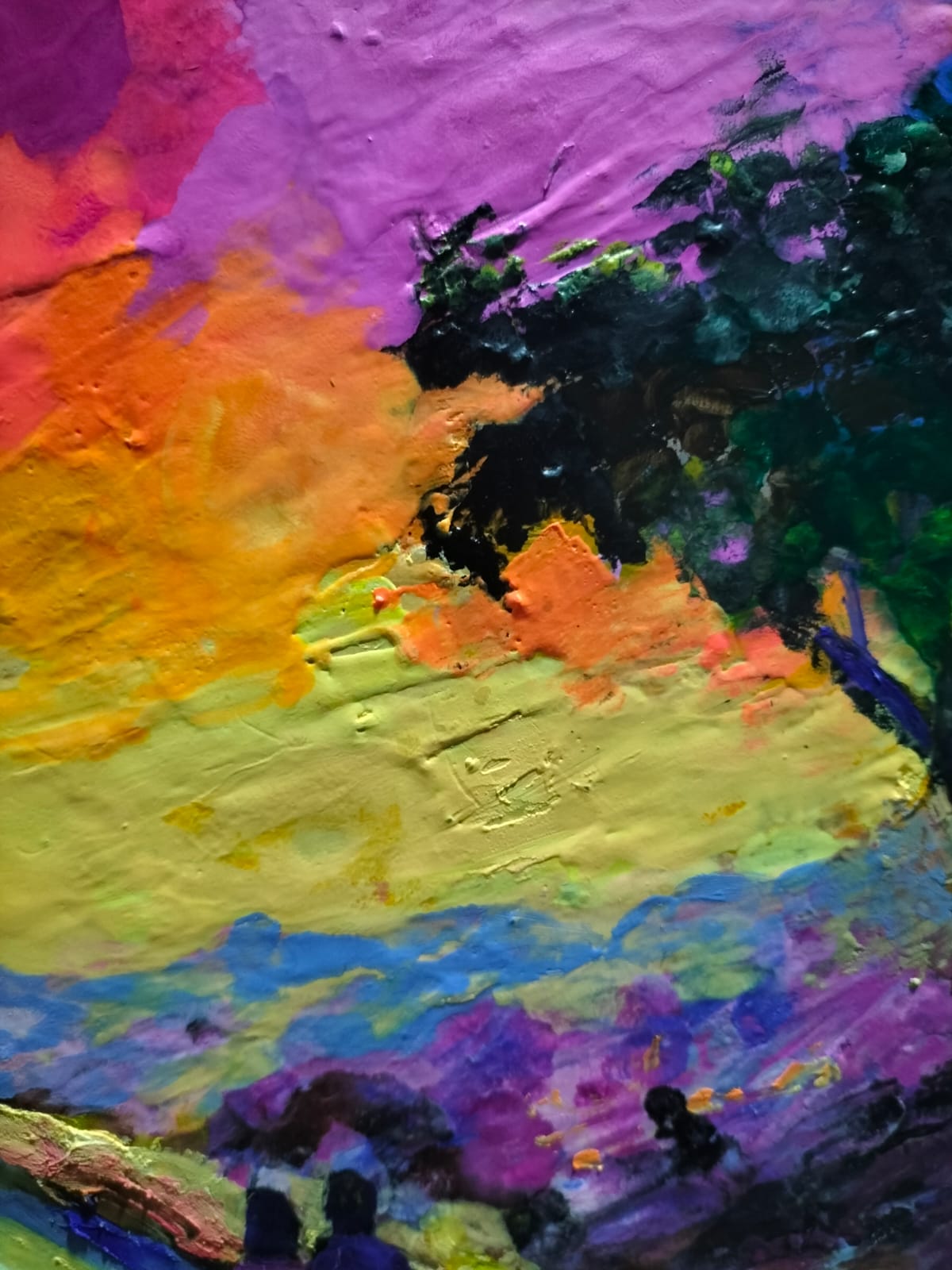 Obra hecha con cera de abeja , óleo, copal, matizando con soplete y llena de textura para perdurar por siglos.