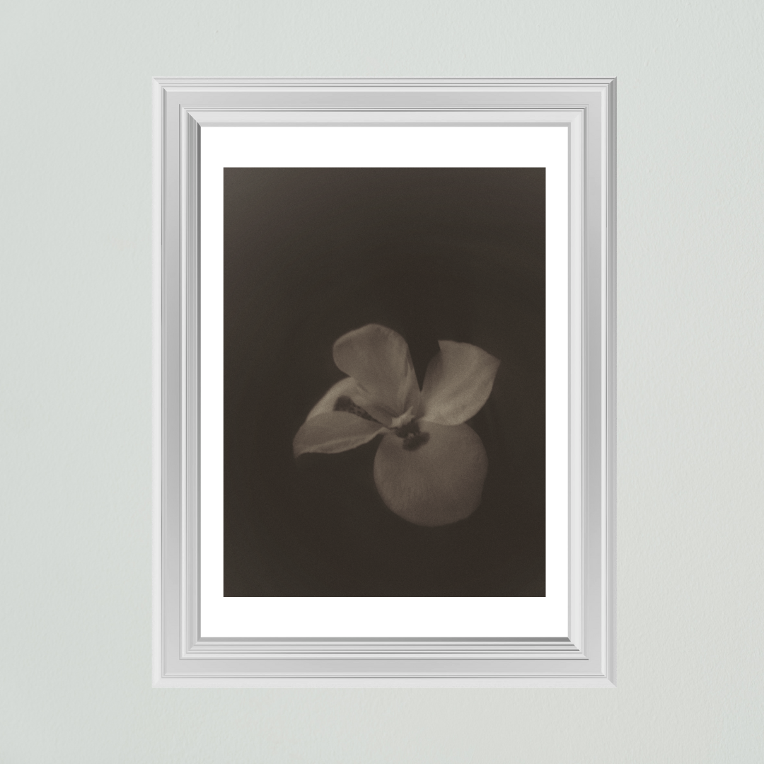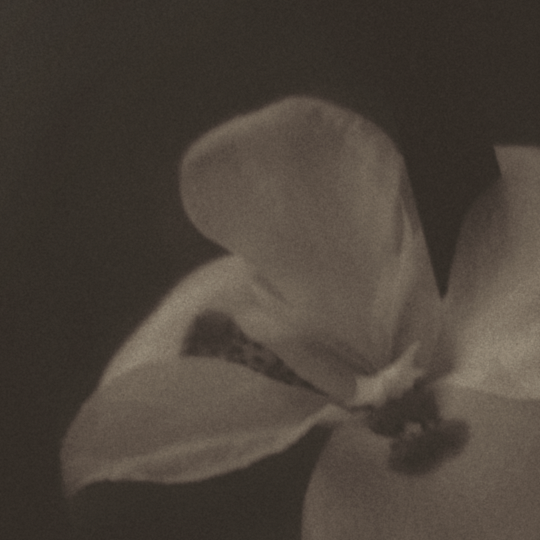 El fondo oscuro detrás de la flor crea una espiral que parece envolverla, como si el recuerdo de su madre diera vueltas una y otra vez en su mente, sin desaparecer. El juego de luces suaves y tonalidades terrosas transmiten un espacio hacia el amor y la nostalgia.