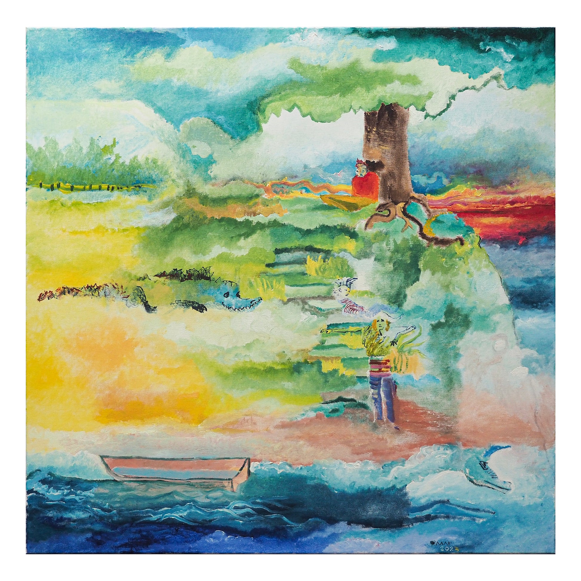 El árbol, su grito. En ese valle hay un ángel. Sam el mudo, estaba recargado en el árbol, viendo cómo más abajo en el monte, un cocodrilo sonreía, se acercaba a las piedras que servían de escalera para subir y bajar el pequeño monte. Ahora bien, Sam está mudo, y no puede decirle a Tom del peligro que corre, que el cocodrilo...etc. Tom está exhausto y se recarga en las escaleras. Más abajo está Silvestre. El sí se va, ya lo ha decidido, ahí está el bote y se larga. No más de estos encuentros de los tres amigos en el valle del niño recargado