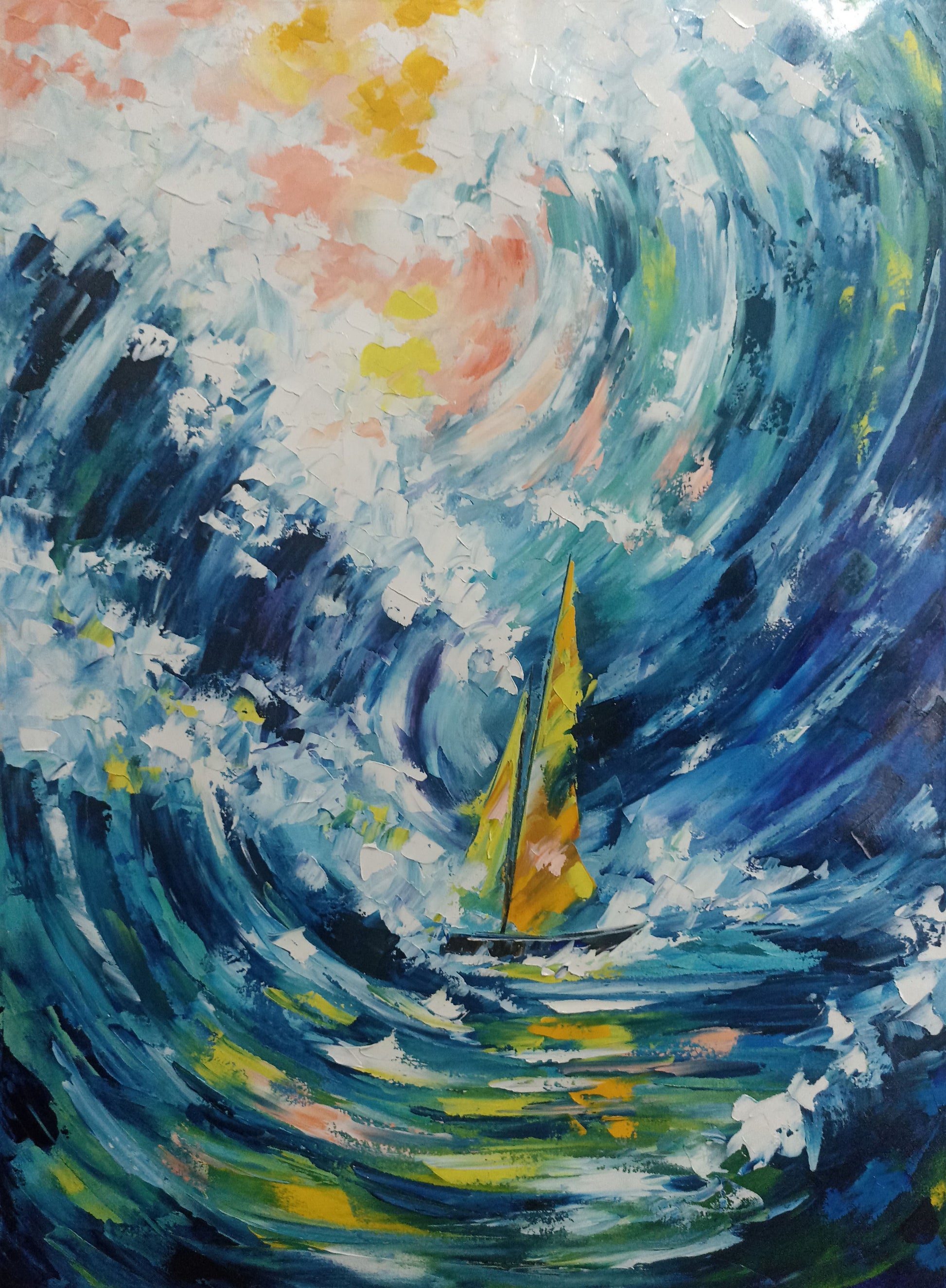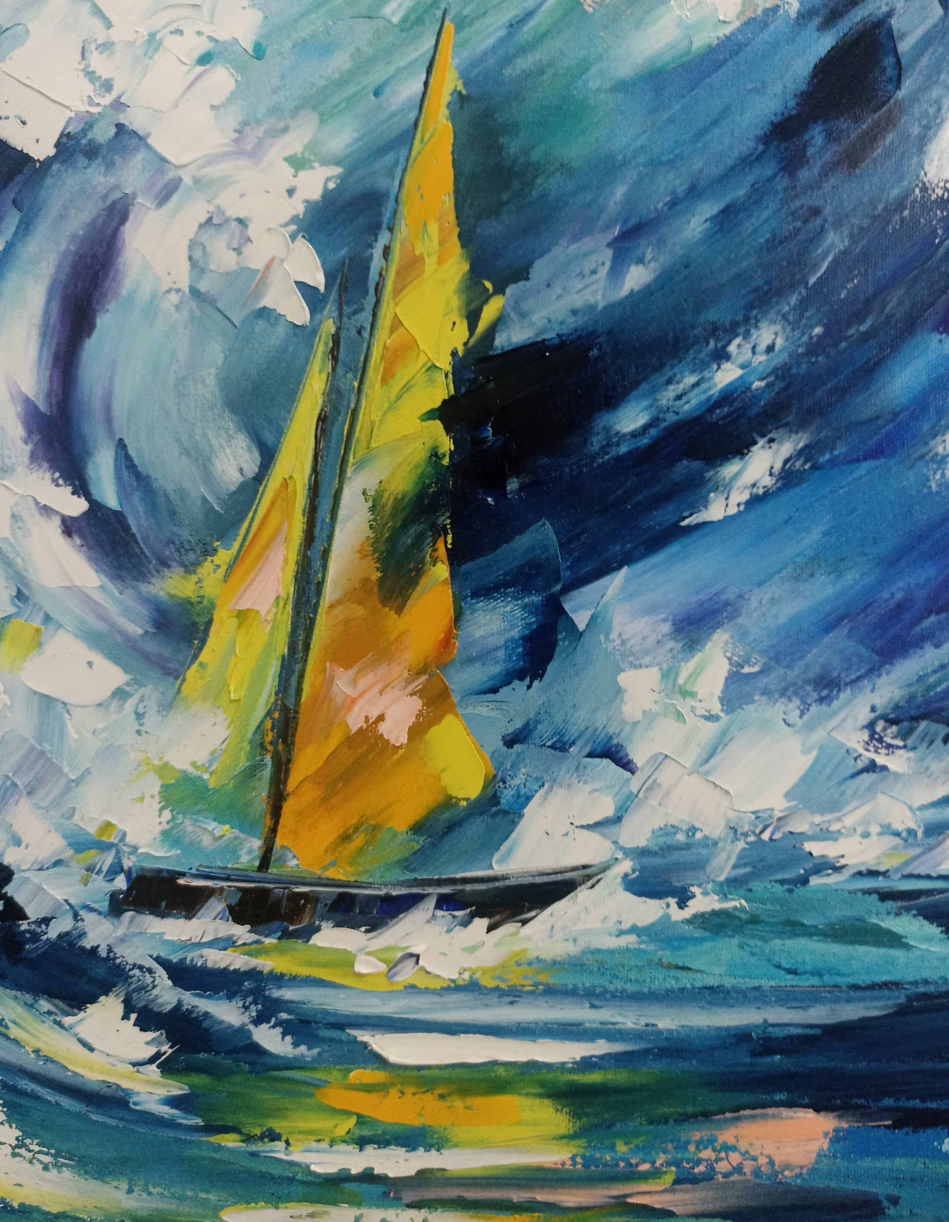 La espuma de las olas de huracán cayendo encima del velero incauto que intenta llegar a tierra firme.