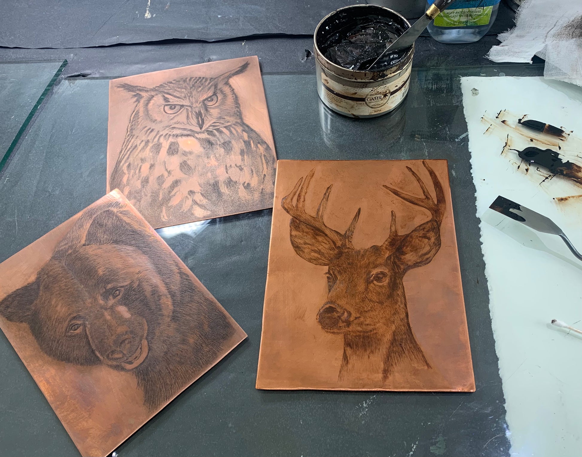Aguafuerte, en tinta sepia, impreso sobre papel Fabriano Única de 250 gsm,